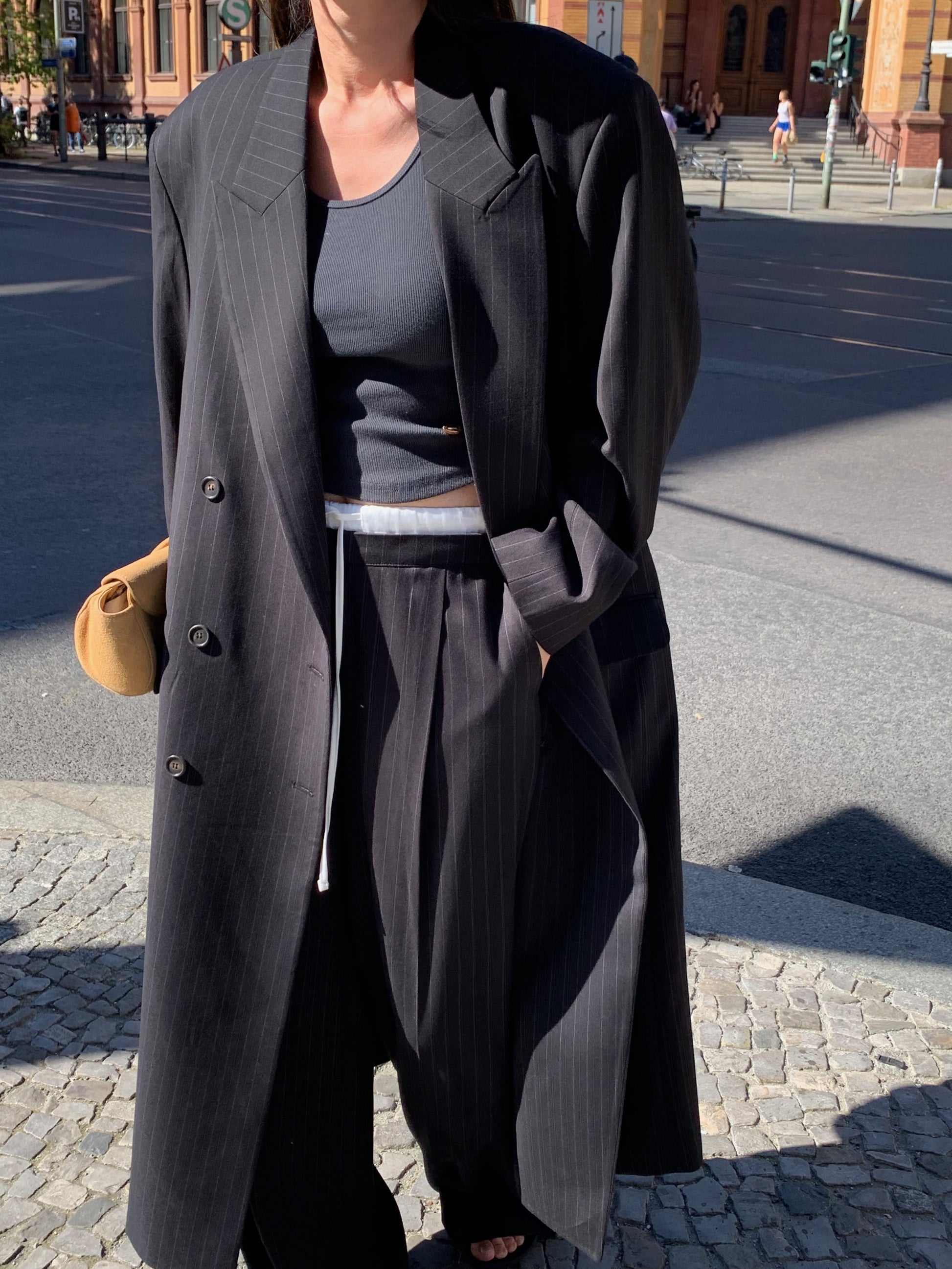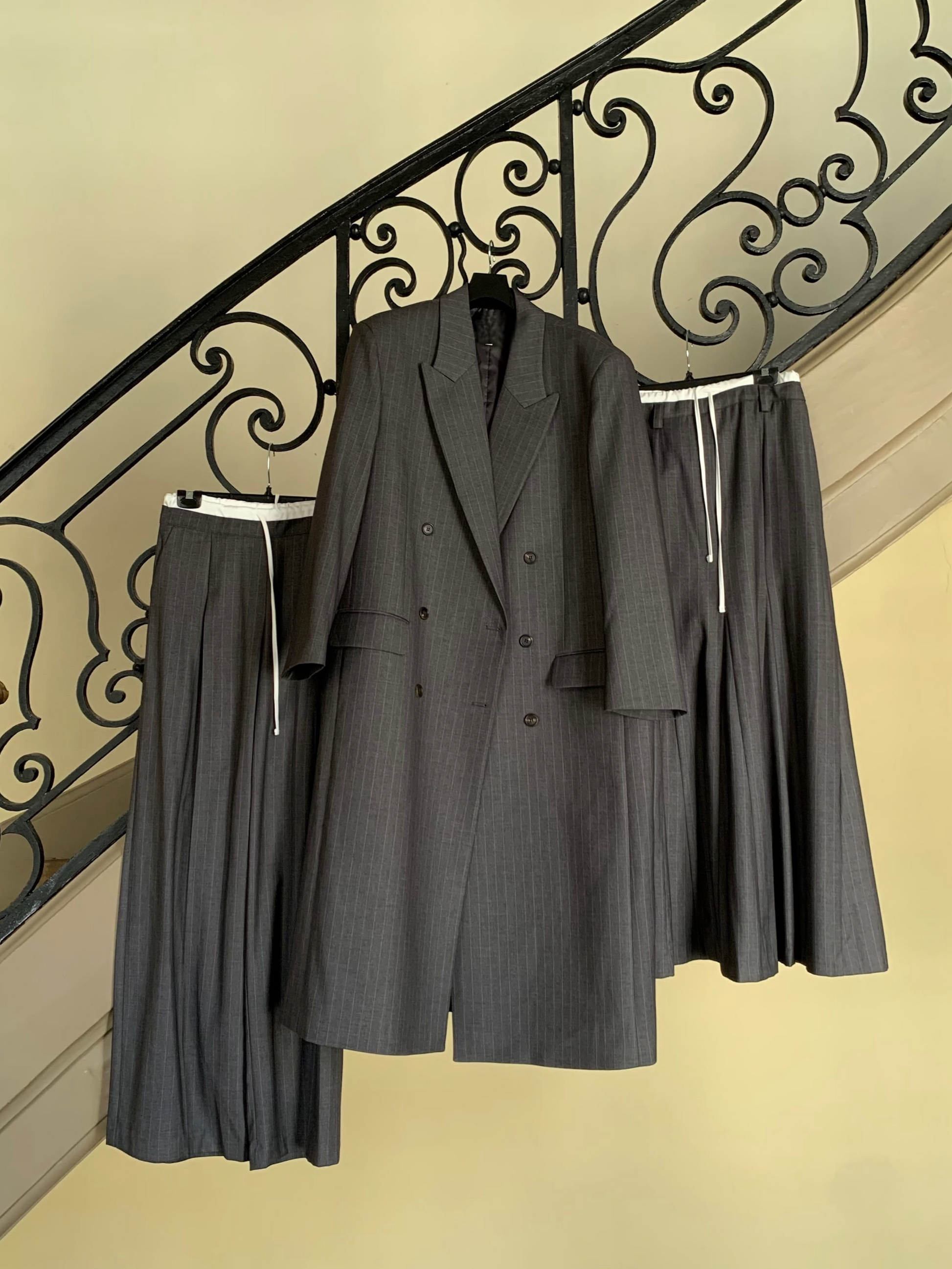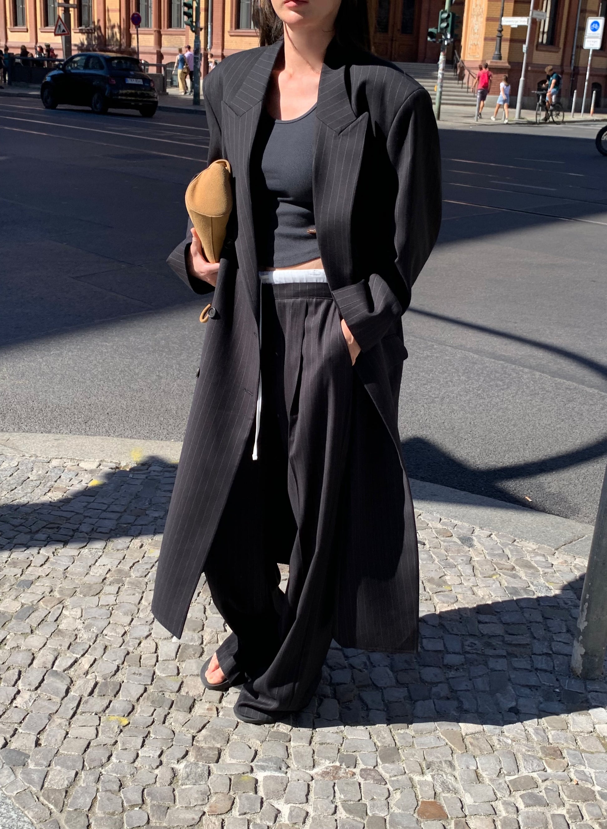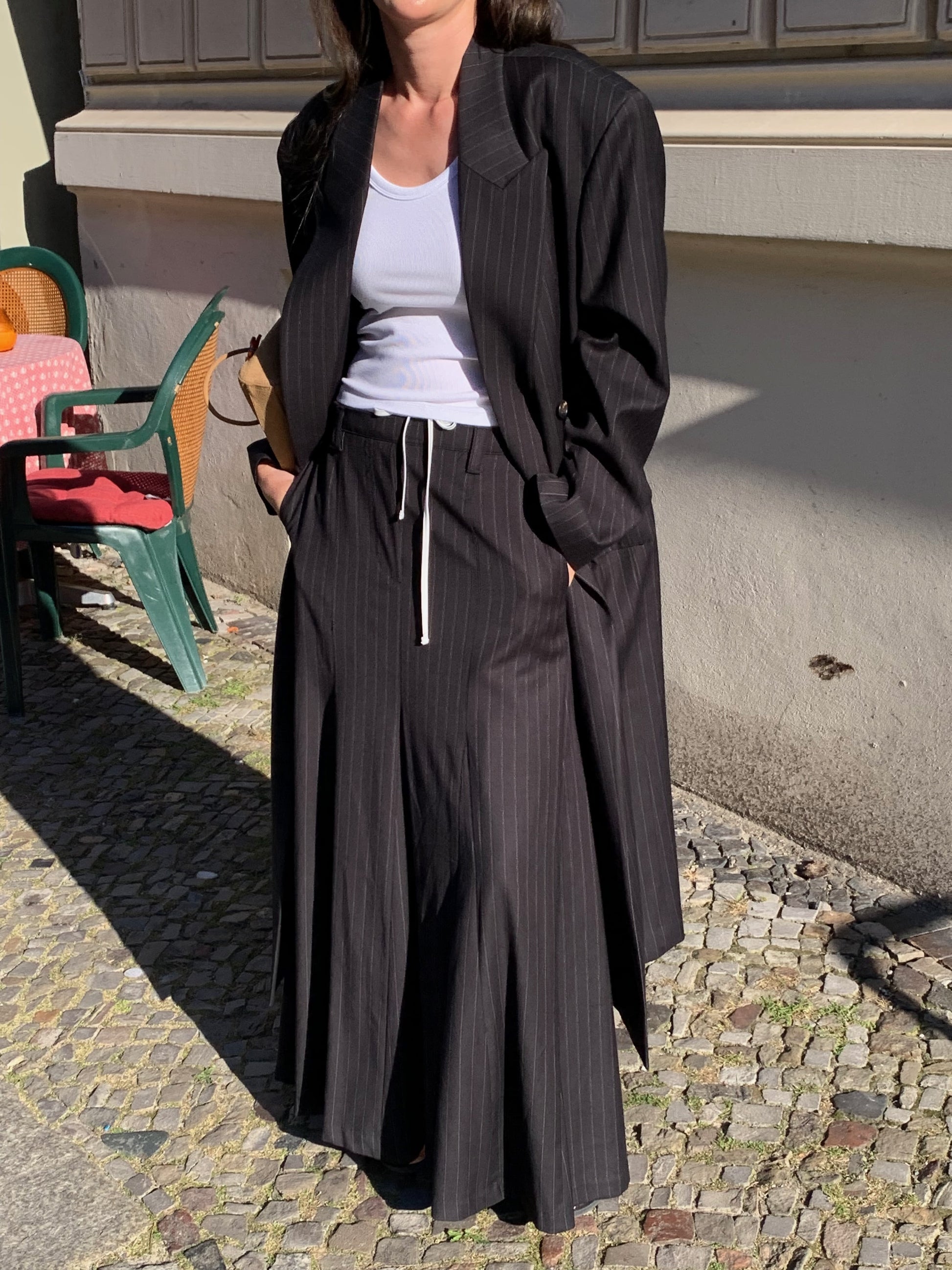 This Korean designer brand patchwork tie striped loose pants perfectly combines classic stripes with modern tailoring, designed for those who pursue taste and uniqueness. It's not just a pair of pants; it's an excellent piece for showcasing your extraordinary fashion attitude.