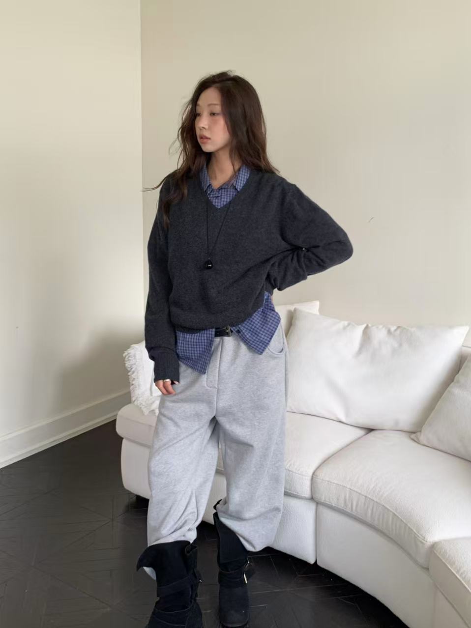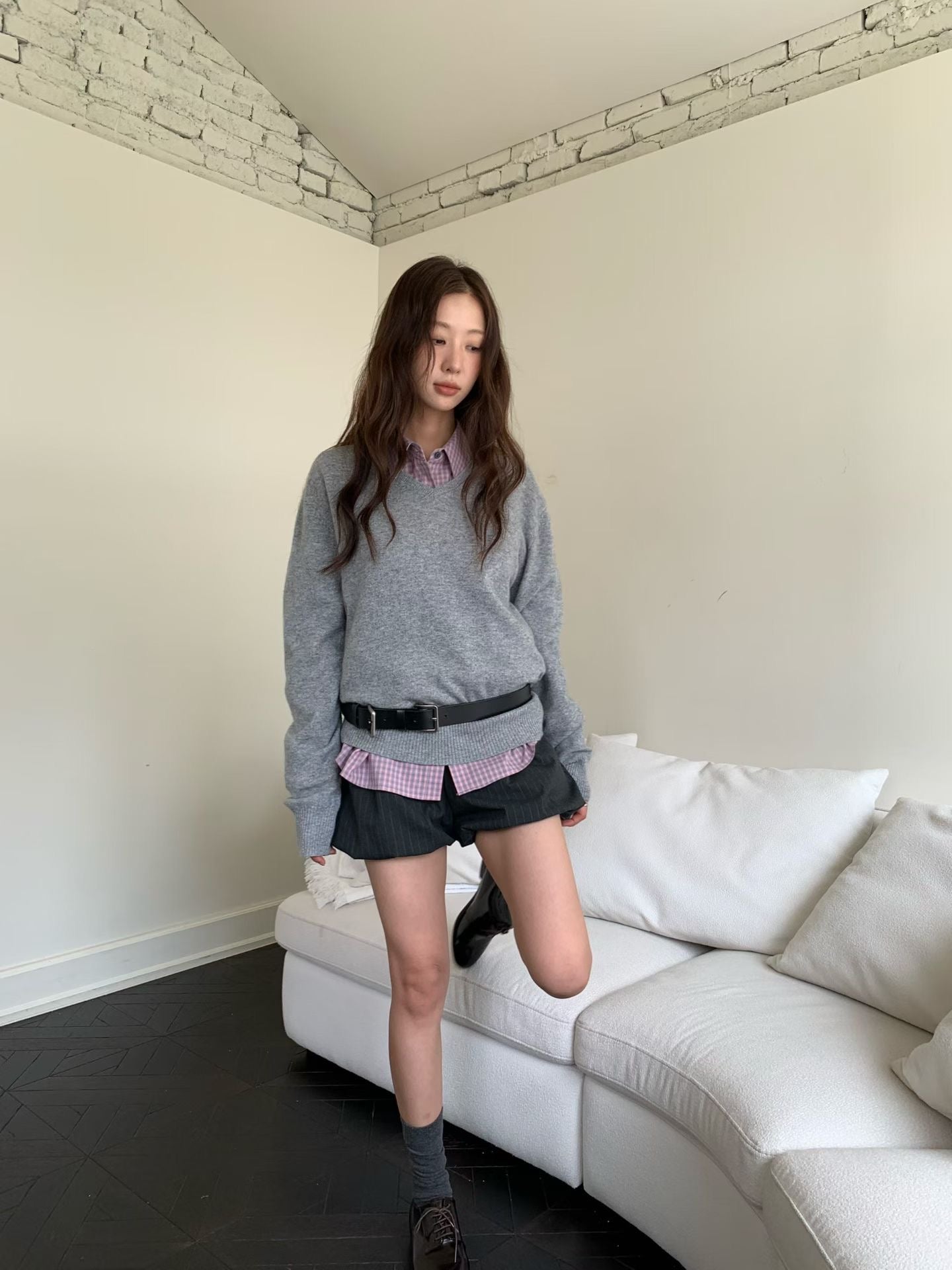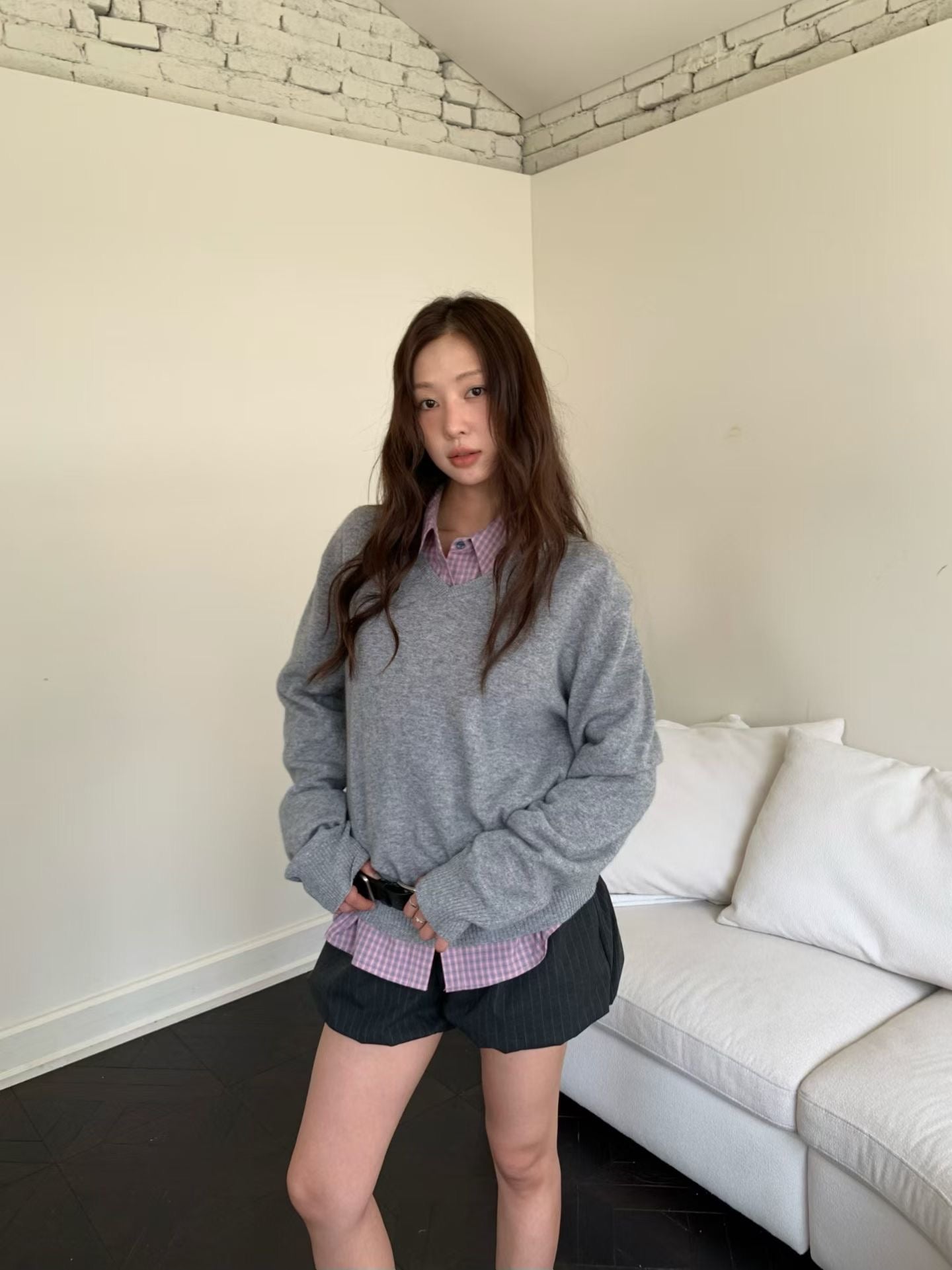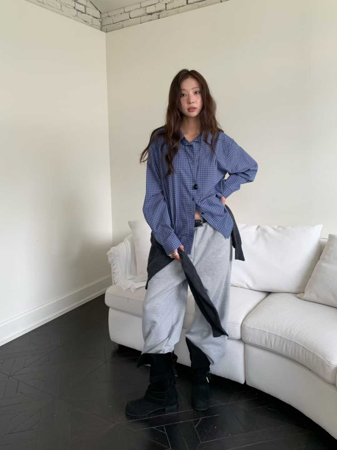 這款韓系校園風格紋寬鬆襯衫,將經典的格紋圖案與韓系的寬鬆廓形完美結合,是為追求舒適與時尚的你量身打造的百搭單品。