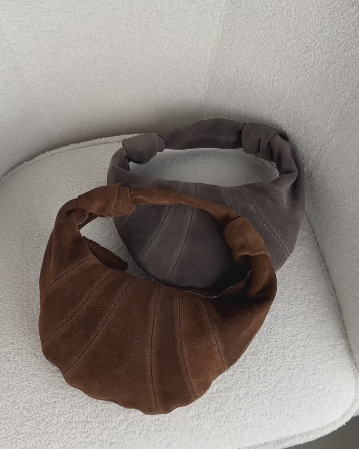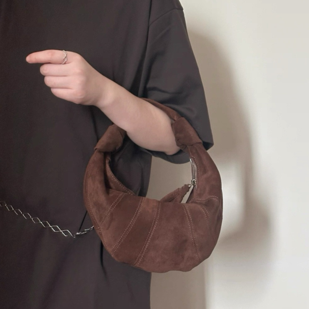 BG21882- 輕奢真皮牛角包腋下可頌包磨砂麂皮牛皮2色(Pre-order 優惠中)