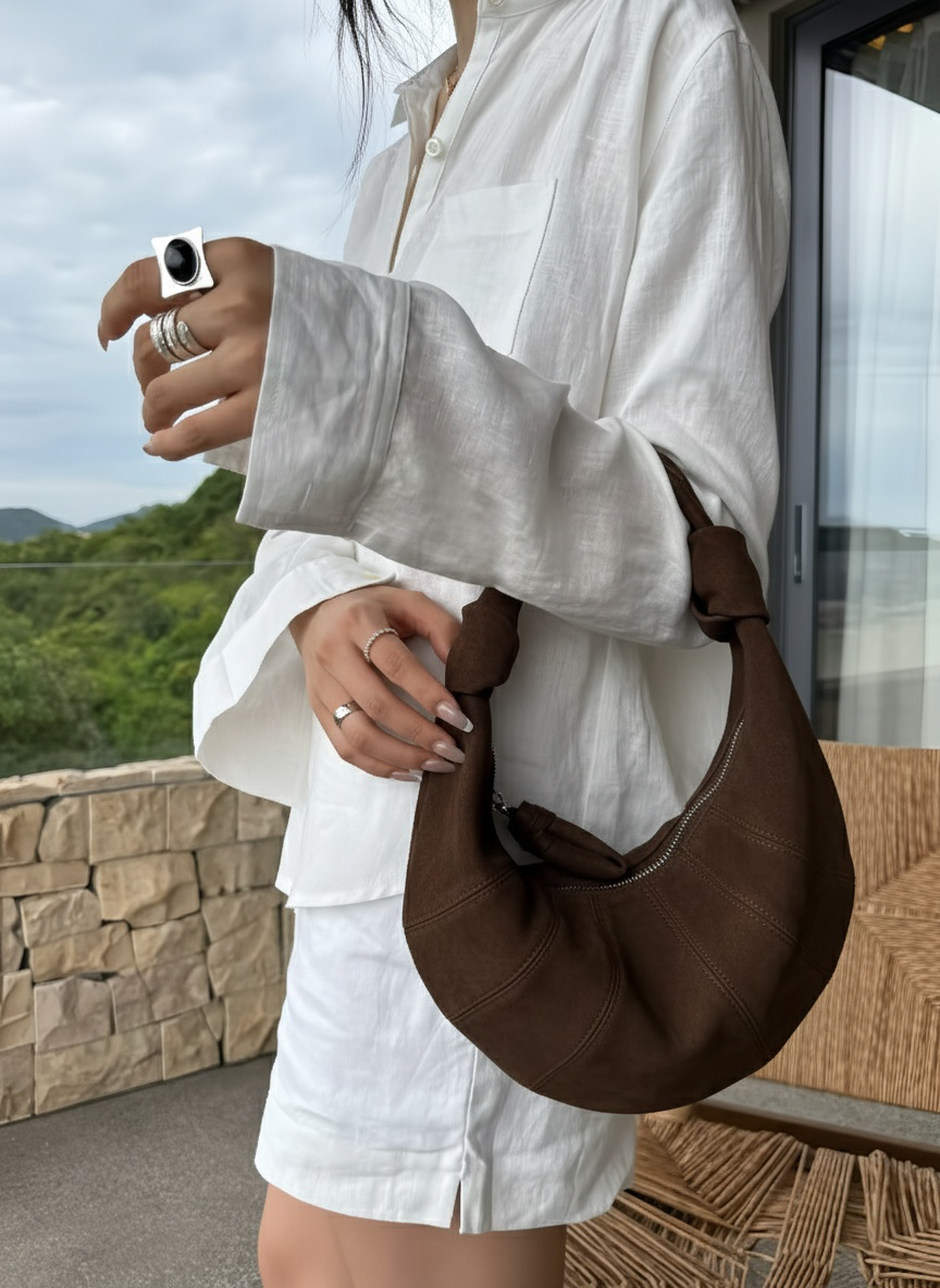 現在就擁有這款真皮牛角包,讓你的穿搭充滿高級感與不經意的時尚魅力。