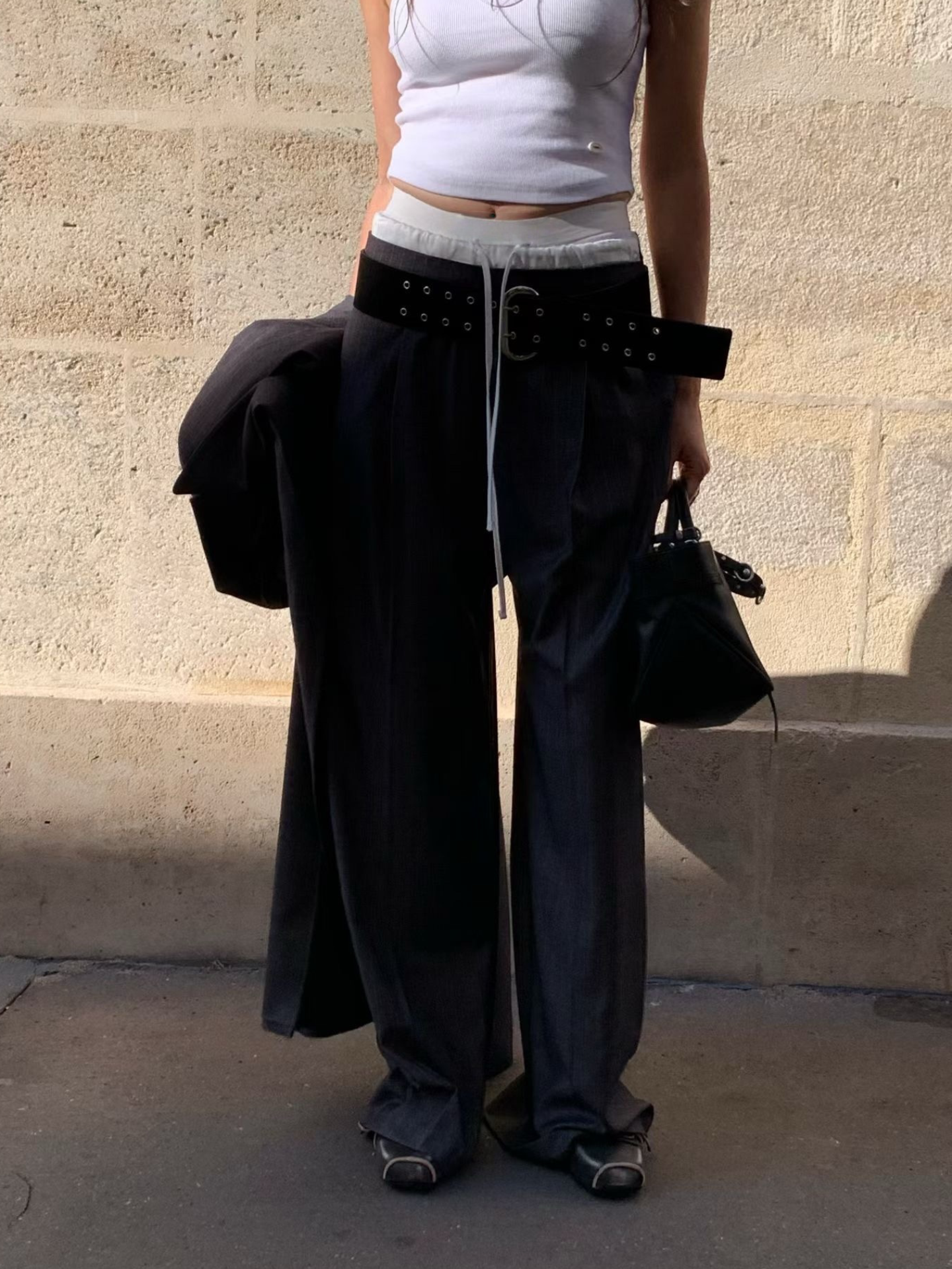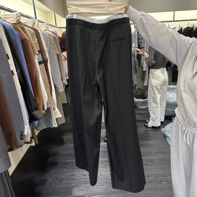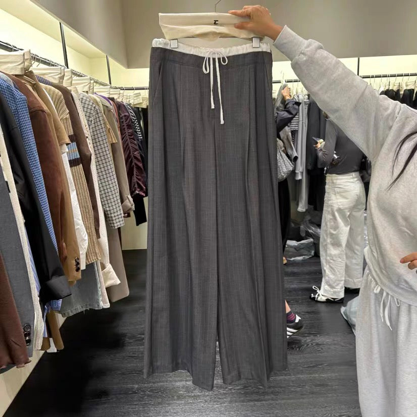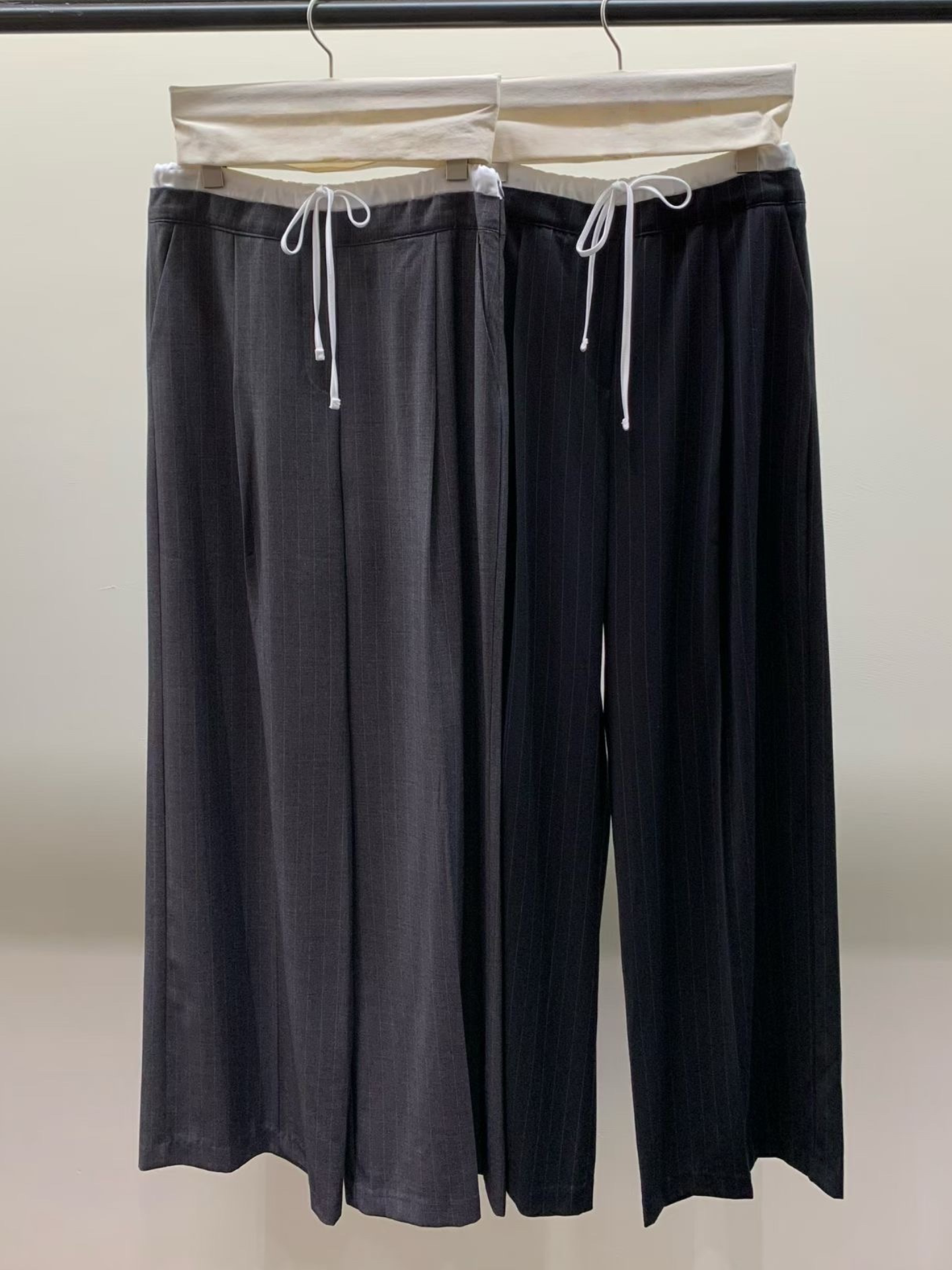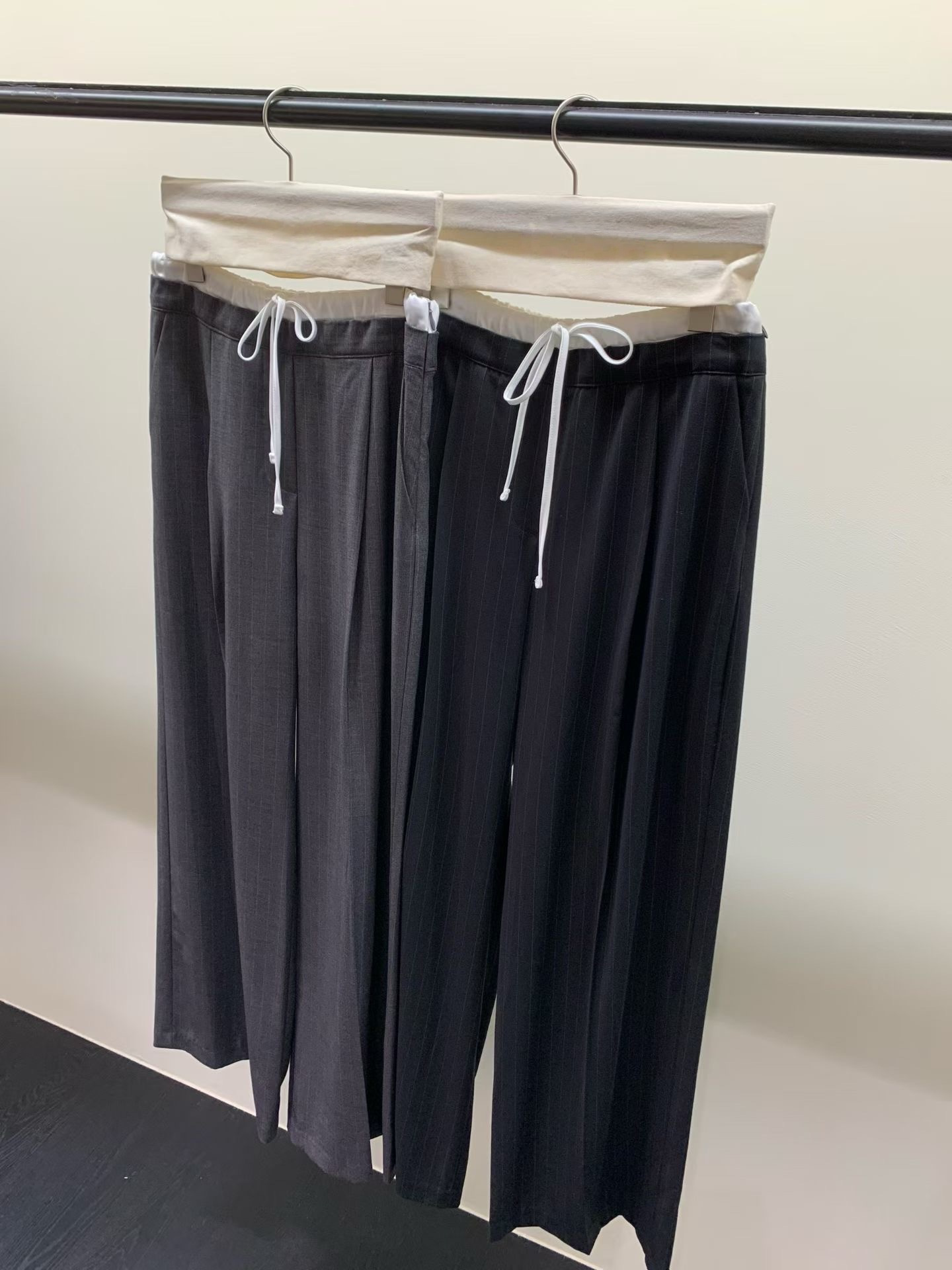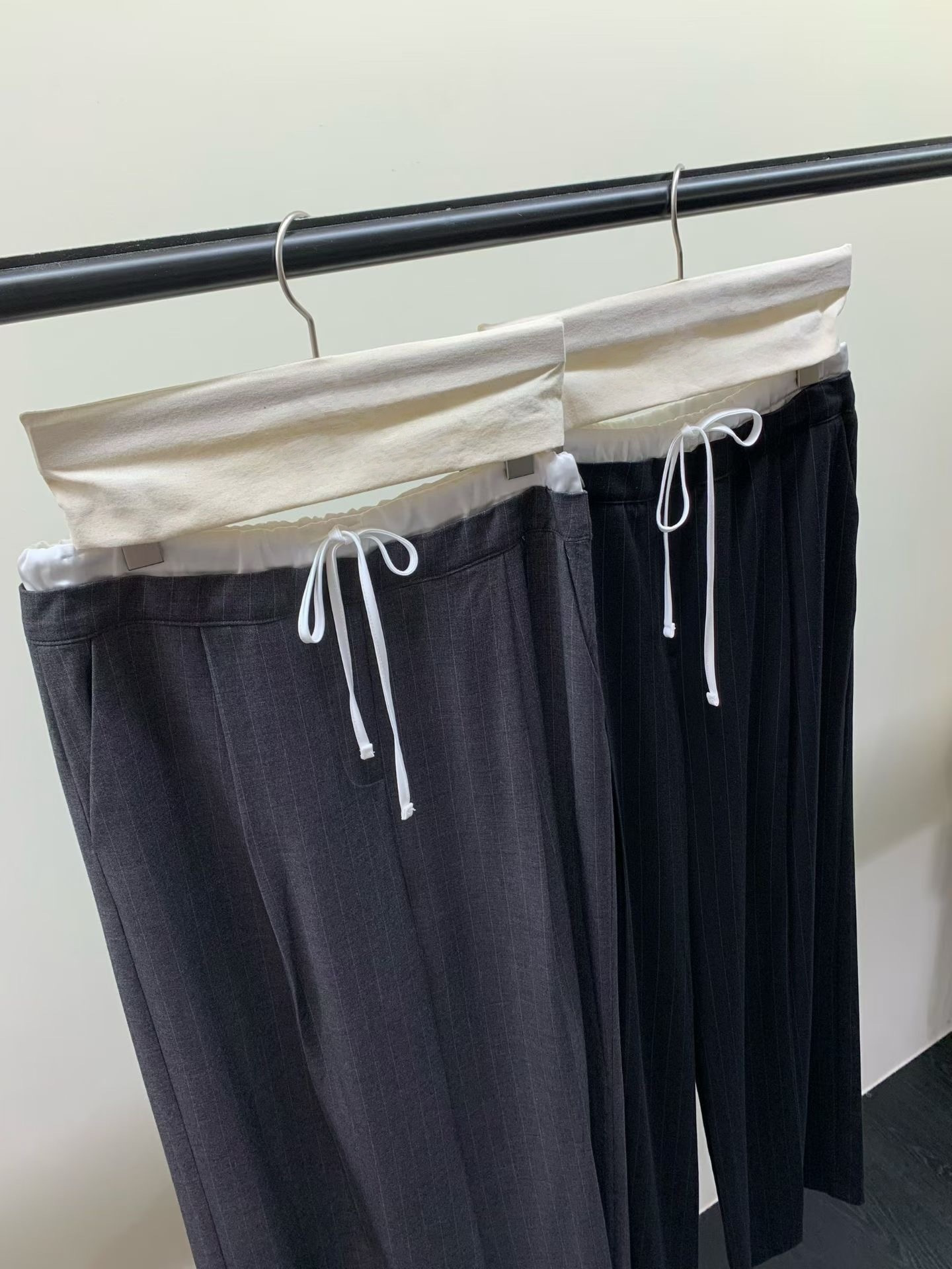 PT21883- 韓國設計師品牌拼接繫帶條紋寬鬆休閒褲(不包腰带)