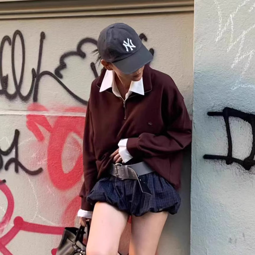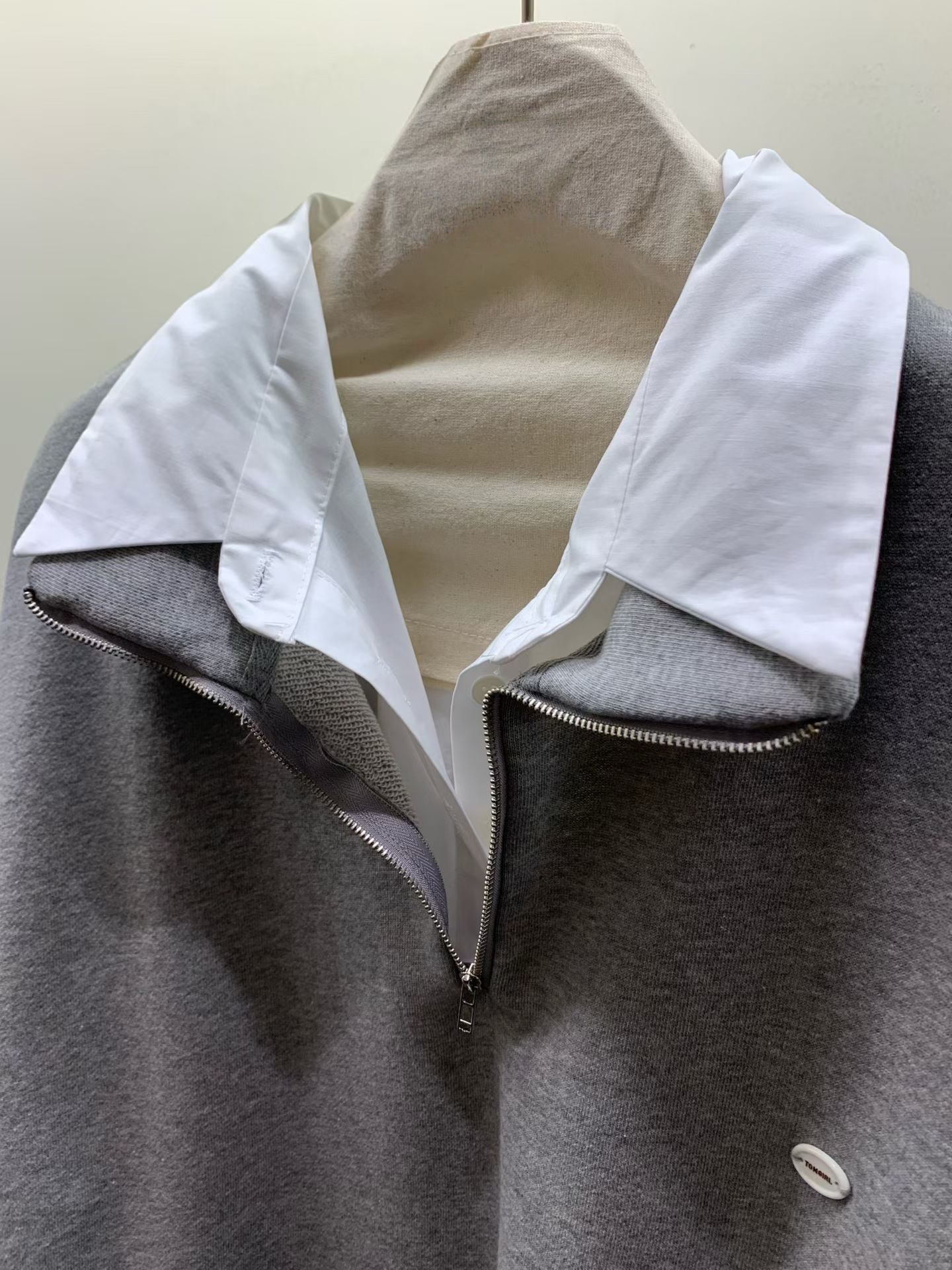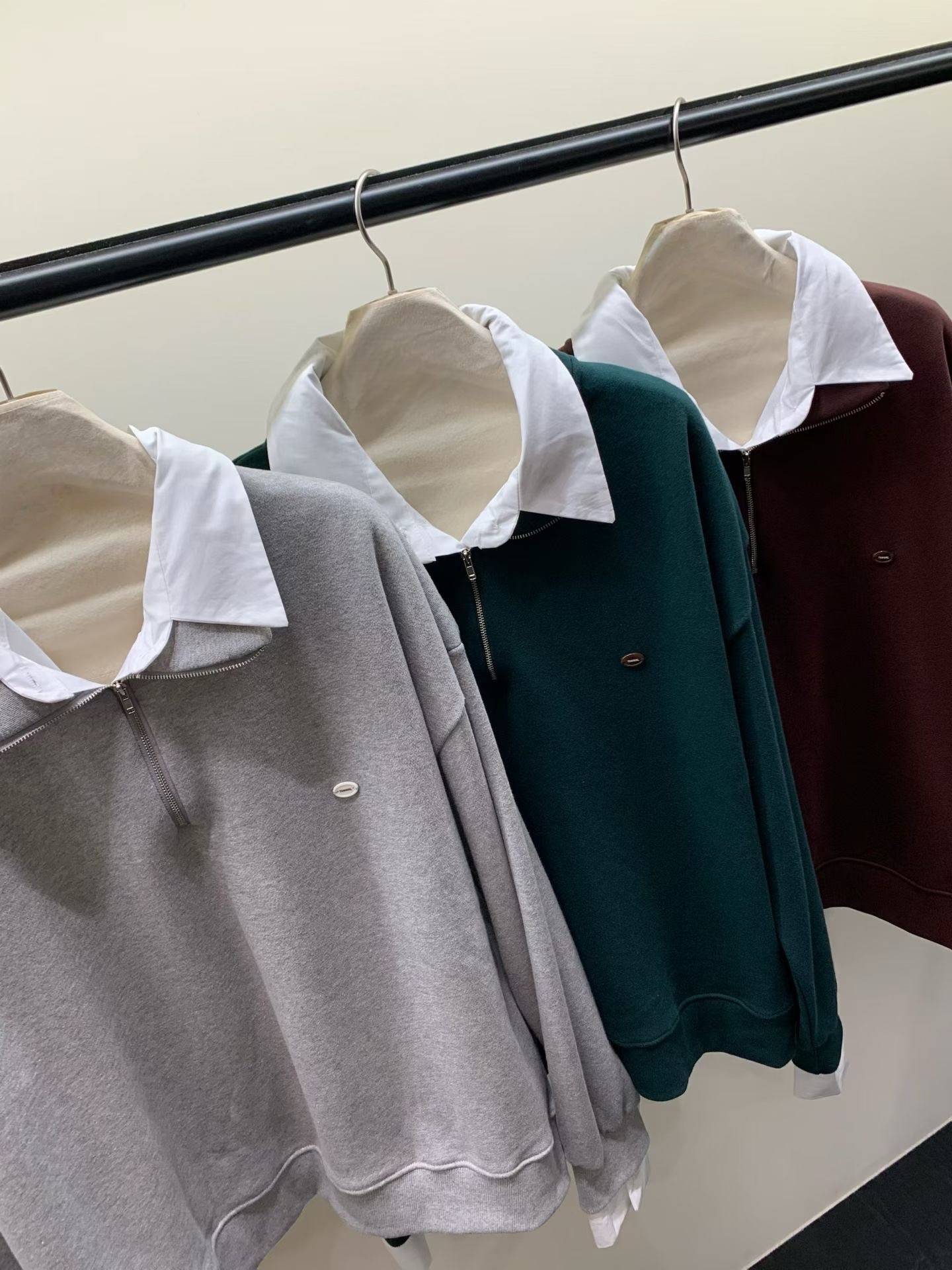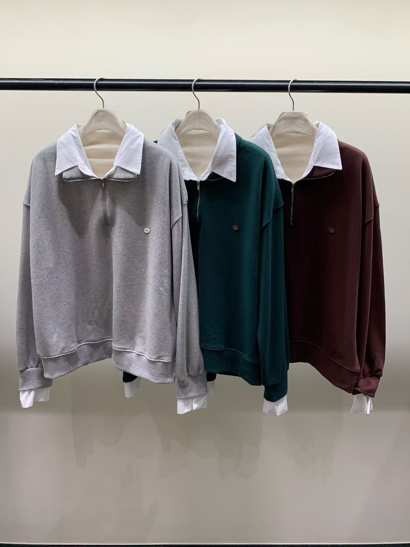 其獨特的假兩件式設計,將衛衣與白色襯衫領、袖口完美結合,讓你輕鬆穿出層次感,同時避免了繁瑣的疊穿。半拉鍊翻領的設計,既可拉上展現俐落,也可拉開呈現隨性,為整體造型注入巧思與百變風格。
