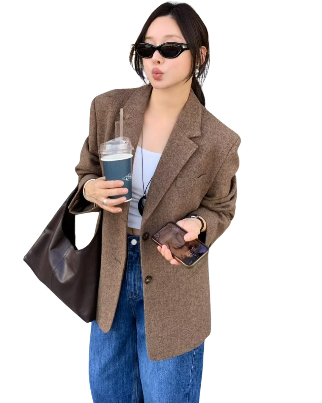 OT21988- 韓國頂級質感復古棕羊毛西裝外套