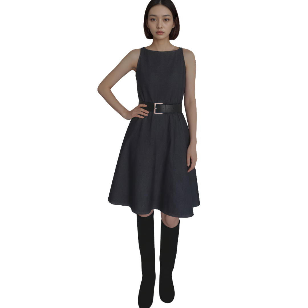 讓經典Denim為您的衣櫥注入一股清新氣息!這款輕復古風A字無袖牛仔連身裙,是您在夏日或早秋打造簡約時尚造型的完美選擇。我們選用優質的牛仔面料,其獨特的深色調與細緻紋理,在經典中透出不凡的品味。