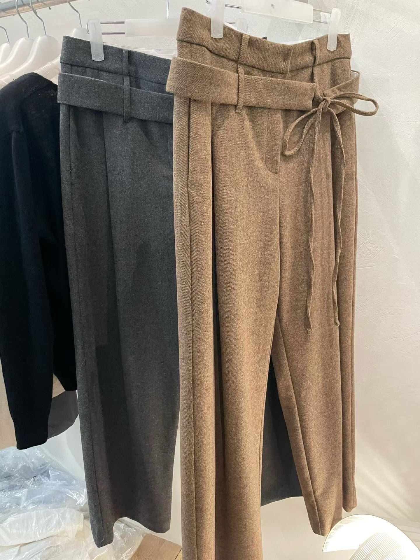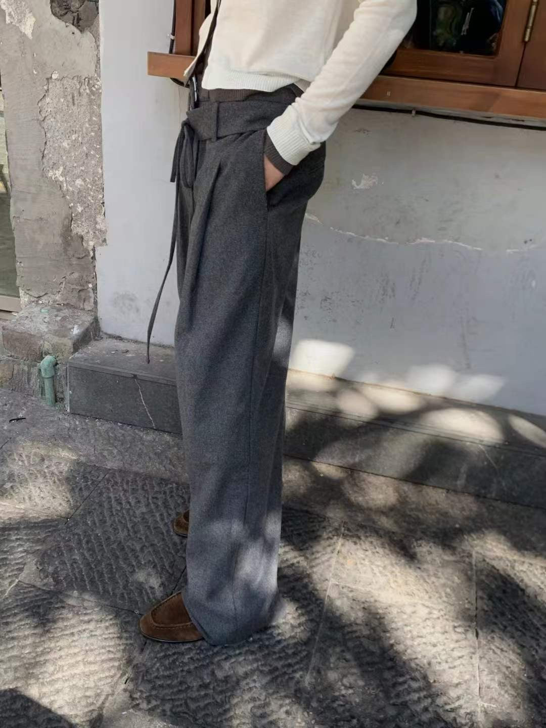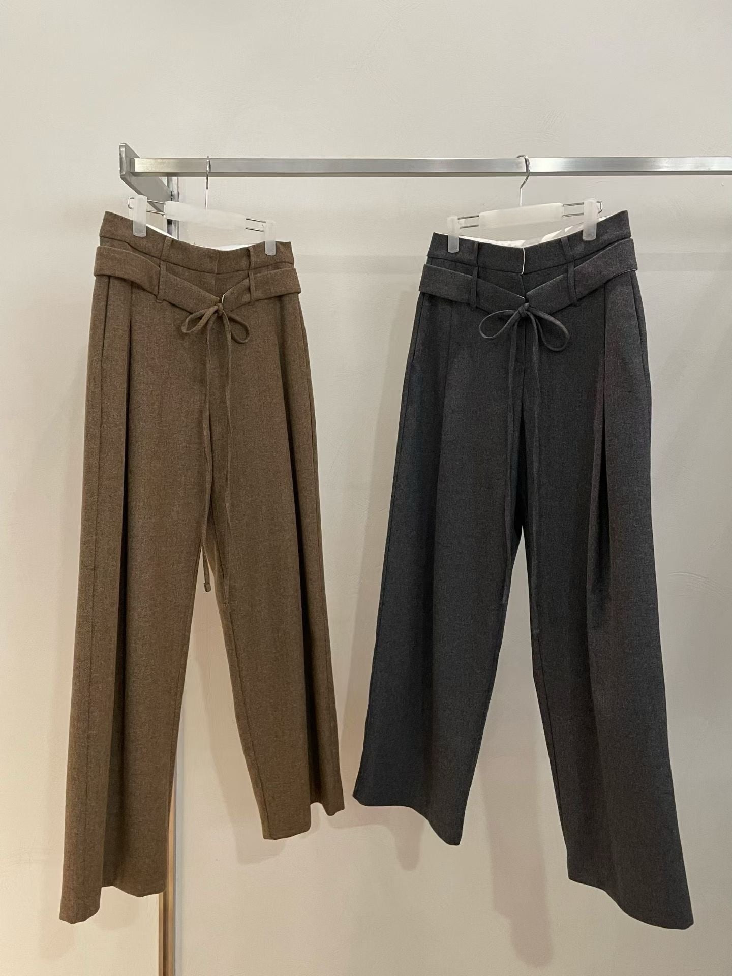 PT21996- 韓國設計感爆棚羊毛混紡繫帶闊腿褲