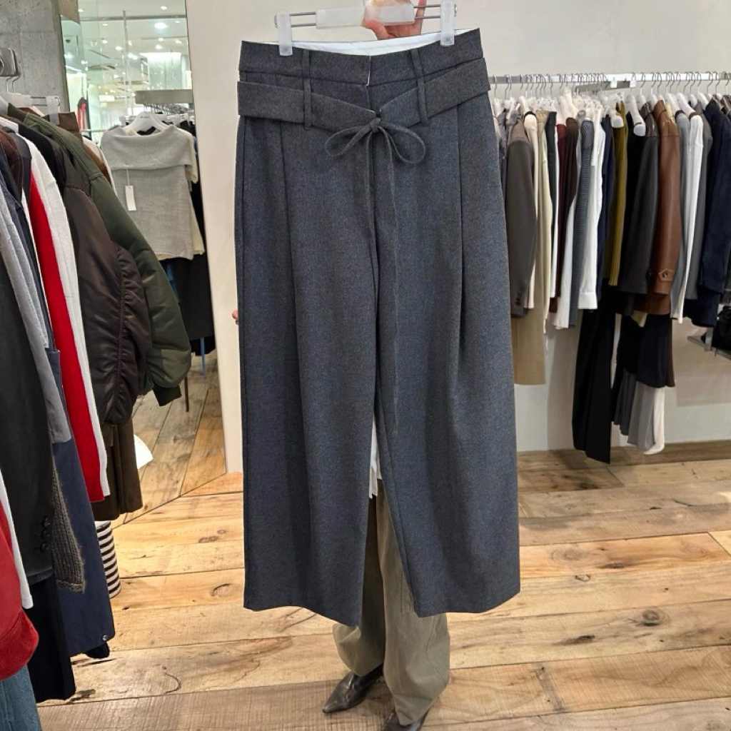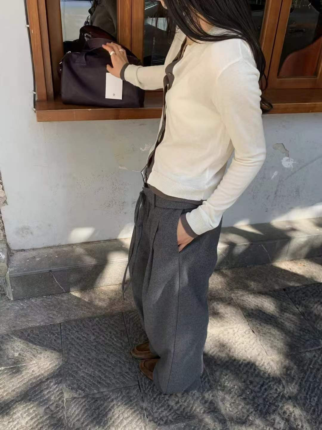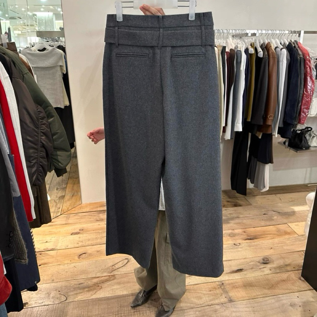 PT21996- 韓國設計感爆棚羊毛混紡繫帶闊腿褲