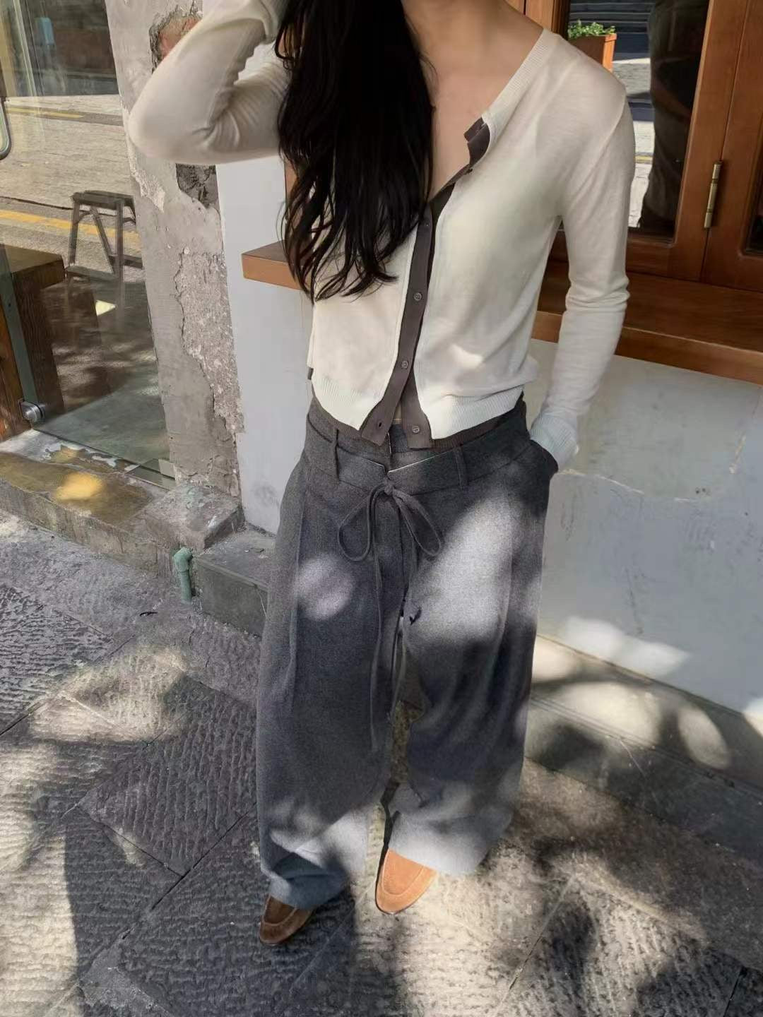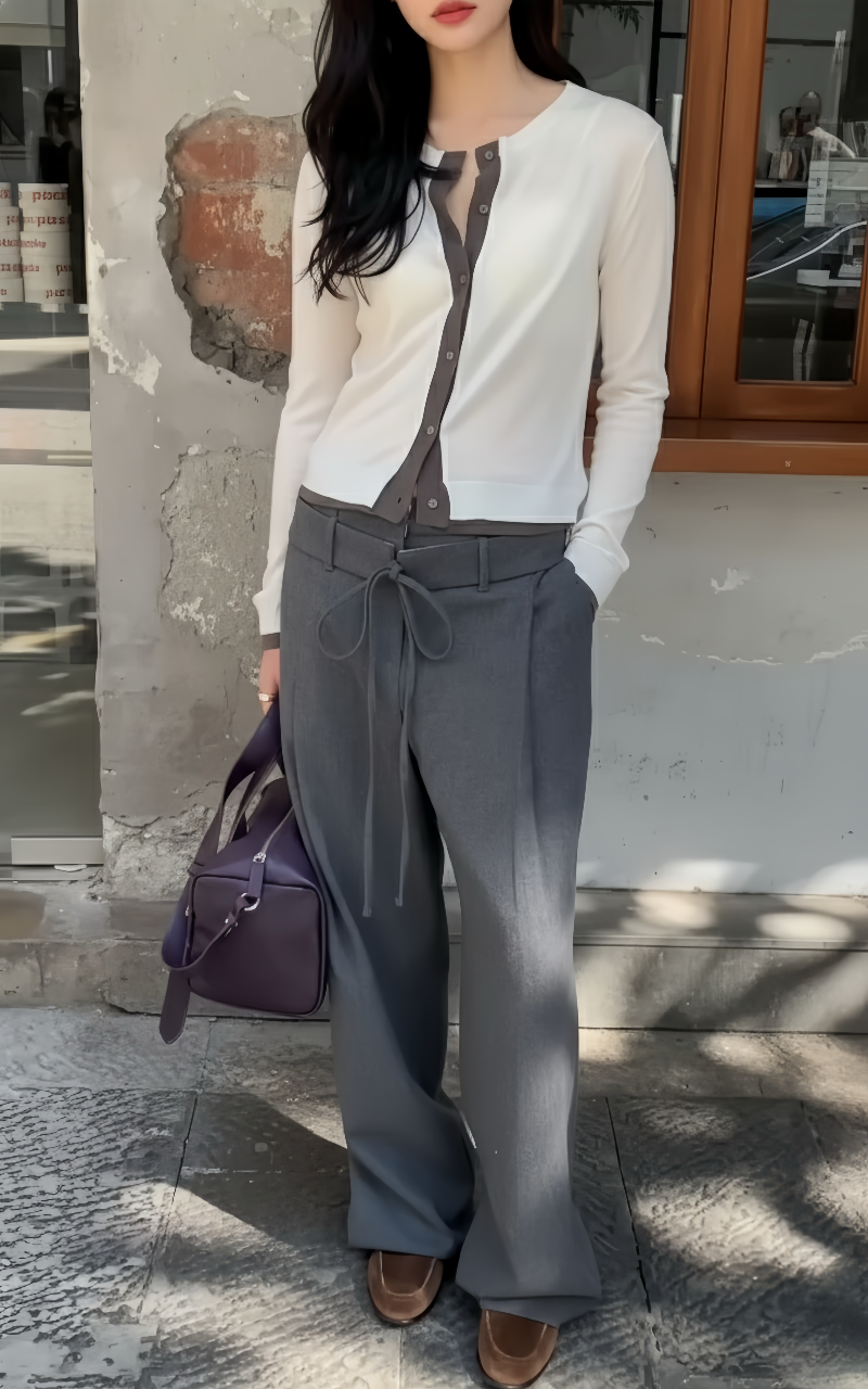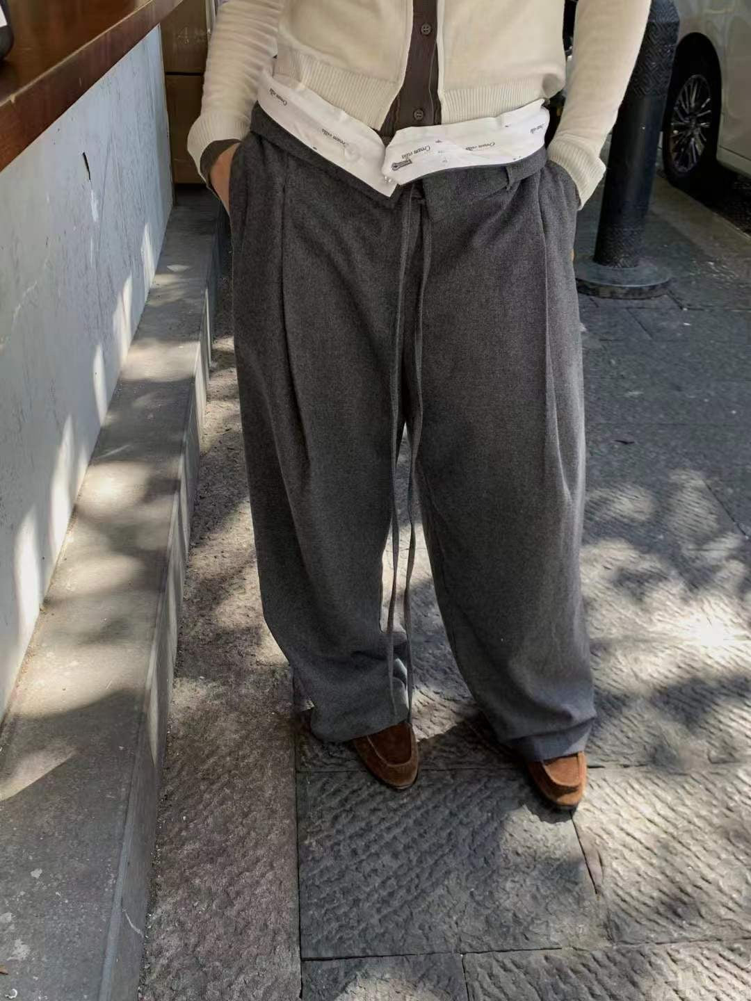這款設計感羊毛混紡繫帶闊腿褲,專為追求質感、舒適與獨特細節的你而生。它將秋冬的溫暖材質與寬鬆的潮流廓形完美結合,輕鬆穿出毫不費力的韓系高級感。