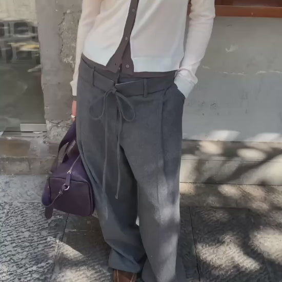 設計感爆棚,羊毛混紡繫帶闊腿褲