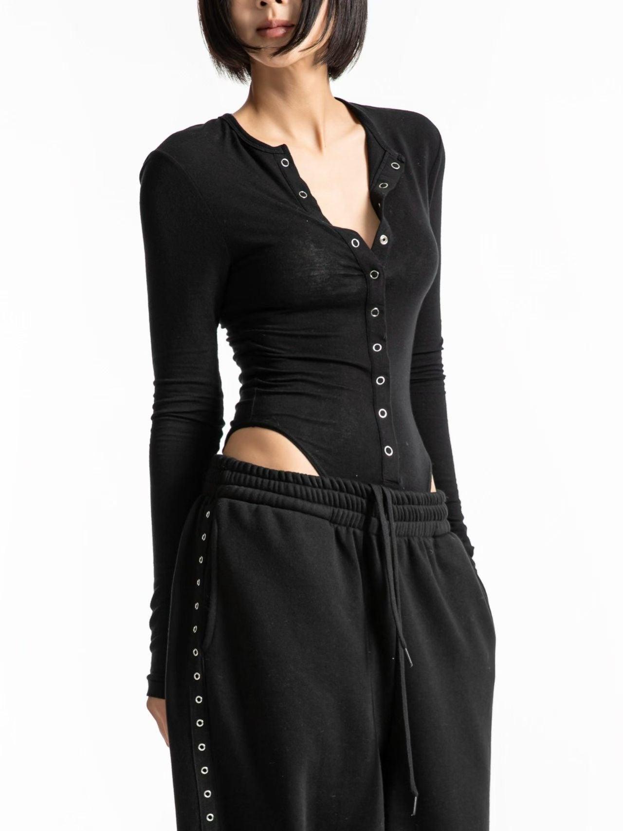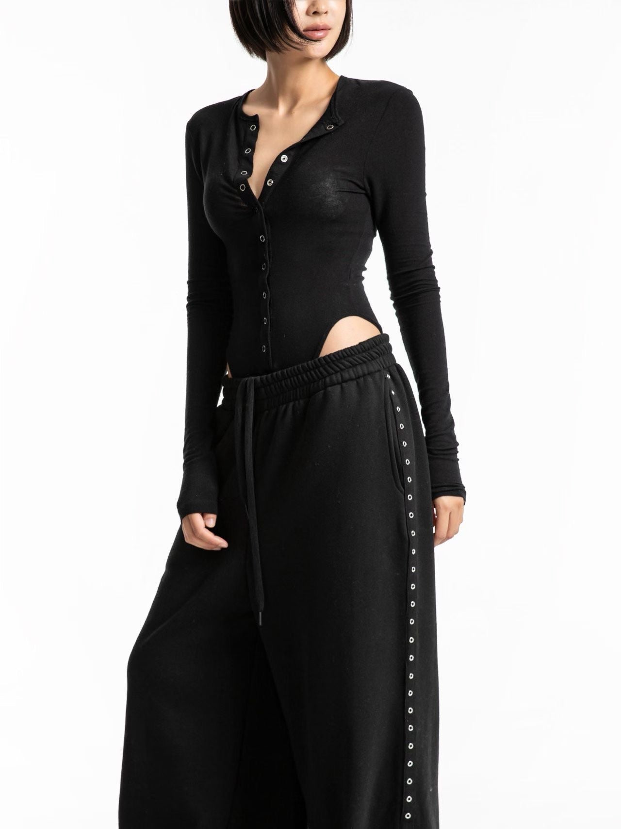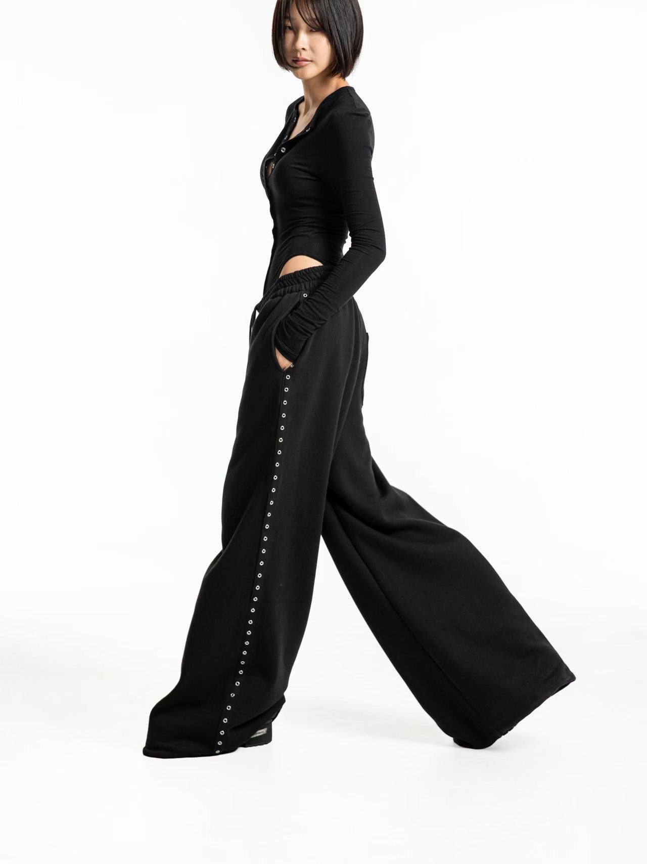 現在就擁有這款金屬雞眼闊腿褲,以舒適的材質與個性的設計,定義你的街頭時尚。
