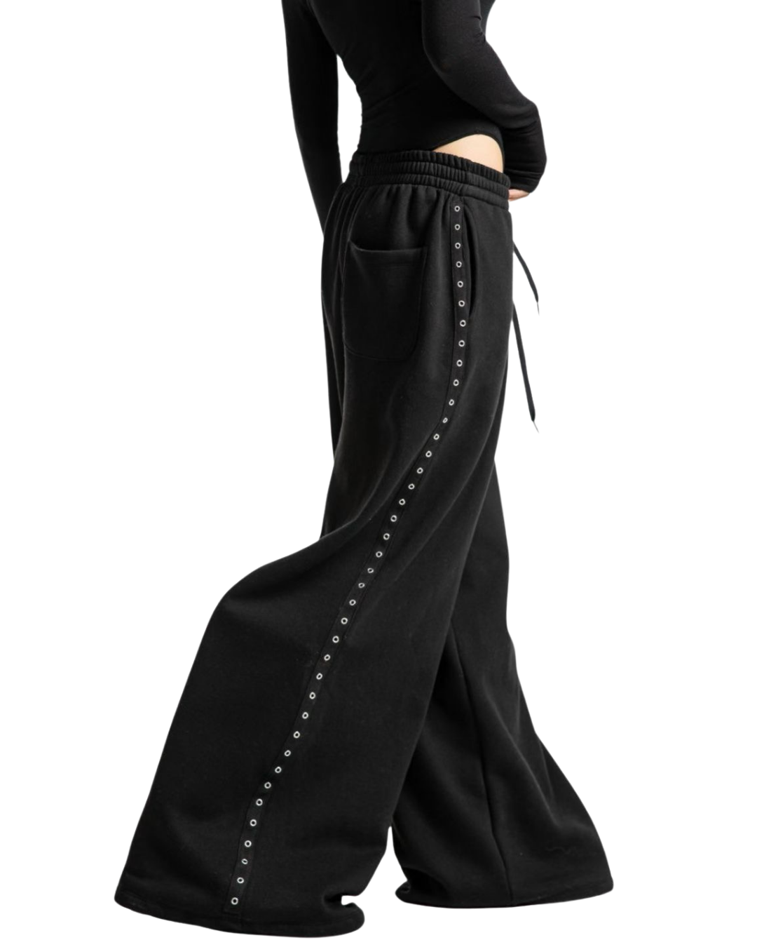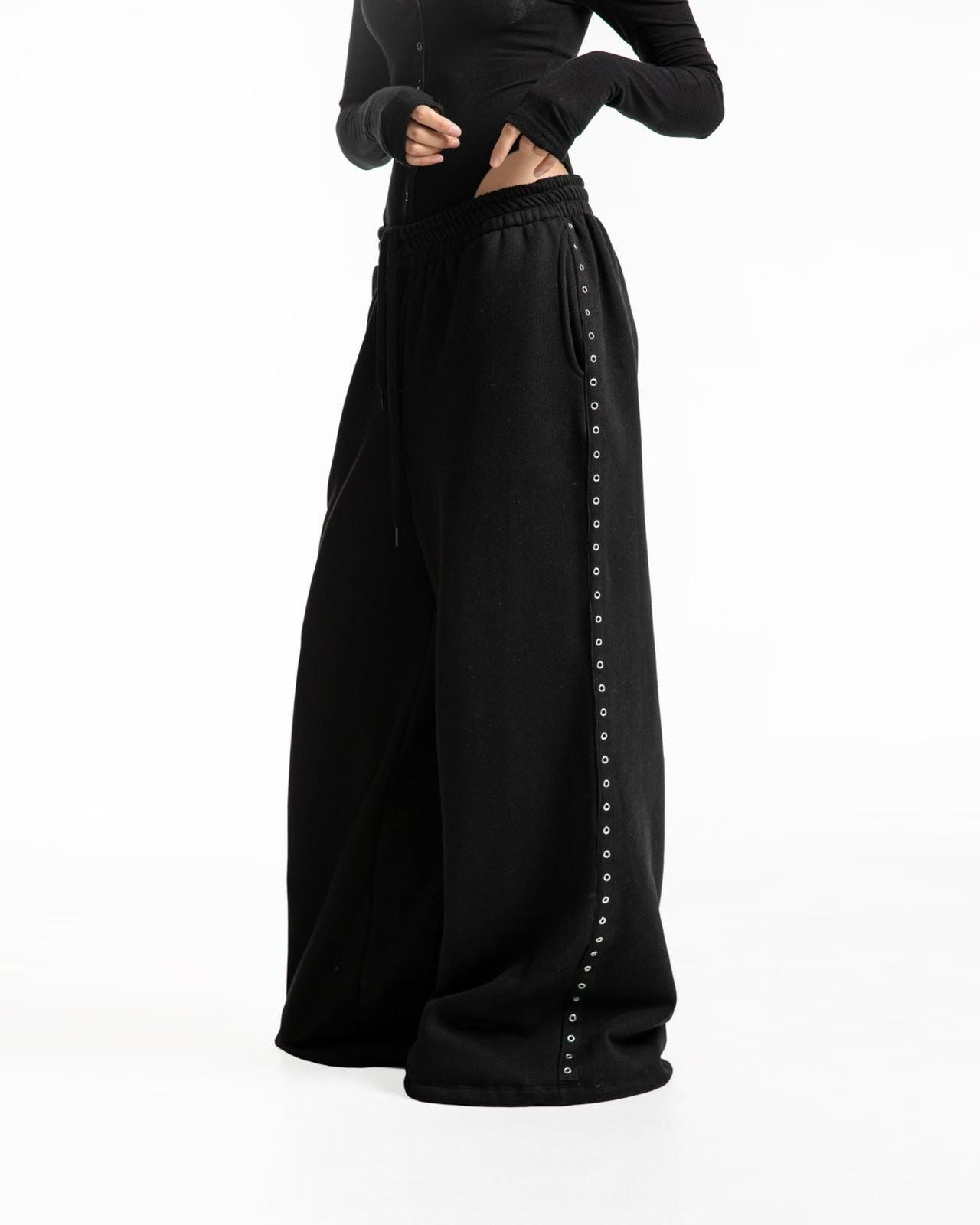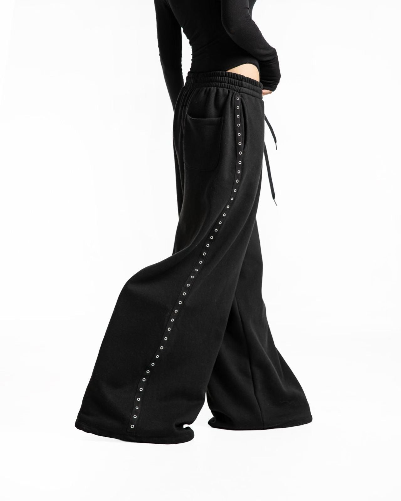 街頭酷帥,極寬鬆金屬雞眼闊腿運動褲