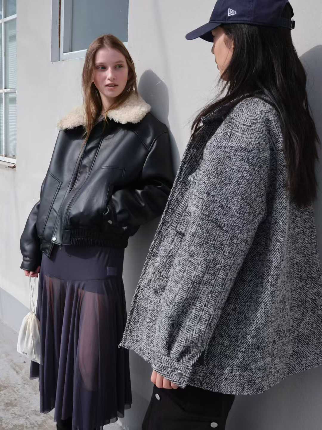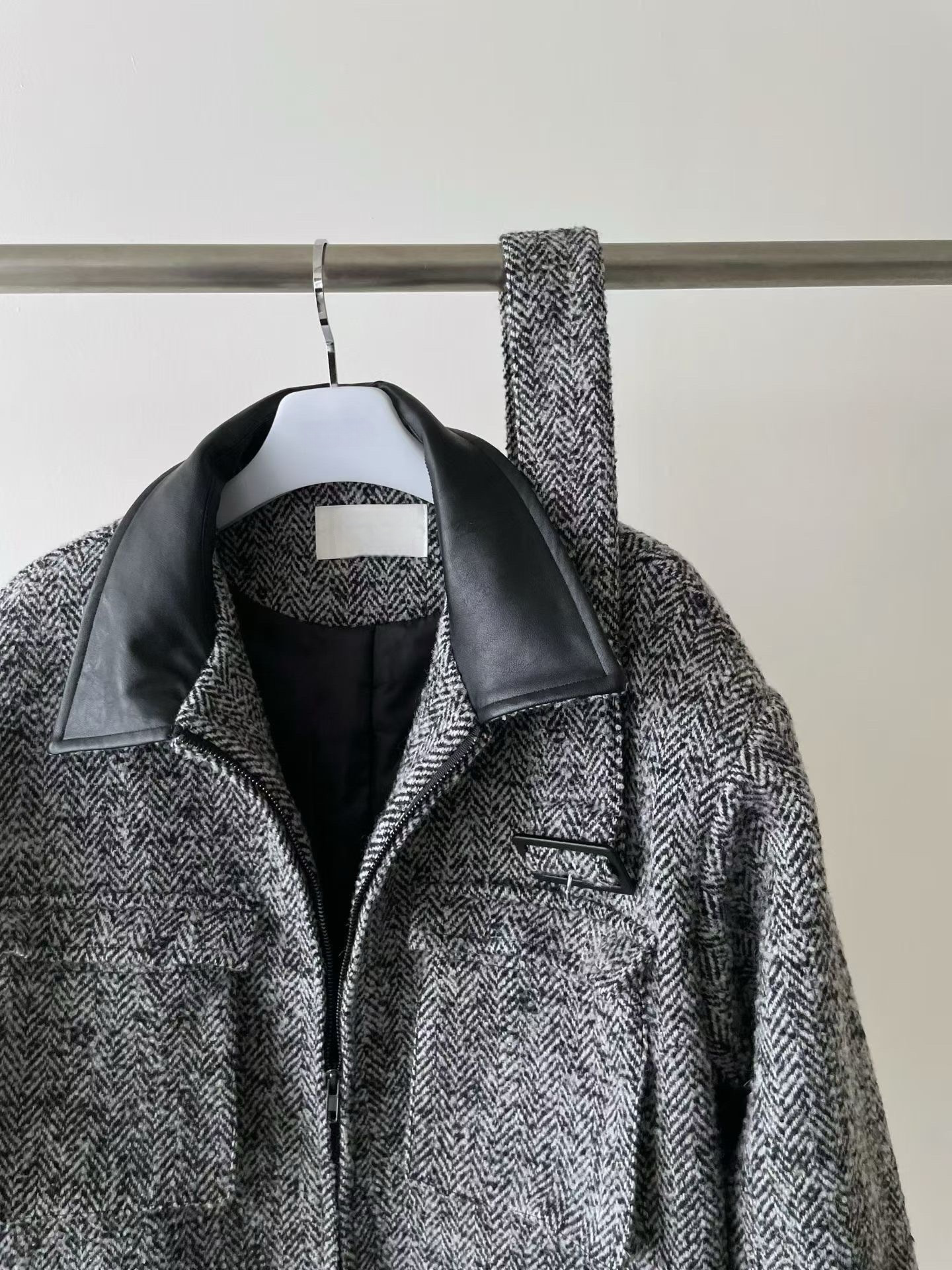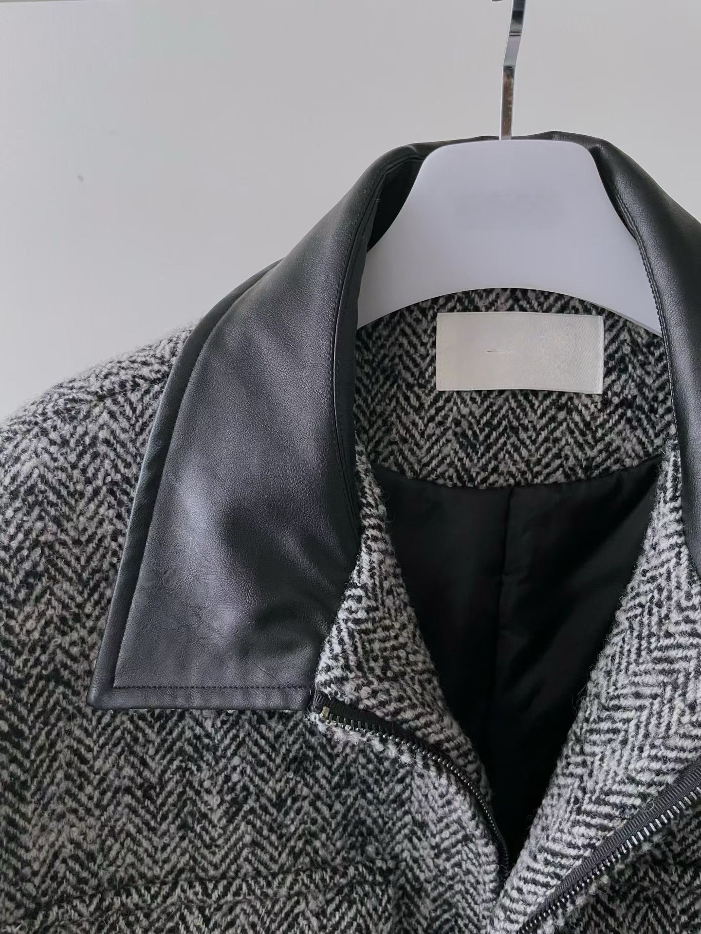 這套人字紋皮革拼接中長外套與短褲套裝,專為追求復古質感與俐落個性的你而設計。它將經典的人字紋粗花呢與硬朗的皮革細節完美融合,輕鬆穿出毫不費力的秋冬潮流感。
