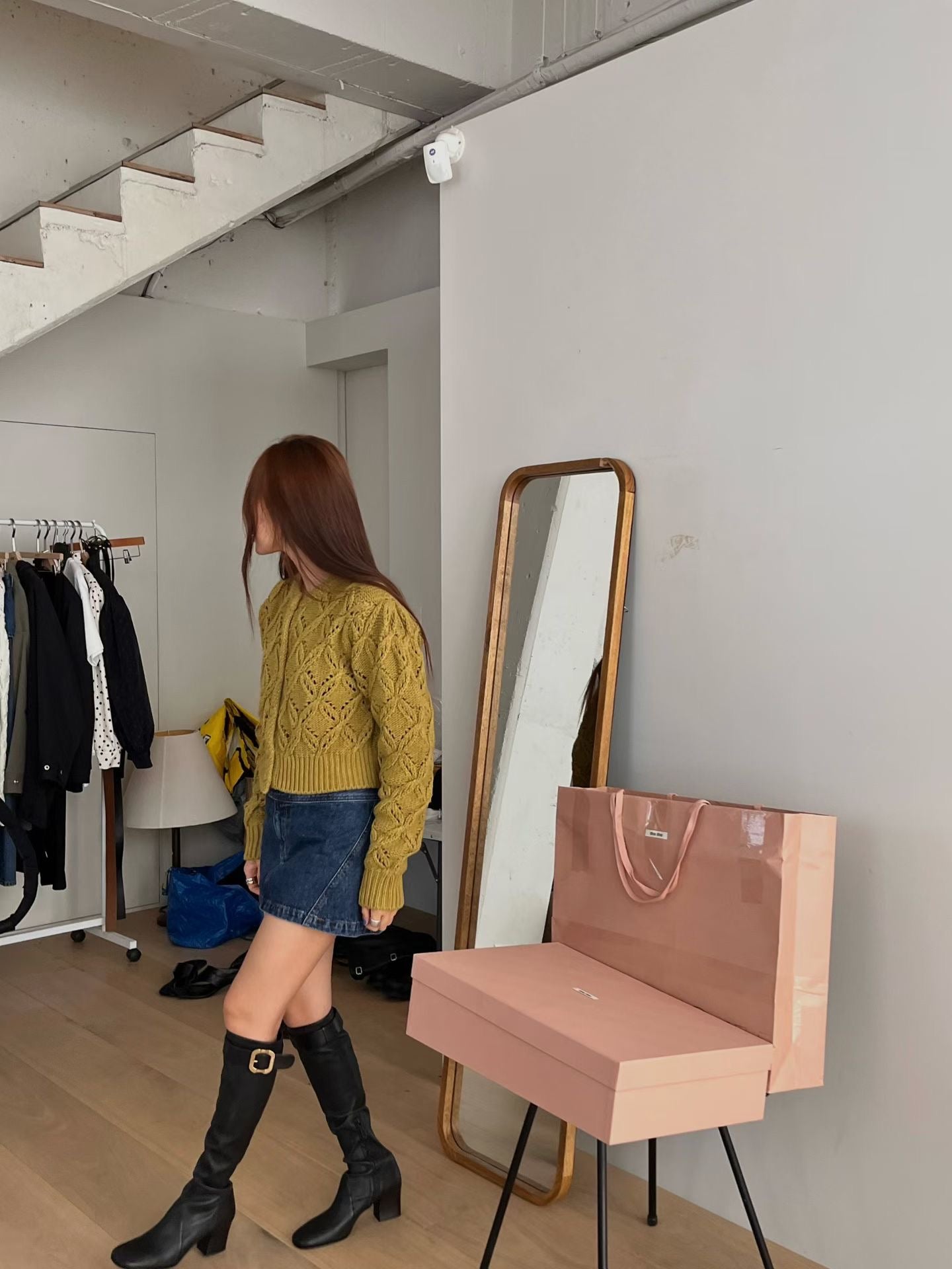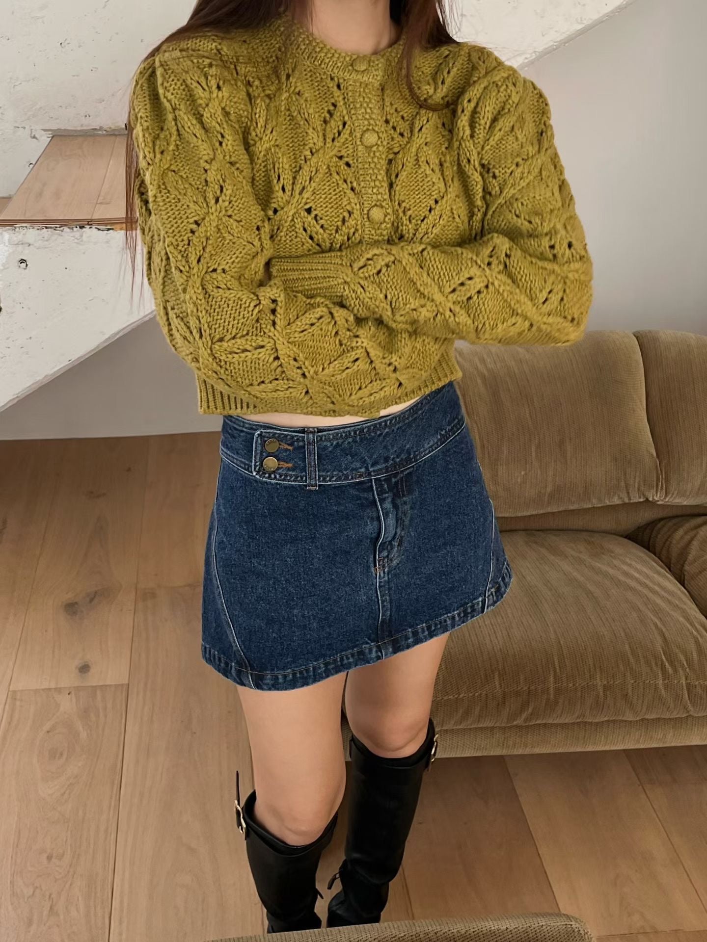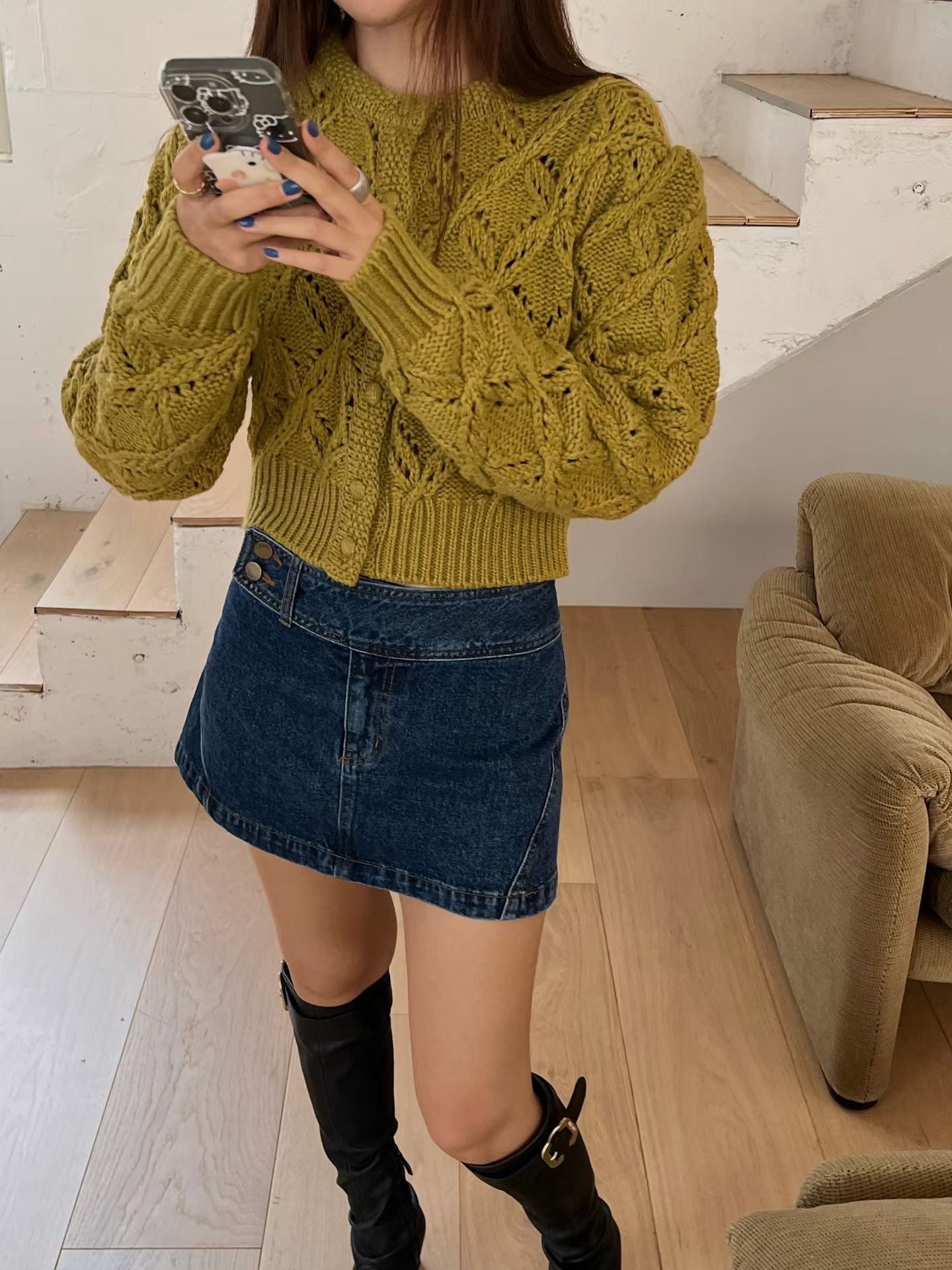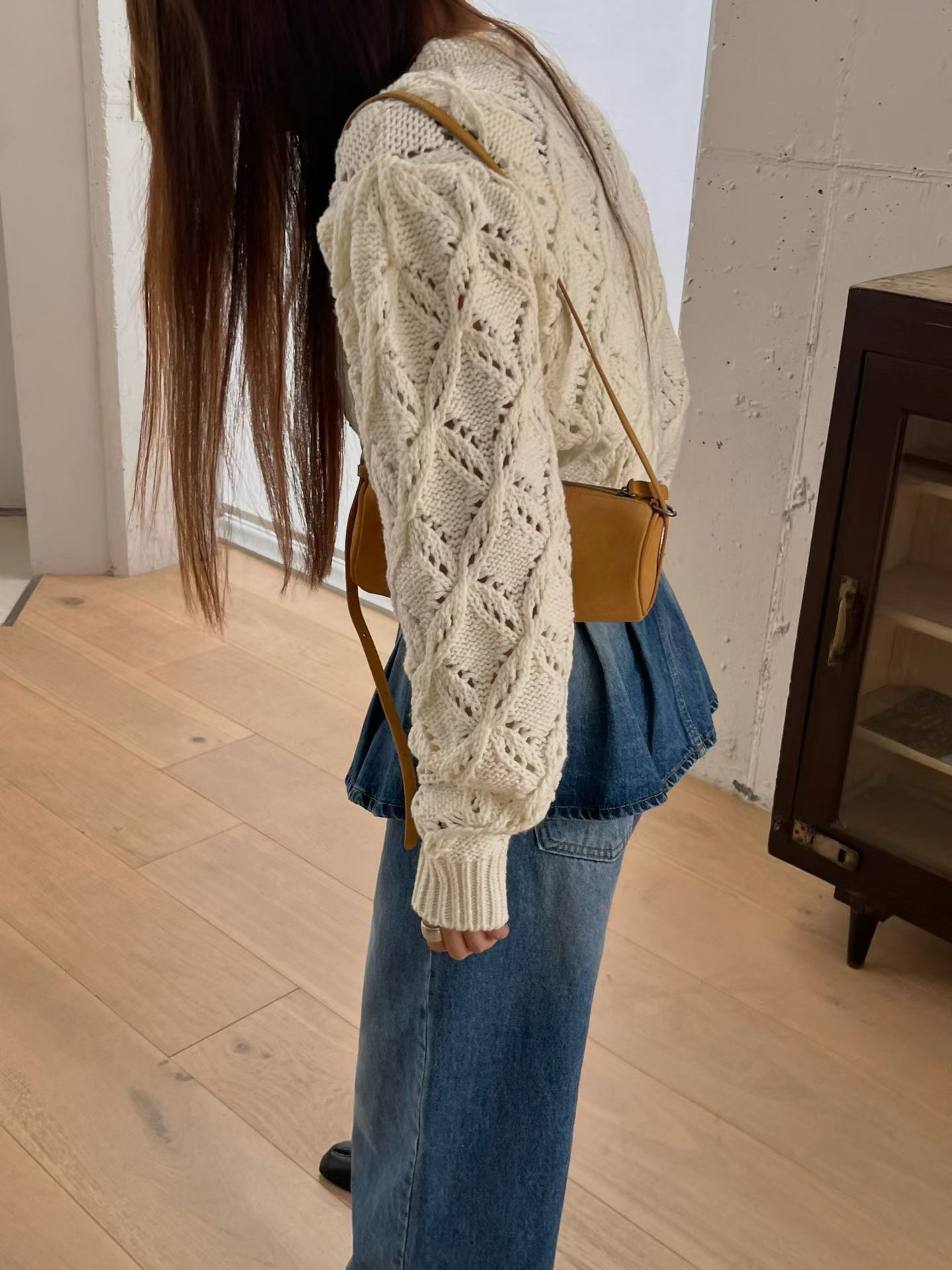這套設計感鏤空針織開衫與荷葉邊牛仔褲套裝,專為追求甜美細節與前衛廓形的你而設計。它將浪漫的田園風與硬朗的丹寧元素完美融合,創造出充滿戲劇性的潮流造型。