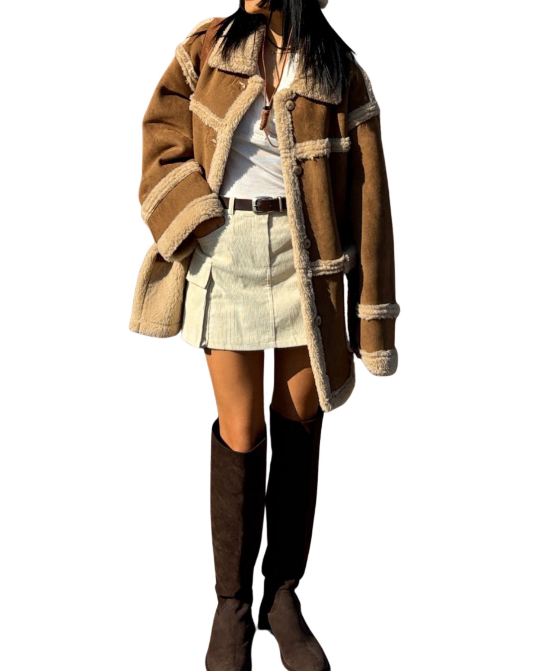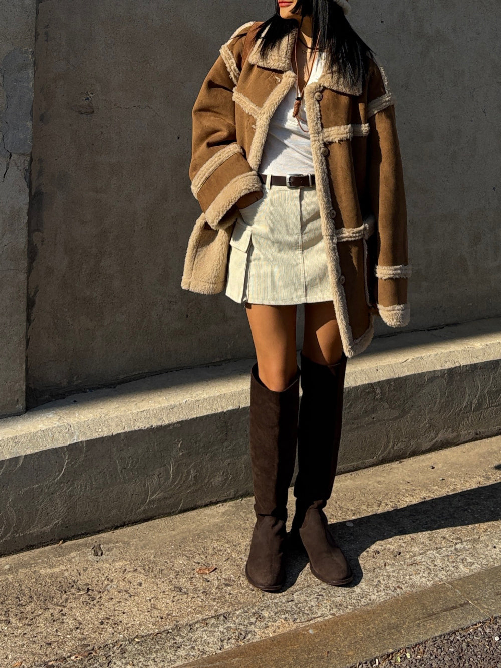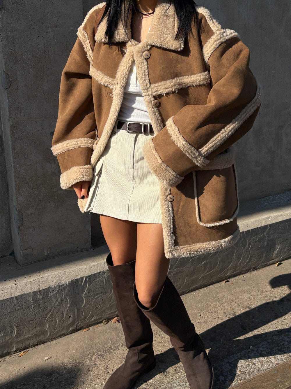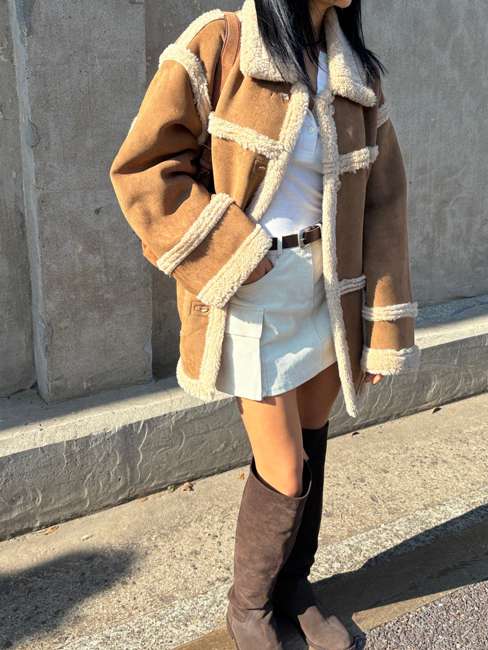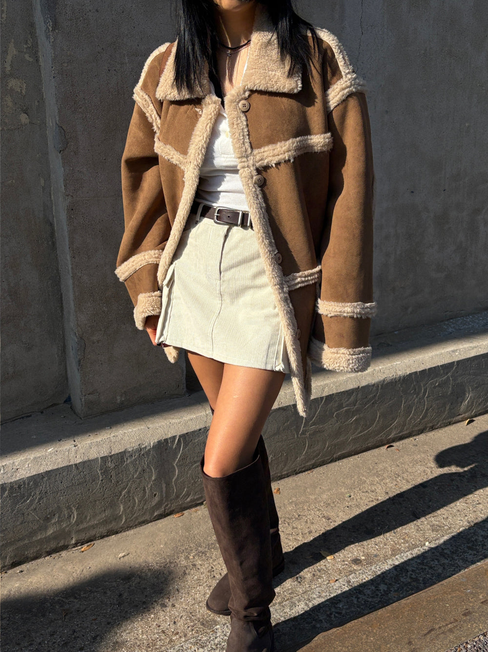 外套採用100%聚酯纖維 (Polyester) 面料製成,一面呈現質感麂皮/仿皮革的率性風格,另一面則為親膚細緻的羊羔毛/絨,兩種風格可隨意切換,輕鬆應對不同場合與心情!經典的Mustang機車夾克廓形搭配寬鬆的版型,不僅具備出色的防風保暖效果,視覺上也極致顯瘦,內搭毛衣也毫無束縛感。高領和袖口的毛絨細節設計,更增添了冬季的溫柔氣息。提供溫暖的駝色百搭的米色兩種質感色系,皆為均碼設計。立即擁有這件外套,用一件單品,輕鬆解鎖兩種頂級風格!