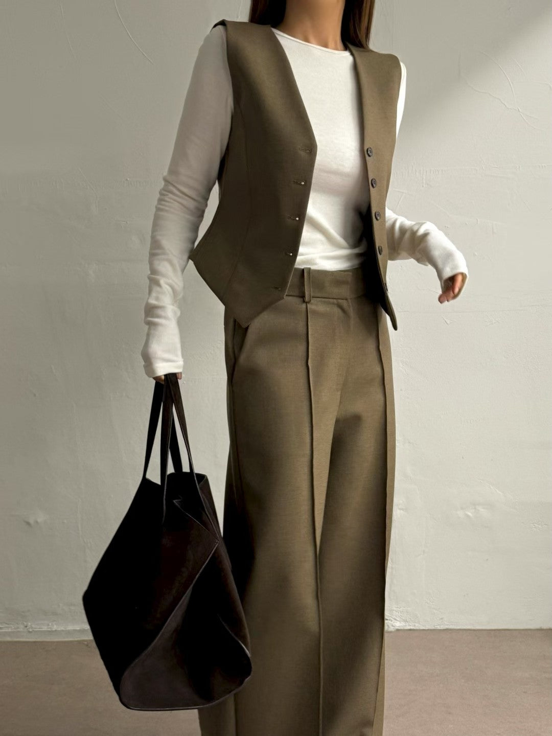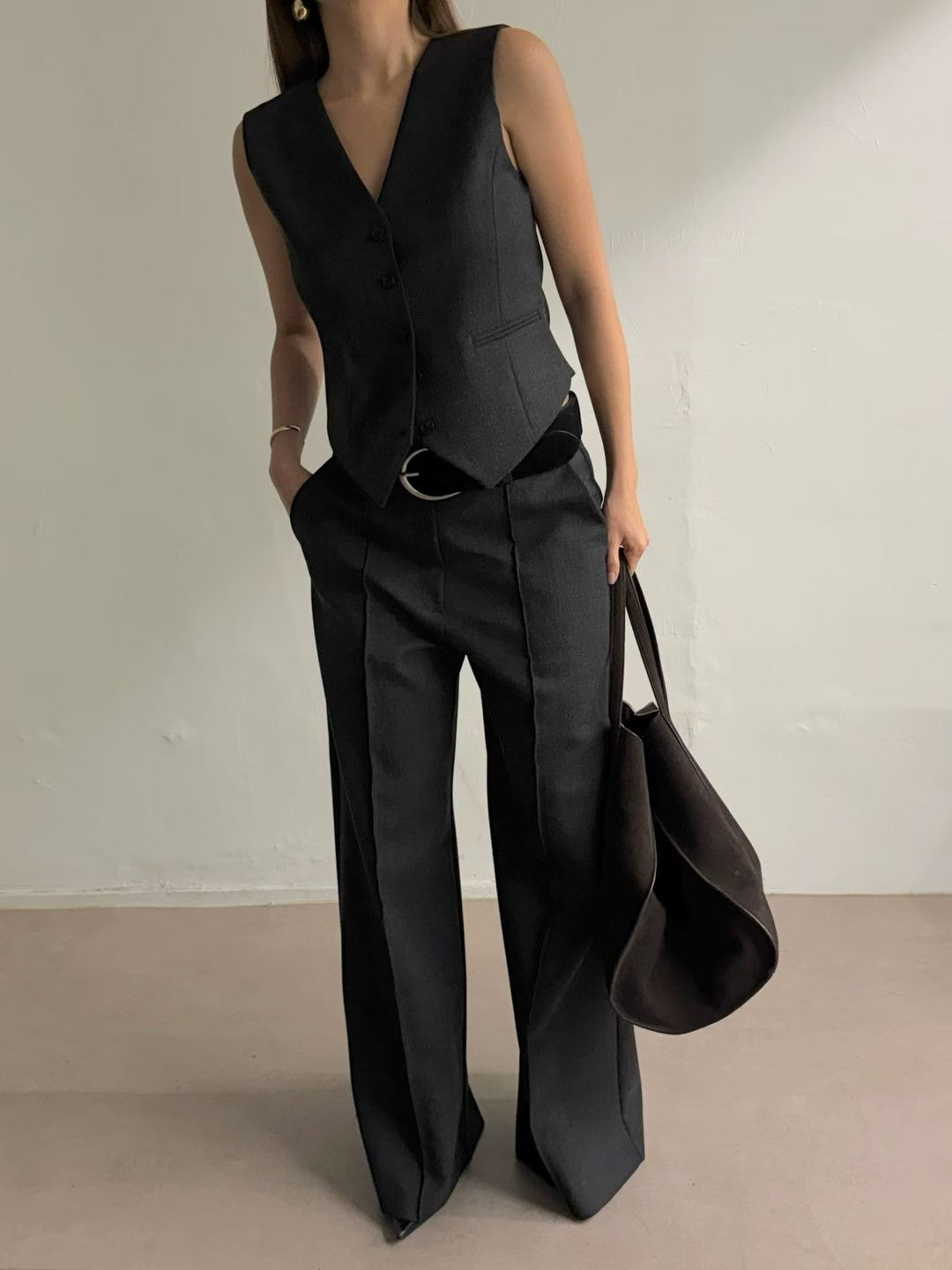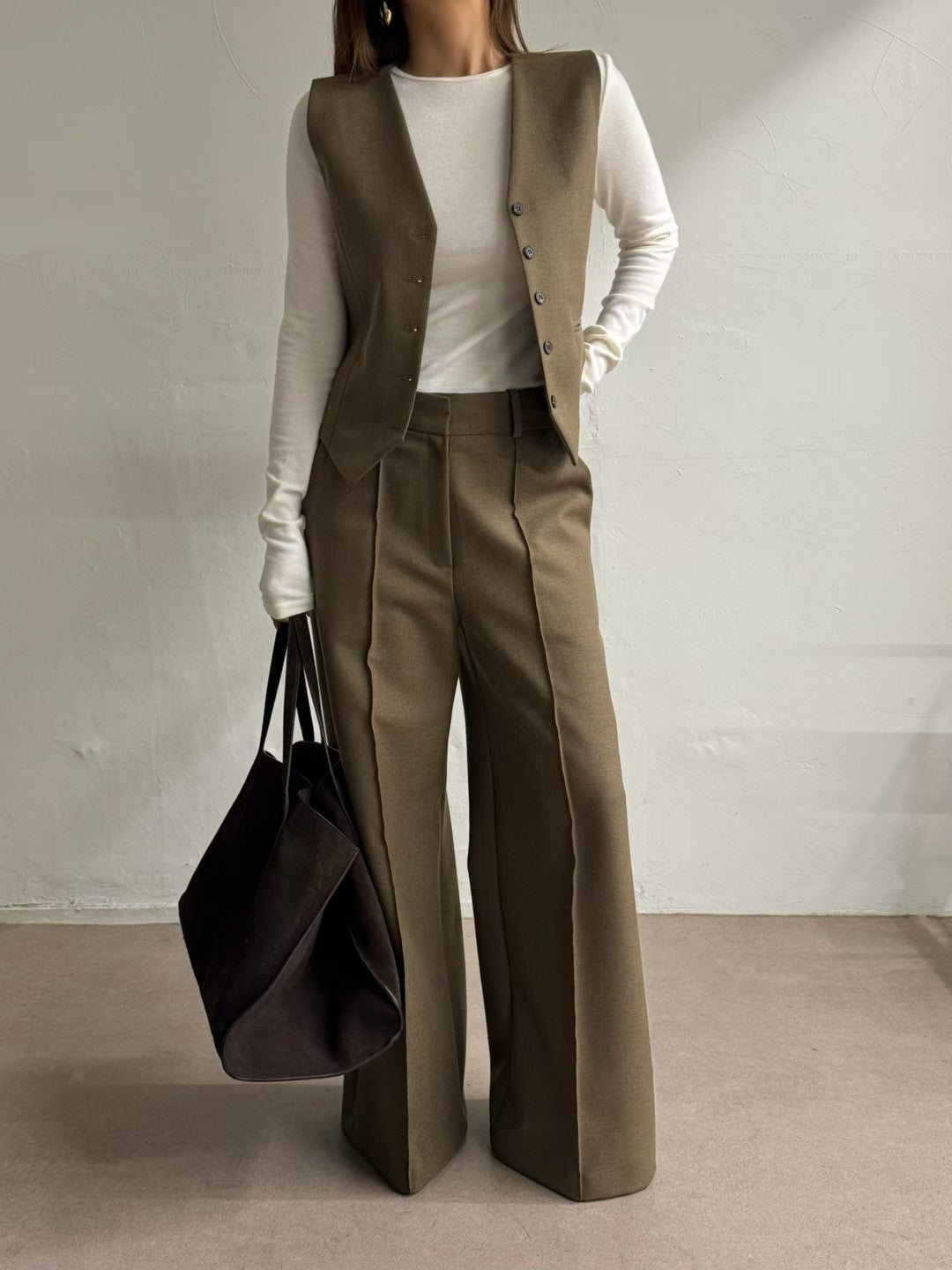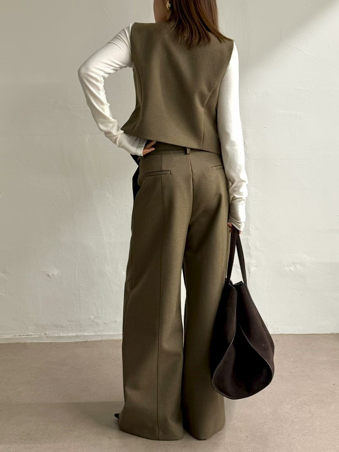 高級套裝:西裝馬甲背心 + 寬鬆直筒褲兩件套