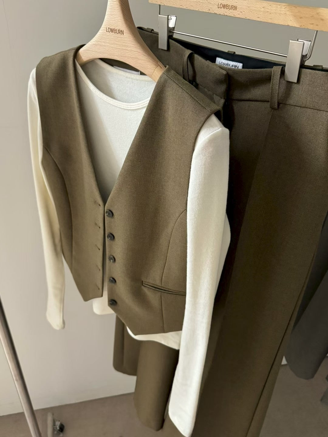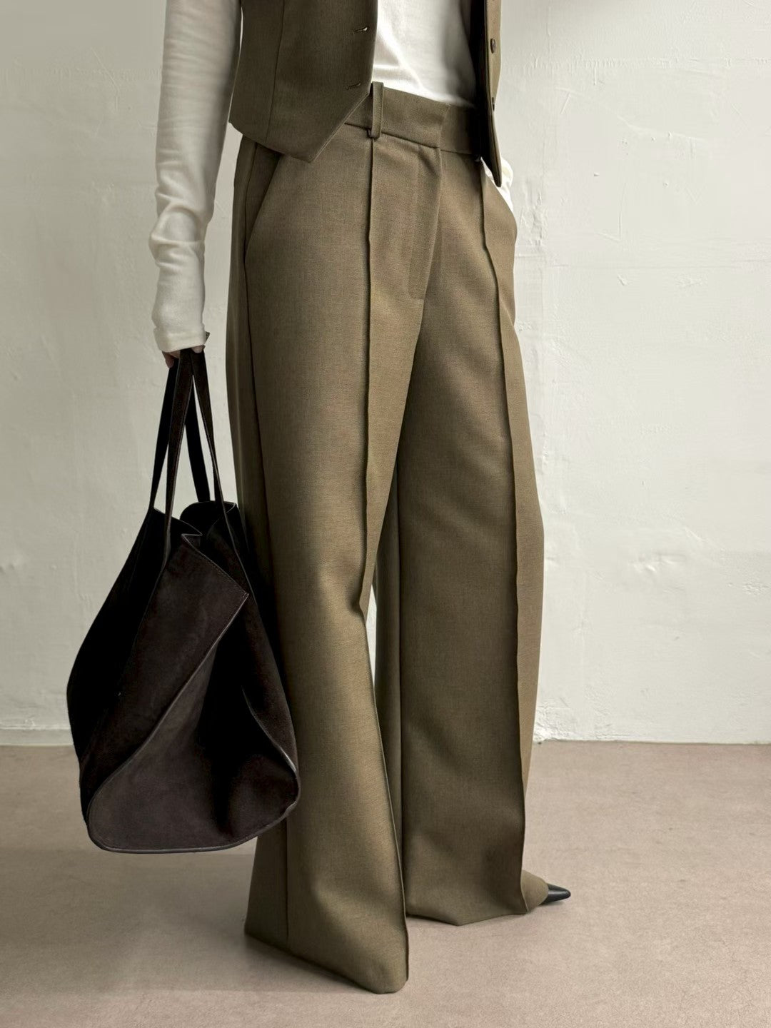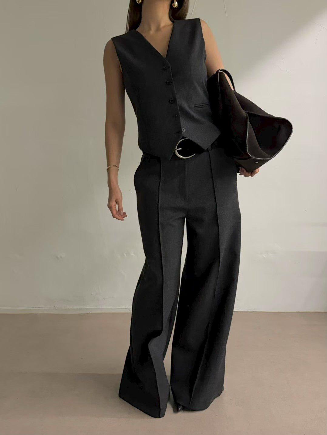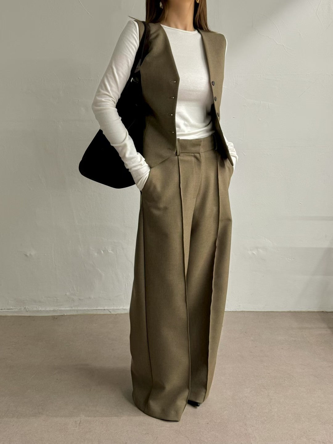 高級套裝:西裝馬甲背心 + 寬鬆直筒褲兩件套