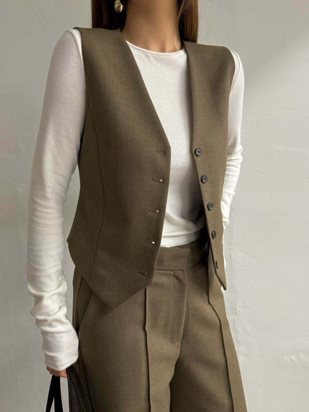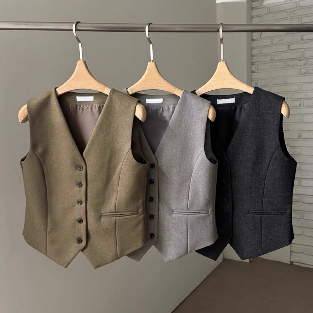 • 馬甲背心:俐落的V領剪裁和修身的設計,單穿性感優雅,內搭襯衫則專業有型。