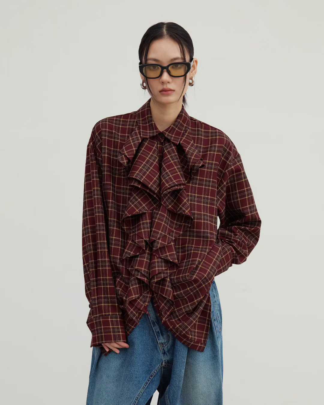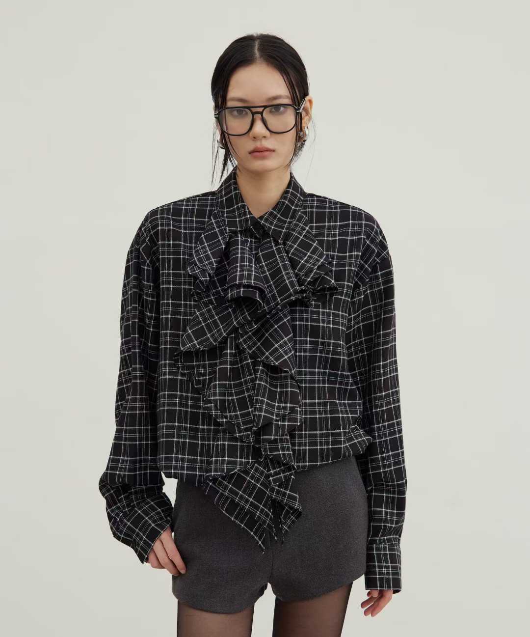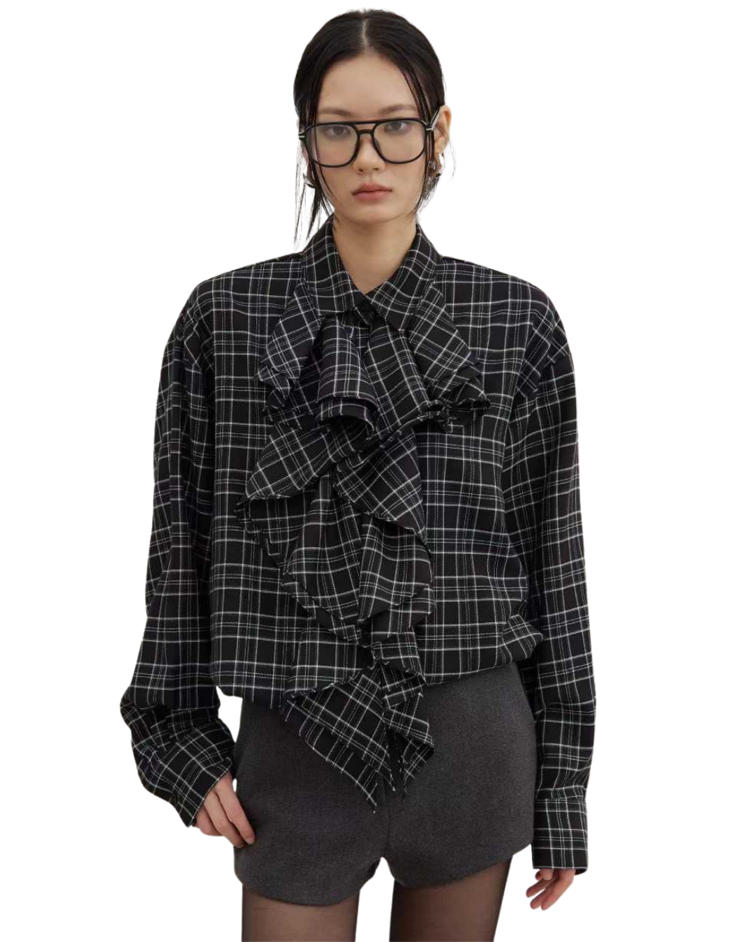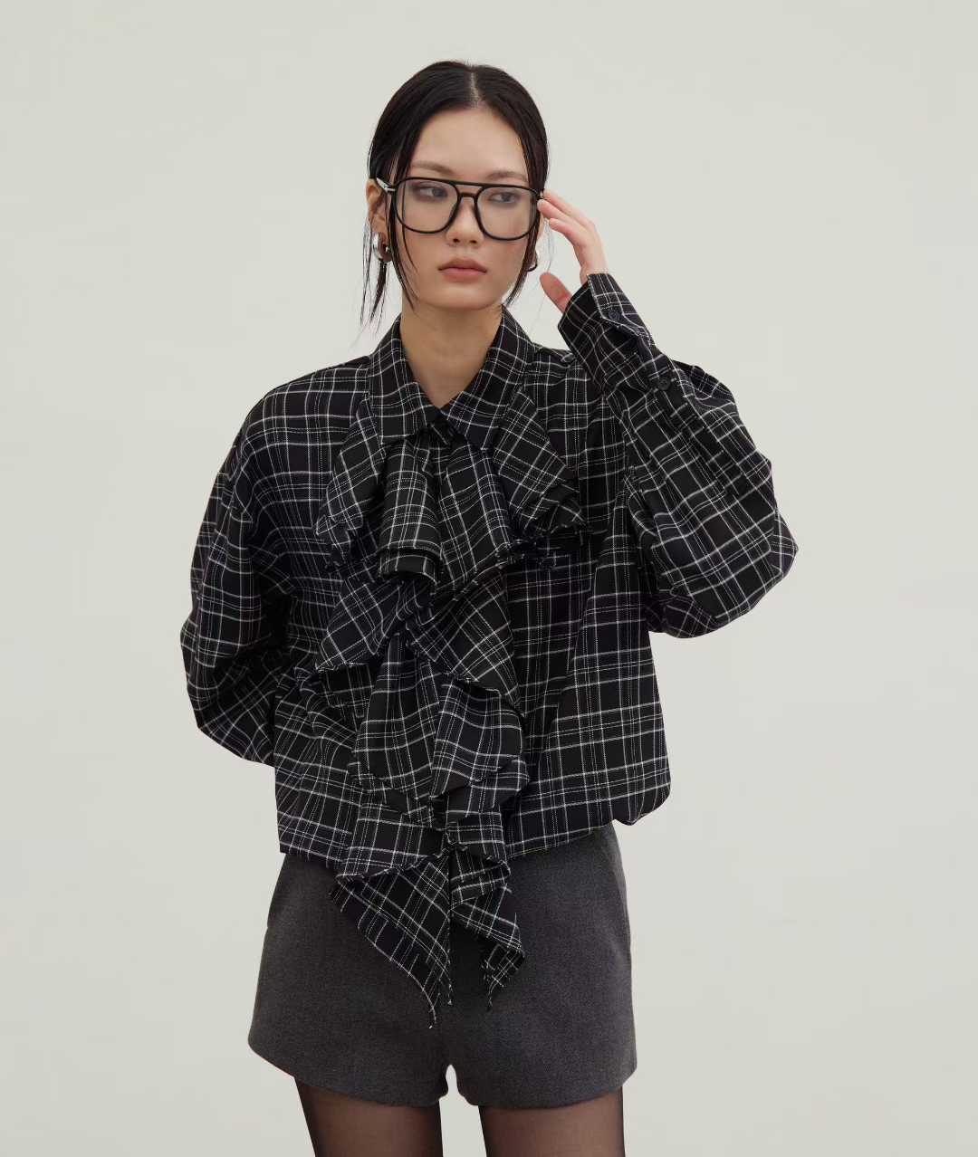 這款格紋荷葉邊襯衫是為追求法式浪漫與高調優雅的您而準備的頂級單品!它巧妙地將英倫格紋的沉穩與誇張荷葉邊的柔美融合,輕鬆打造出復古華麗的風格,絕對是您衣櫥中不可或缺的吸睛襯衫。