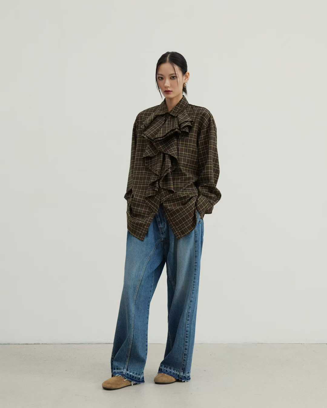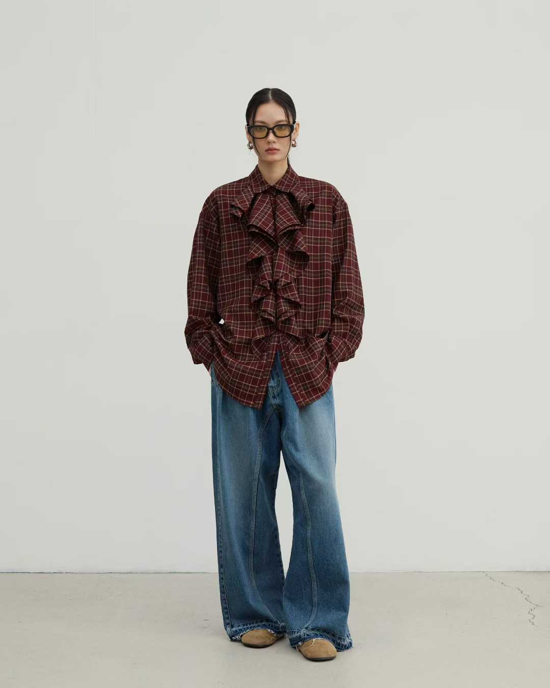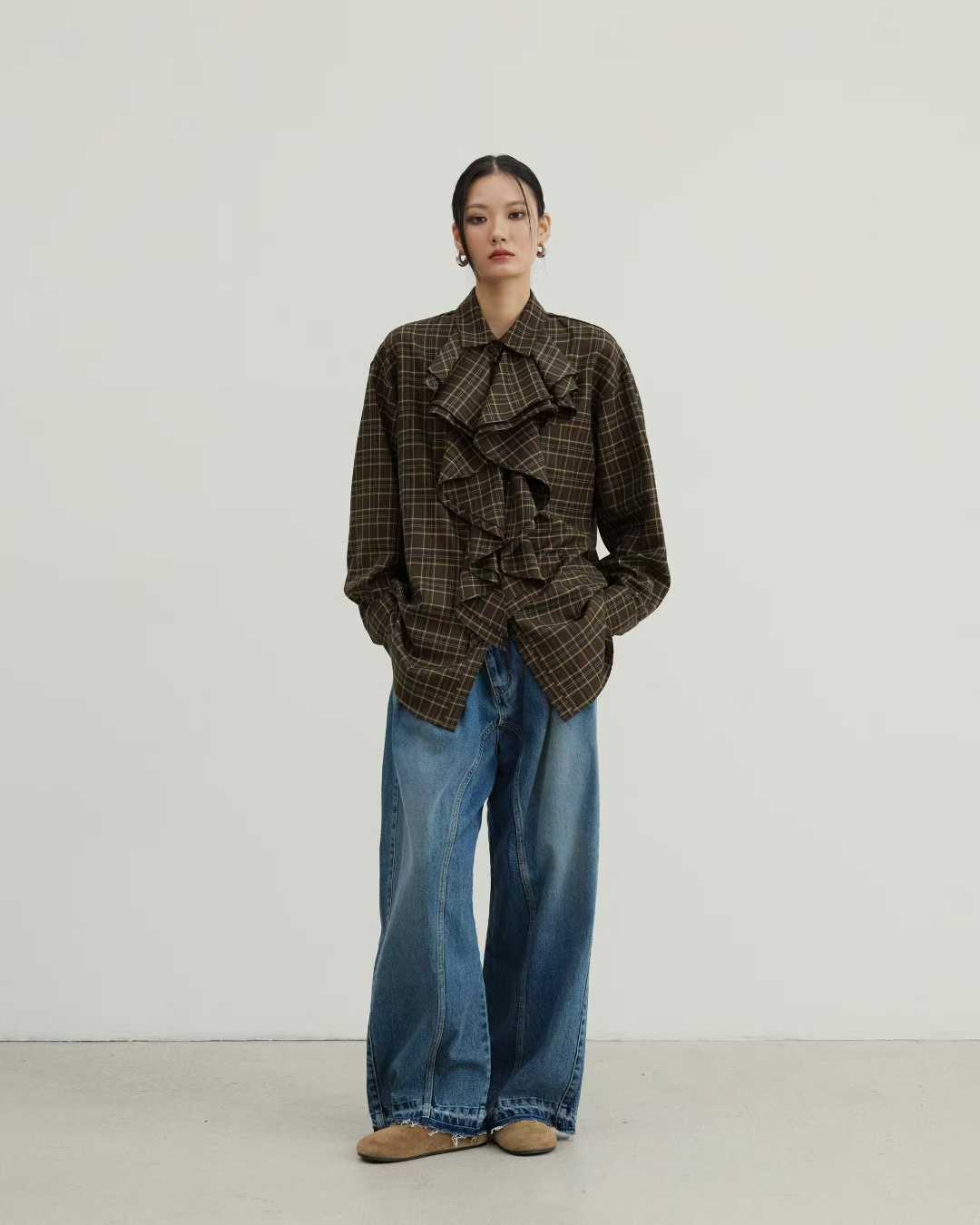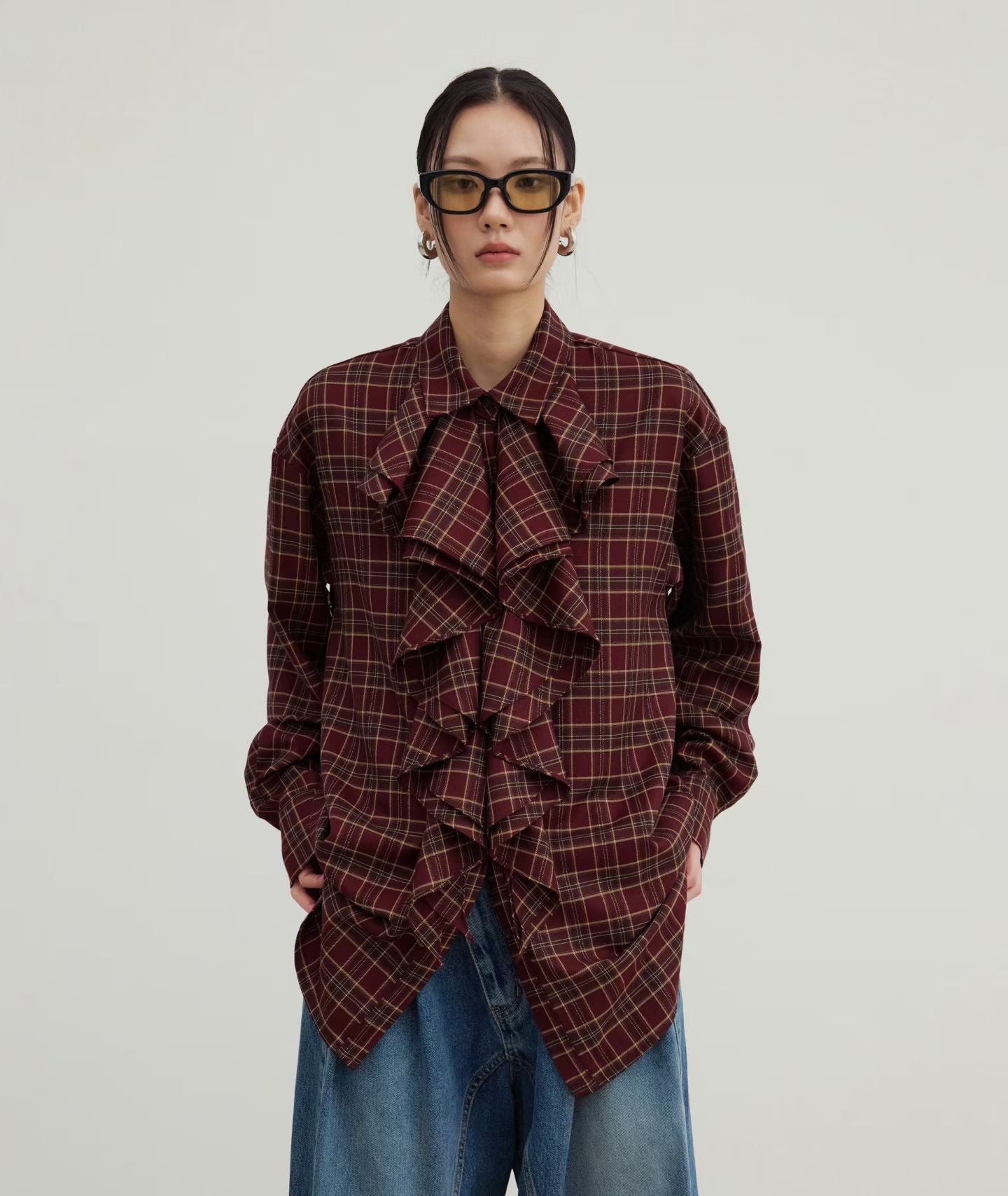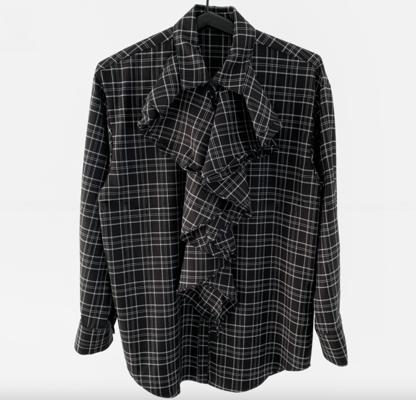 這款格紋荷葉邊襯衫是為追求法式浪漫與高調優雅的您而準備的頂級單品!它巧妙地將英倫格紋的沉穩與誇張荷葉邊的柔美融合,輕鬆打造出復古華麗的風格,絕對是您衣櫥中不可或缺的吸睛襯衫。