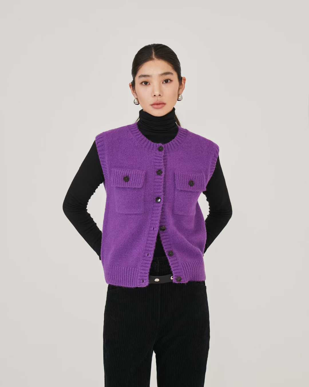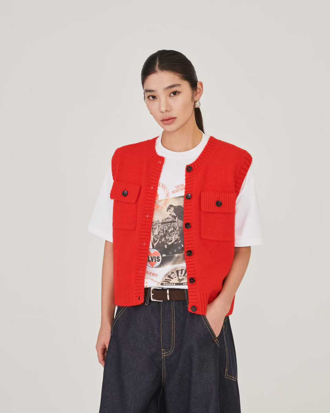 這款雙口袋針織背心是本季必備的時尚層次單品,將學院風的經典慵懶的法式復古完美結合!其搶眼的色彩與精緻的剪裁,助您輕鬆打造吸睛的高級感穿搭!