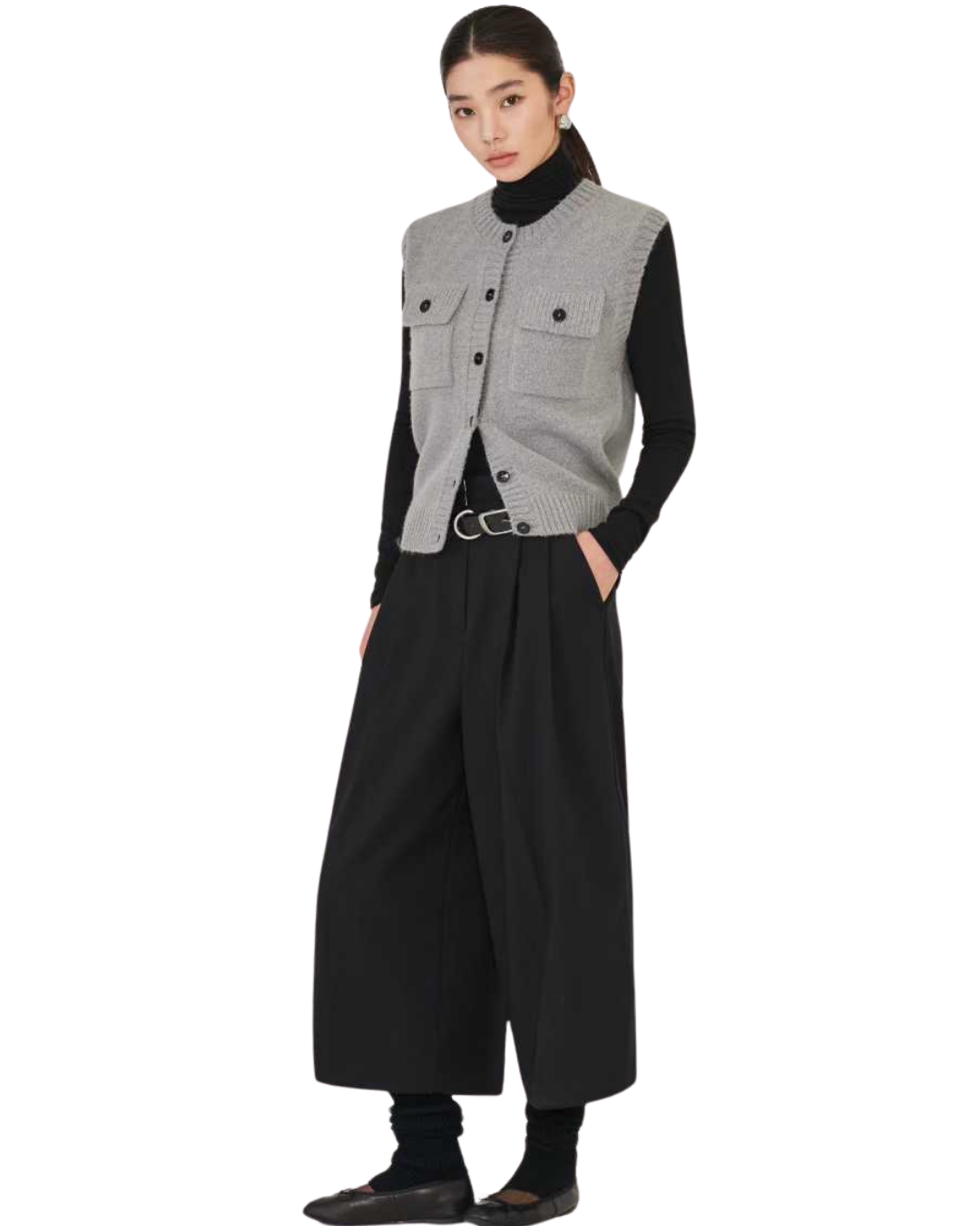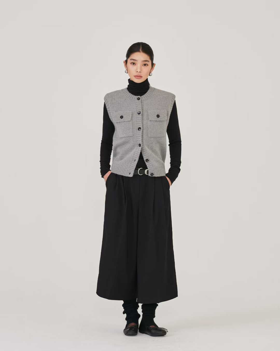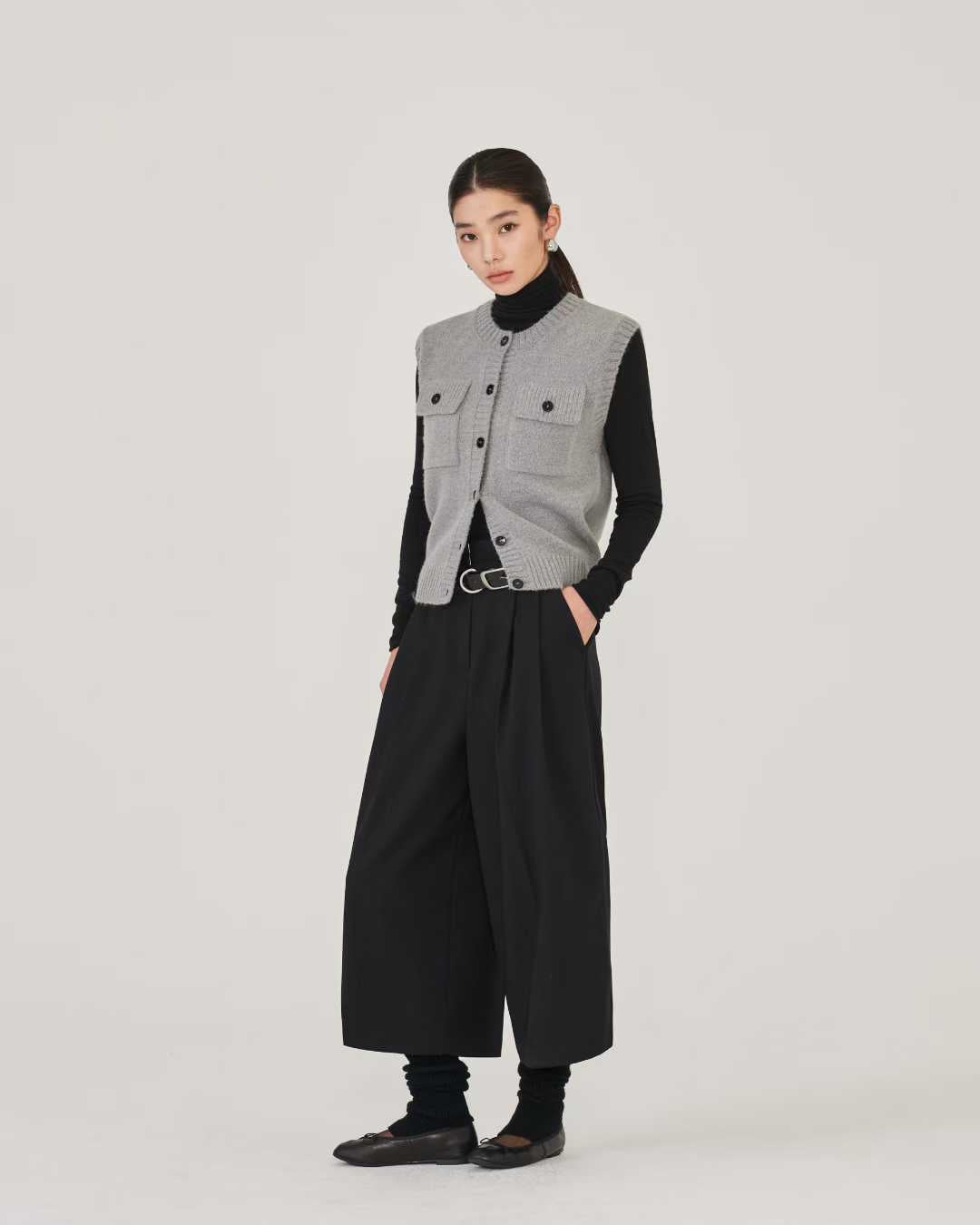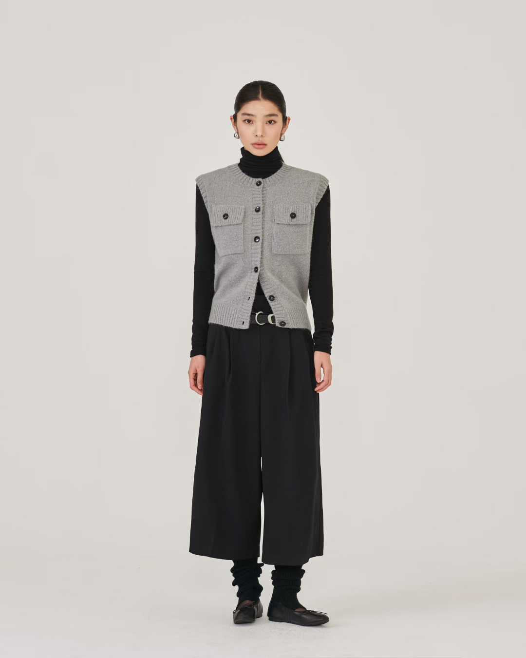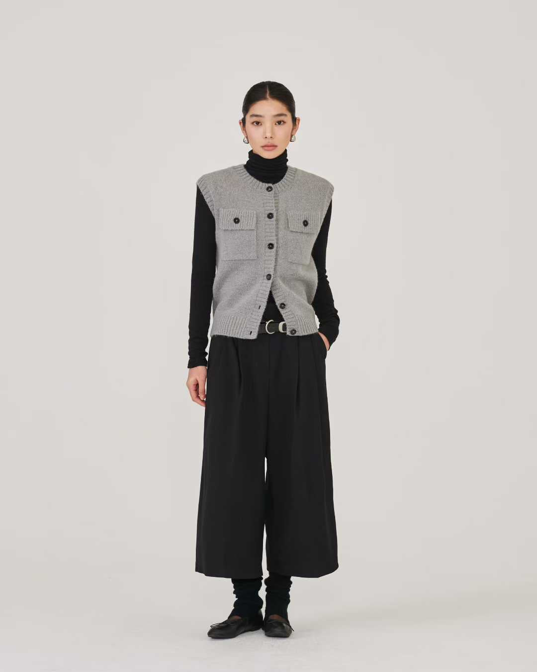TP22078- 韓國設計師款學院復古雙口袋羊毛混紡針織背心