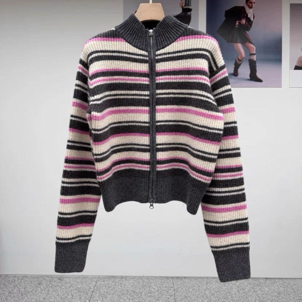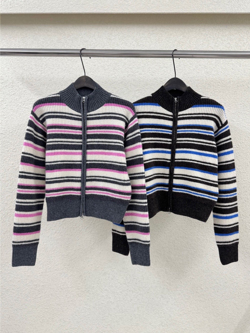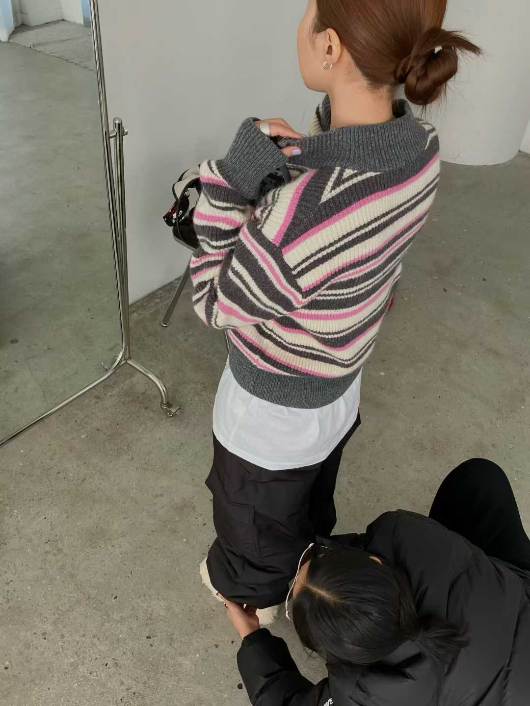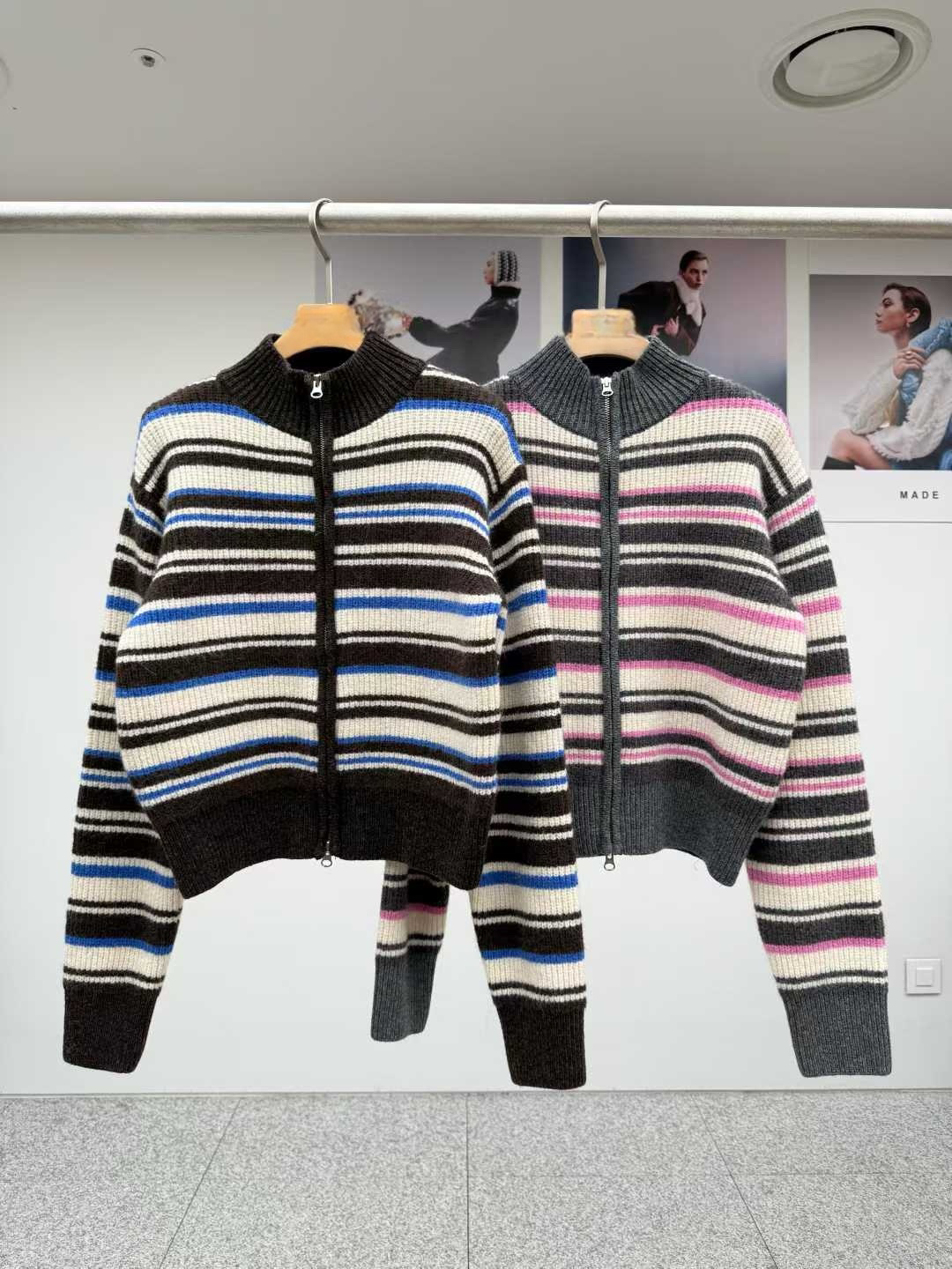 TP22080- 韓國高質感羊駝毛混紡條紋休閒針織外套