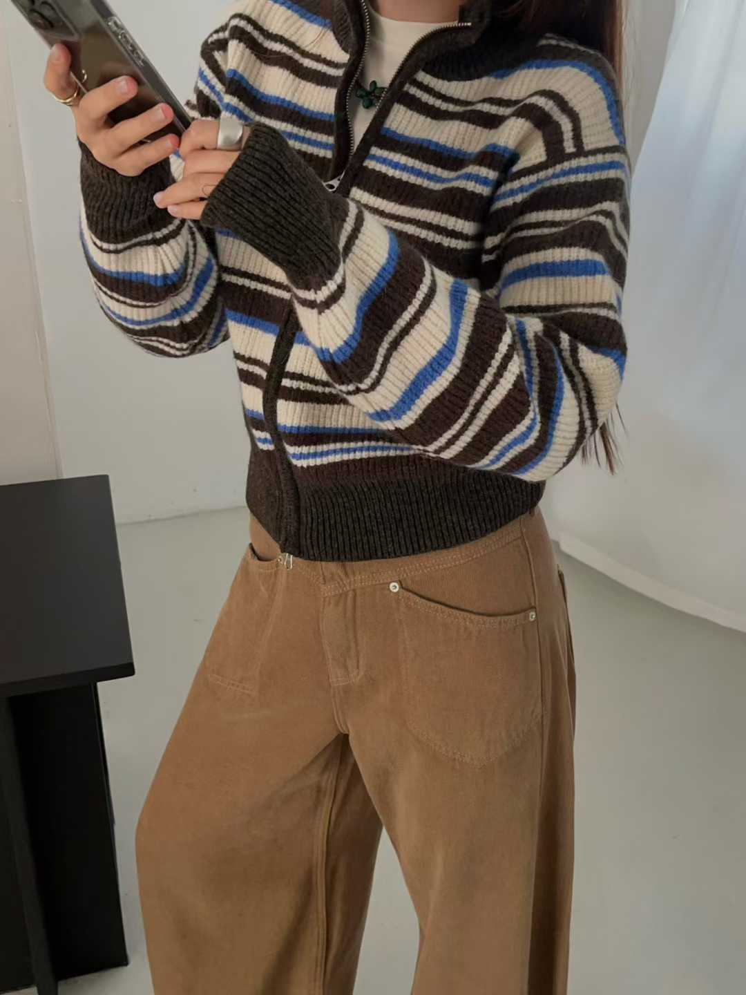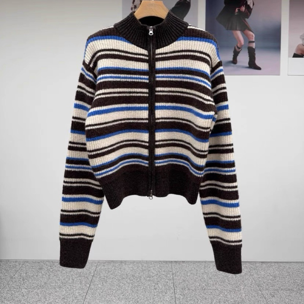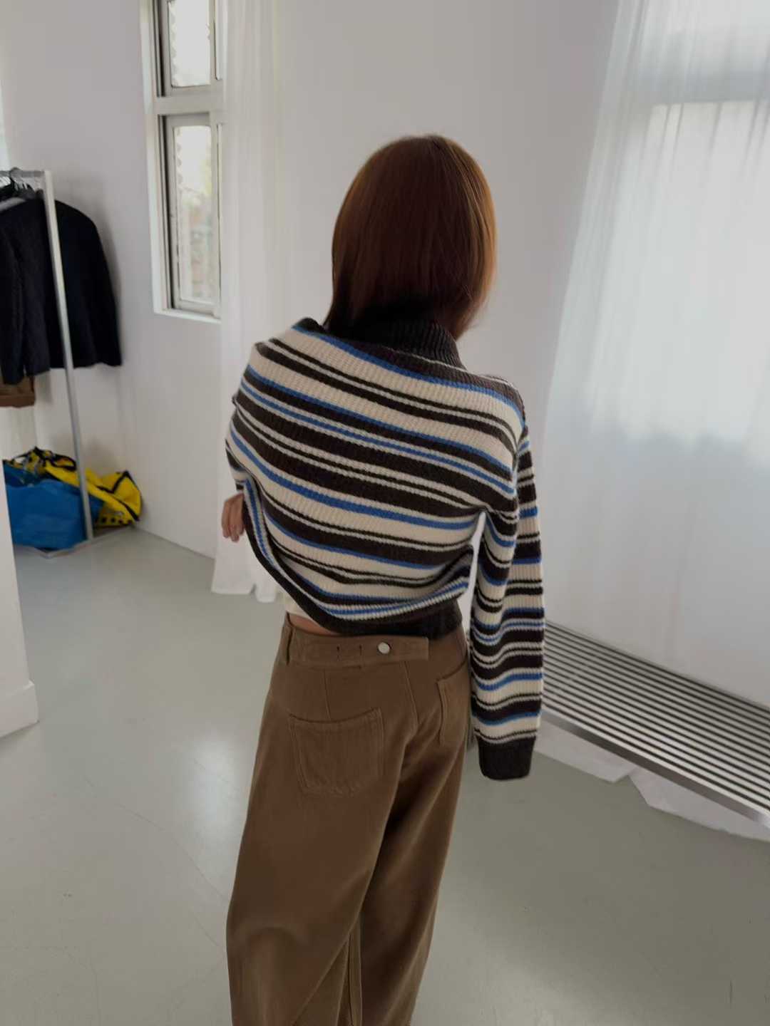 TP22080- 韓國高質感羊駝毛混紡條紋休閒針織外套