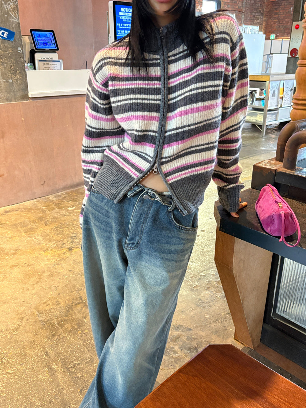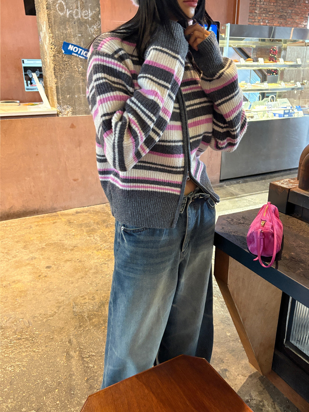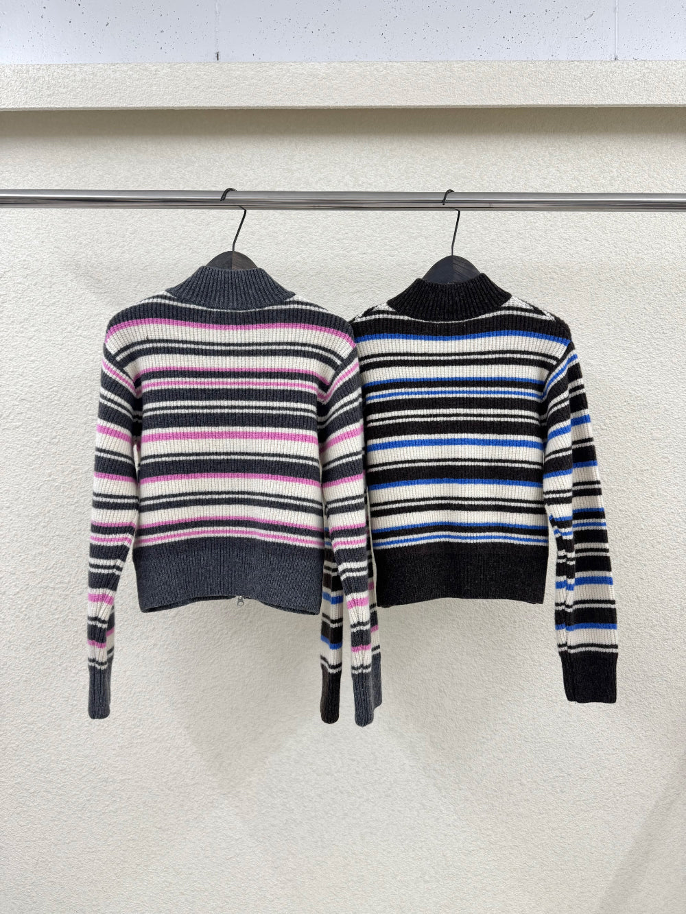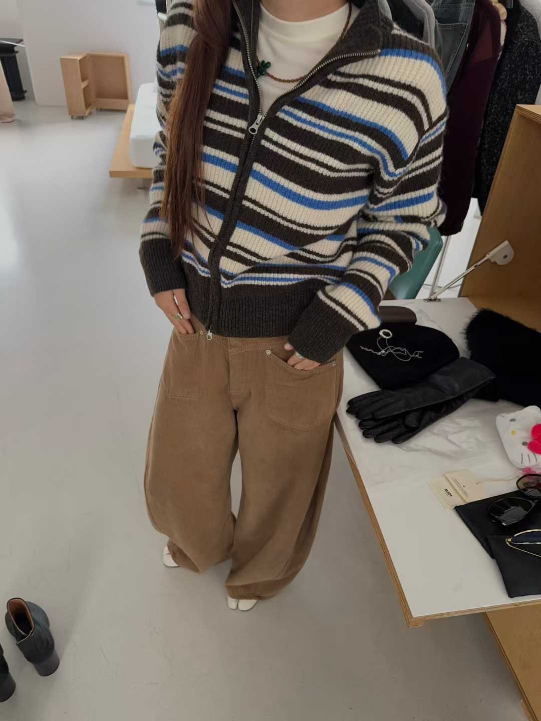 TP22080- 韓國高質感羊駝毛混紡條紋休閒針織外套