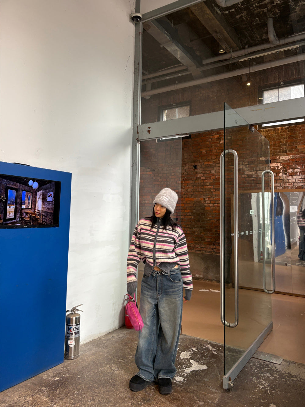 質感慵懶:羊駝毛混紡條紋休閒針織外套