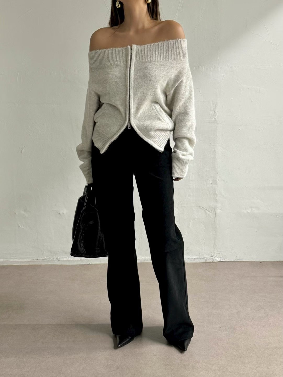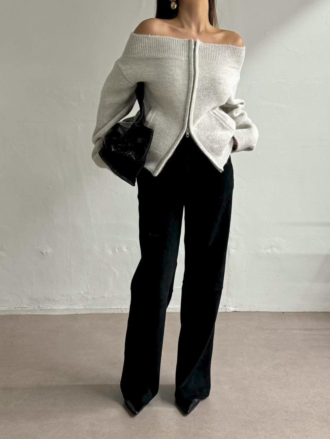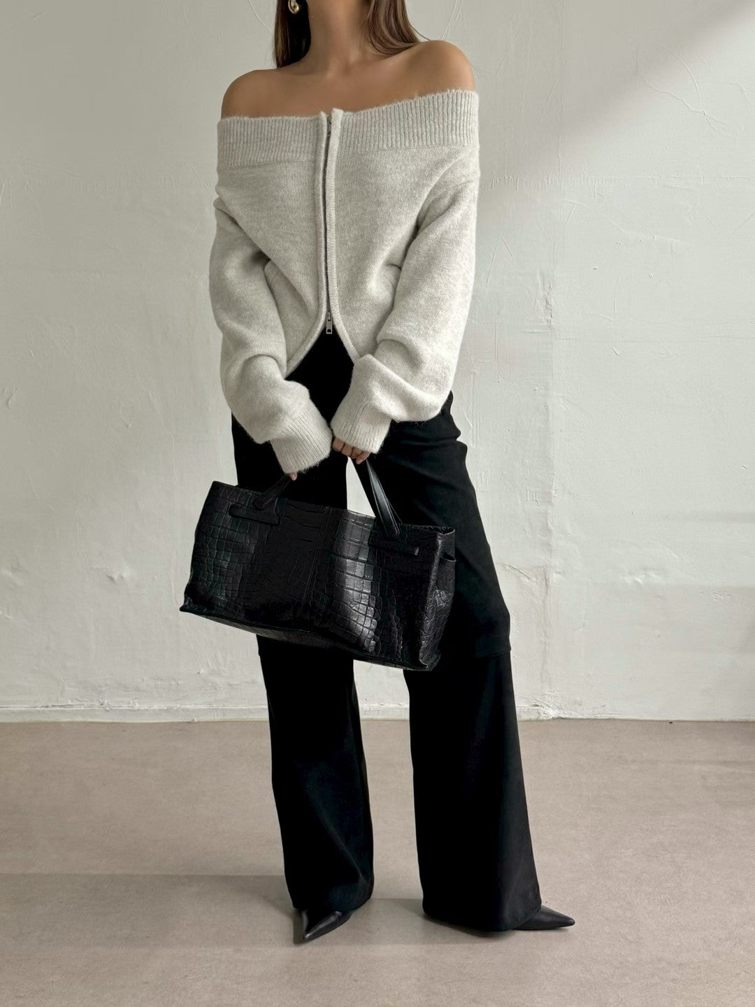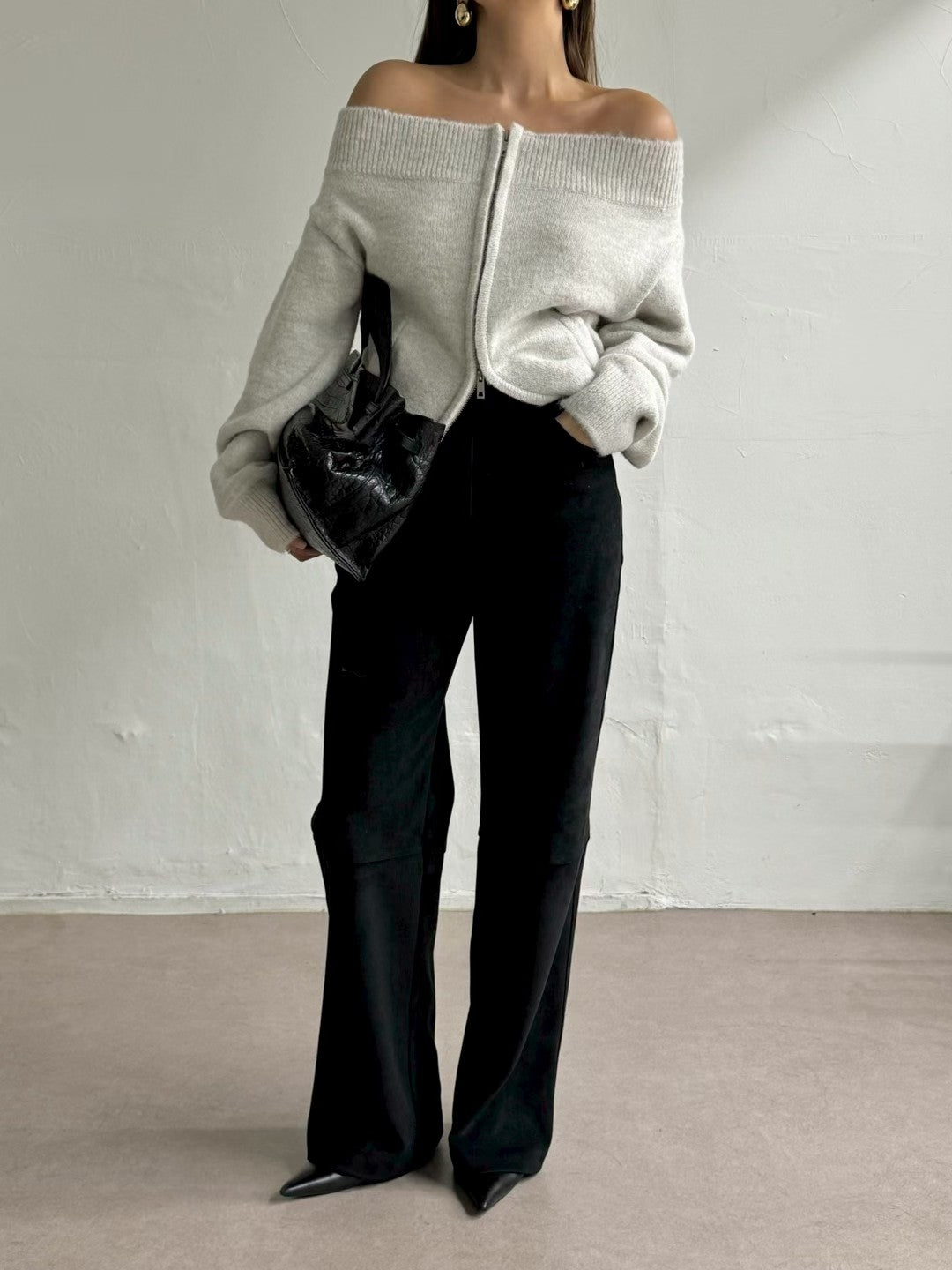 這款羊毛混紡一字領針織衫是為追求法式浪漫精緻鎖骨美學的您精心設計的秋冬柔美單品!它以獨特的一字領剪裁、柔軟的羊毛成分和寬鬆的版型,輕鬆打造溫柔且性感的穿搭。