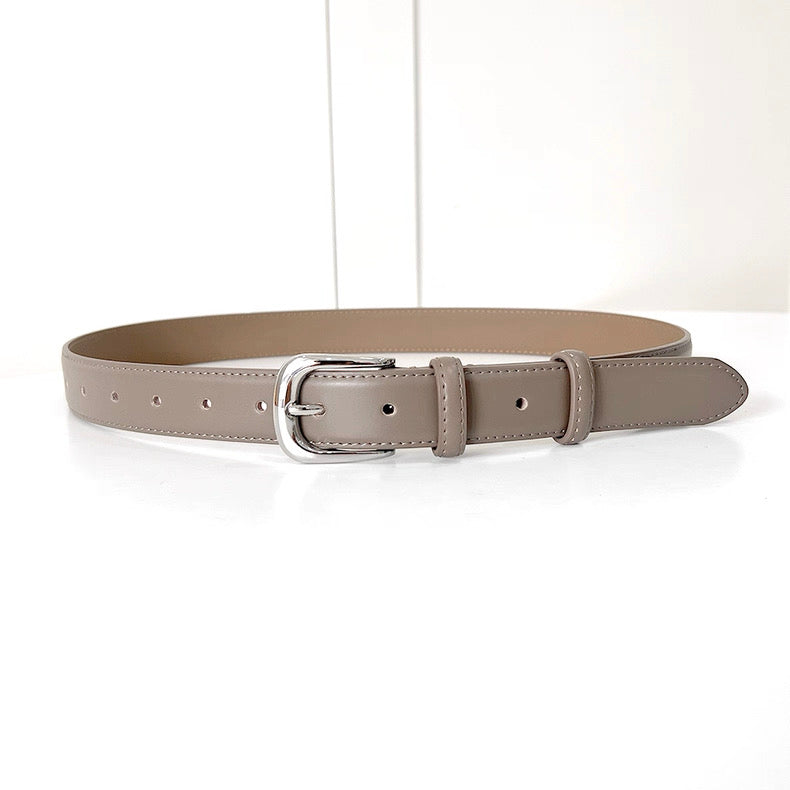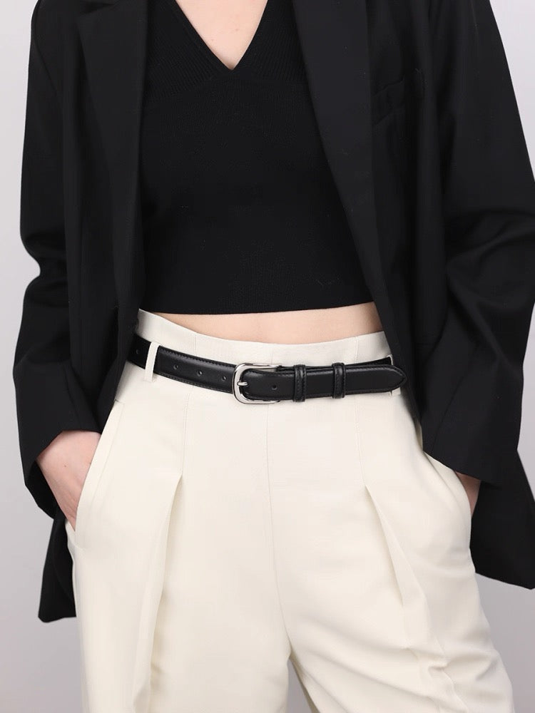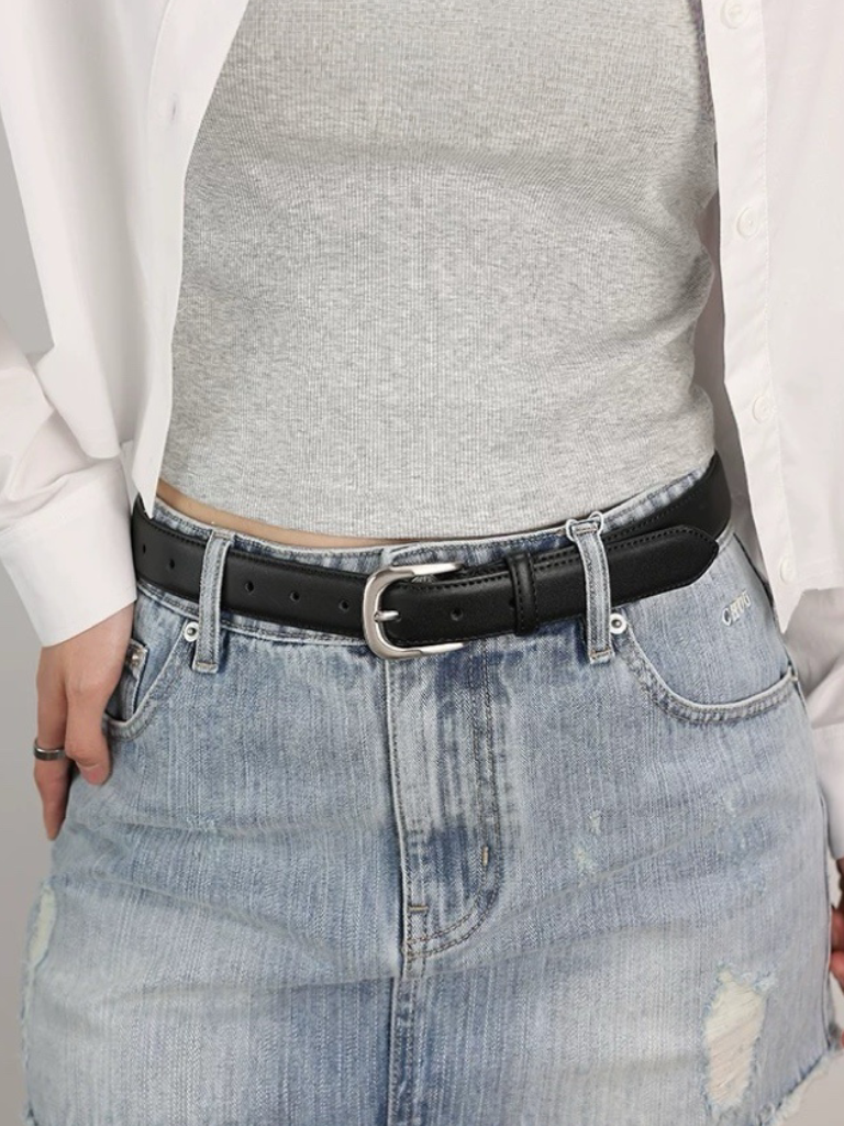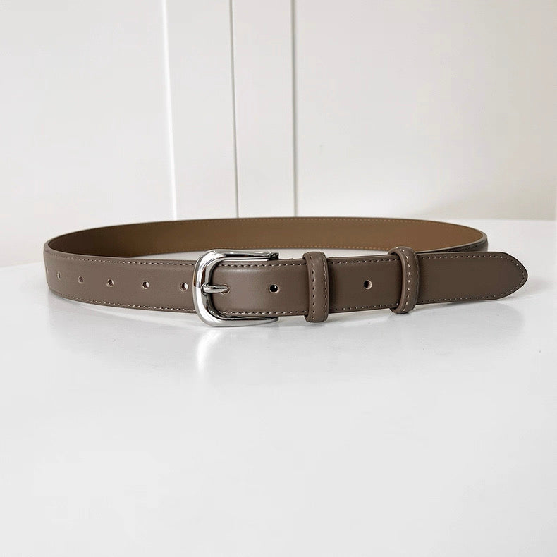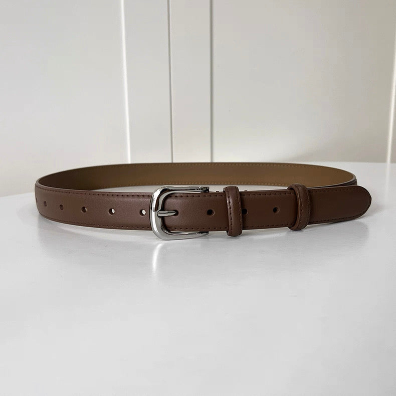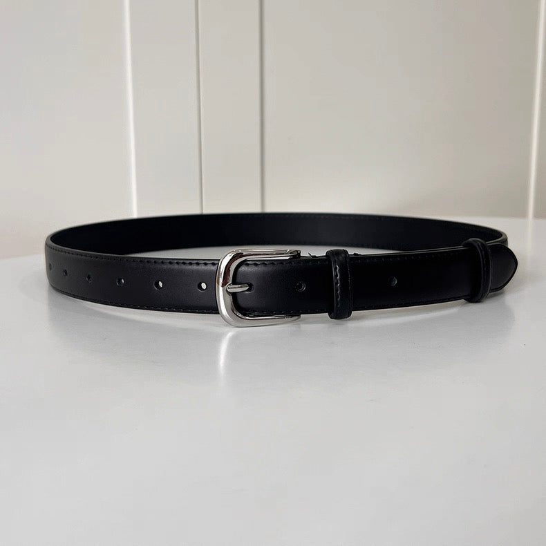極簡百搭:經典銀釦細版真牛皮皮帶