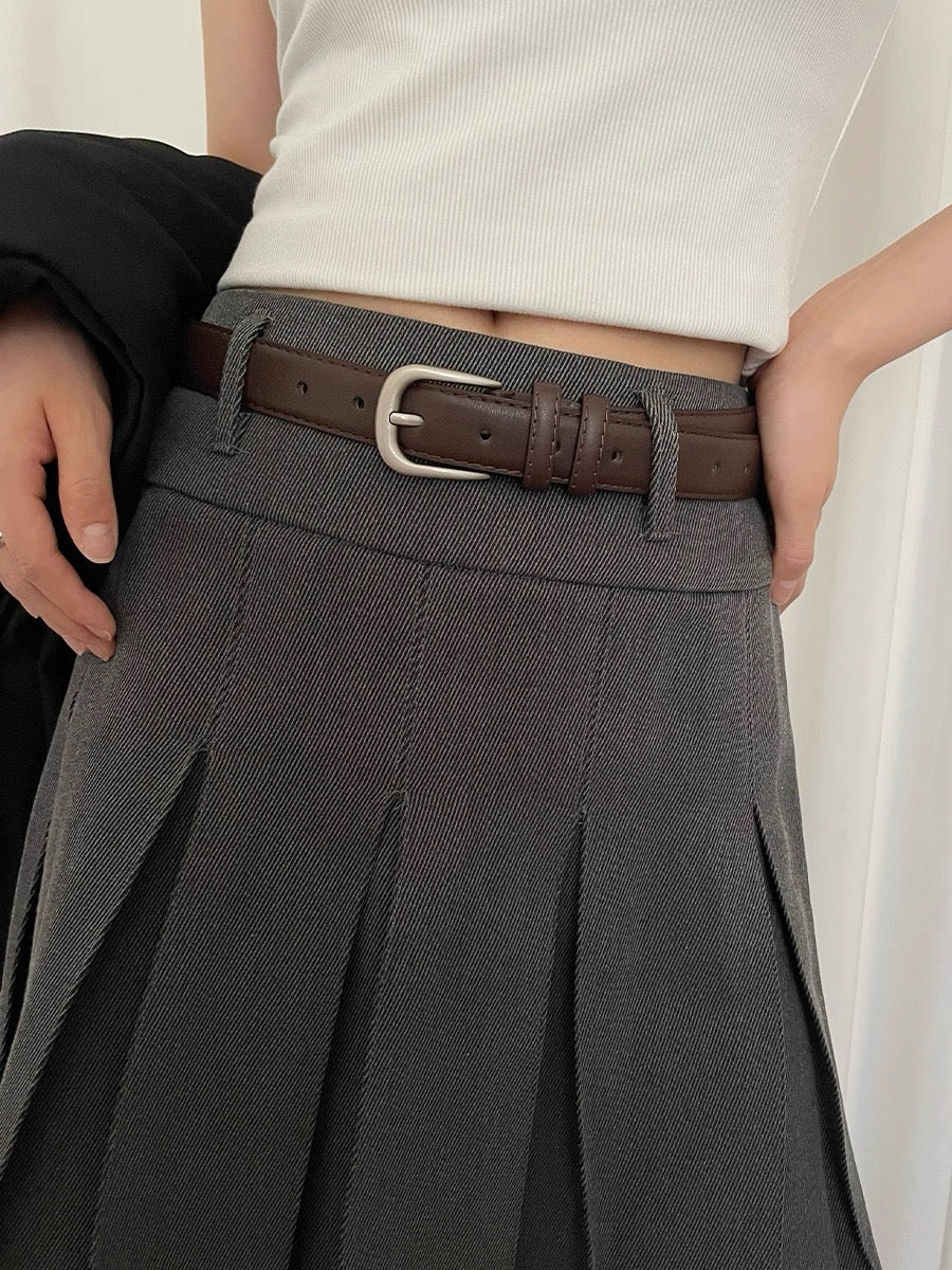 設計與風格: 這款皮帶完美體現了極簡主義的美學。無論是搭配高腰西裝褲、牛仔褲、百褶裙,或是作為收束Oversized上衣的腰封,它都能俐落突顯你的腰線。豐富的顏色選擇讓它能輕鬆搭配不同色系的服裝。