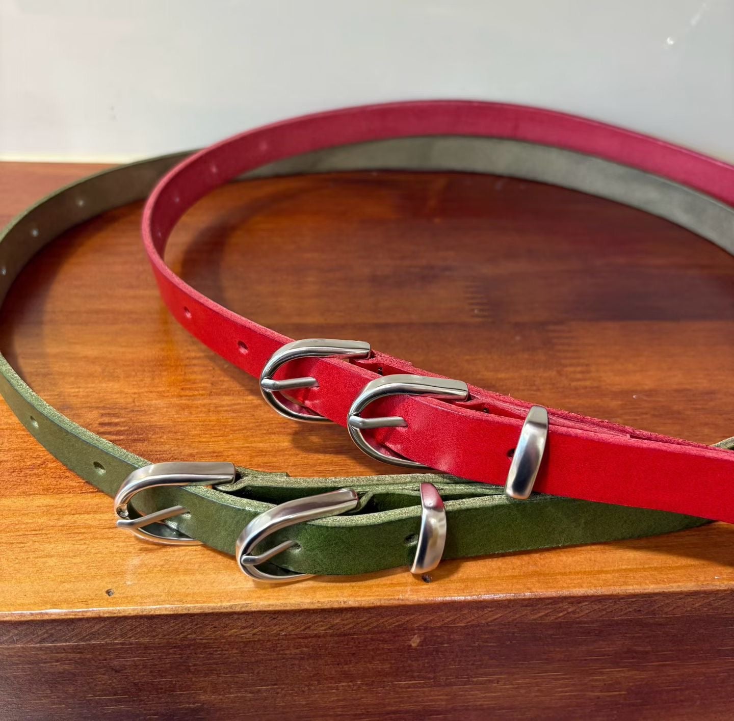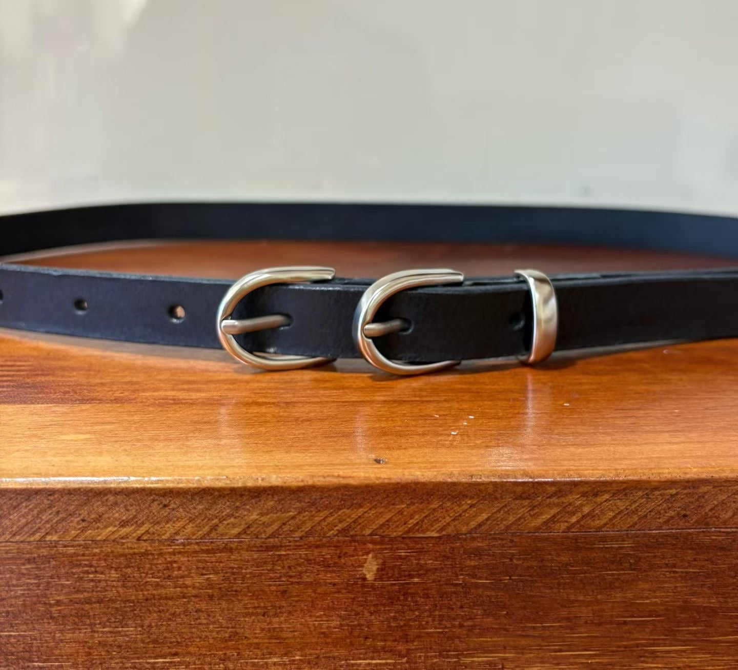 這款復古雙環頭真牛皮細版皮帶,是為追求細節與多樣化風格的你量身打造。它將經典的真皮質感與獨特的金屬雙釦設計巧妙結合,輕鬆為你的日常穿搭注入一抹亮點。