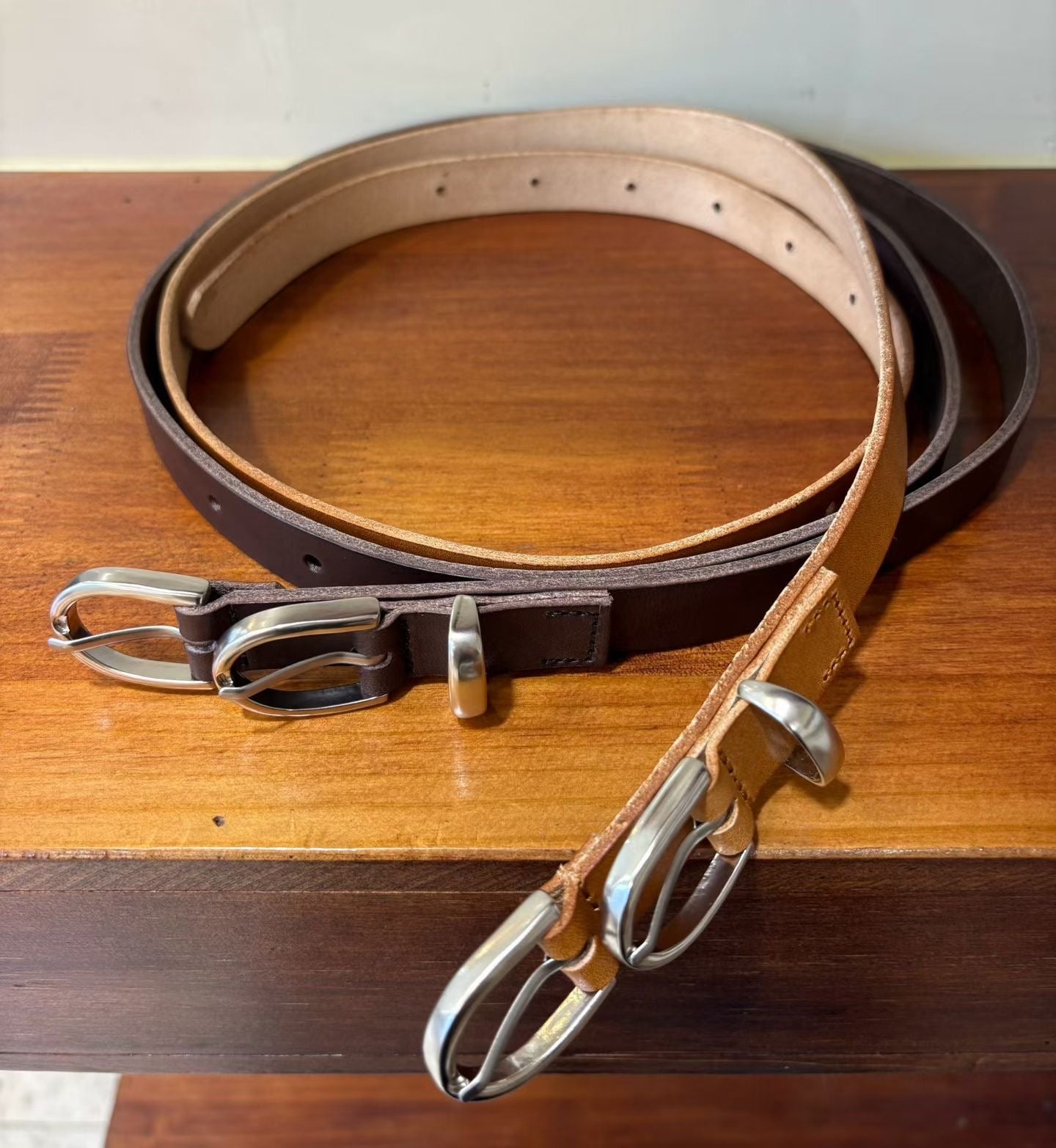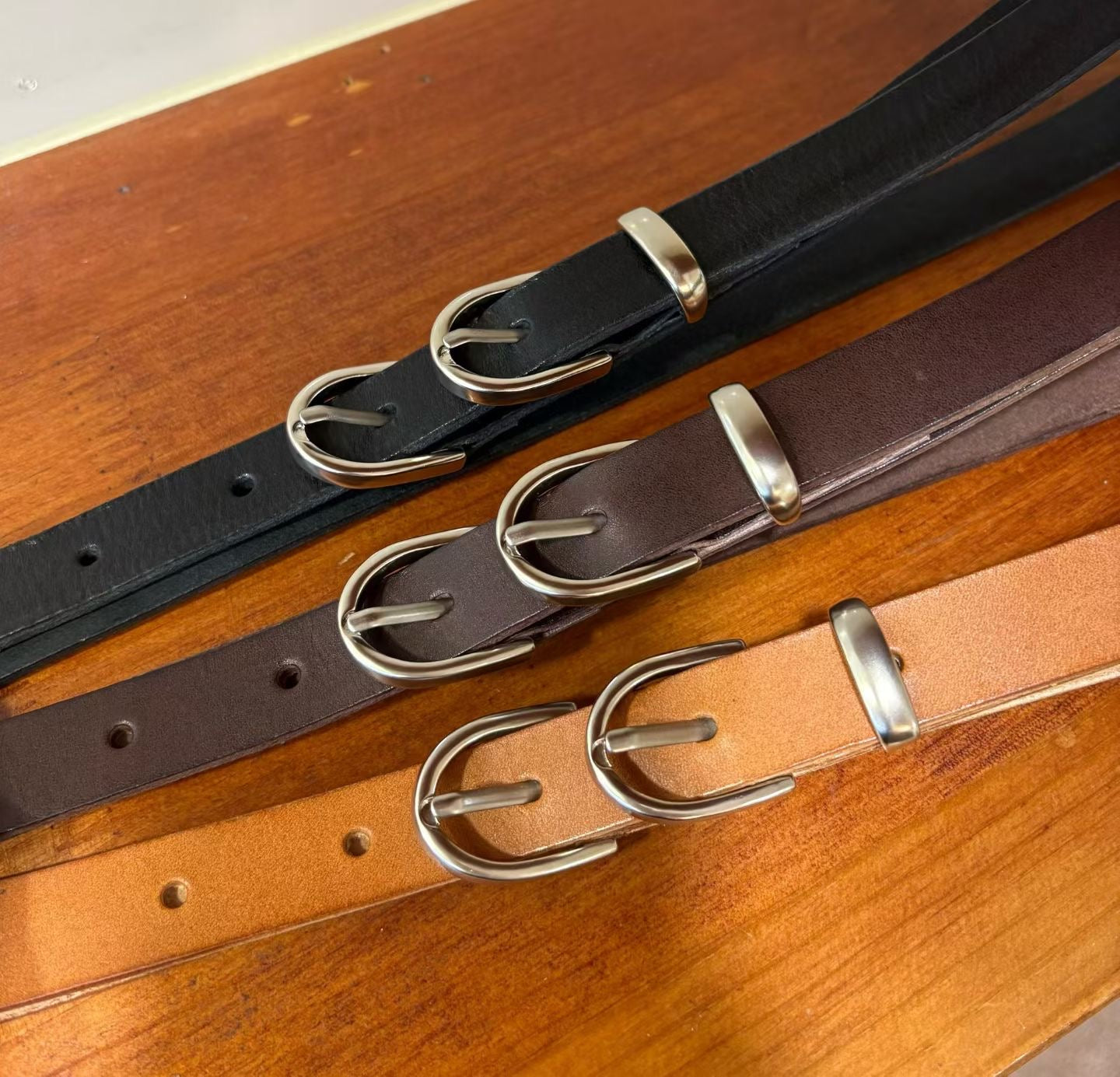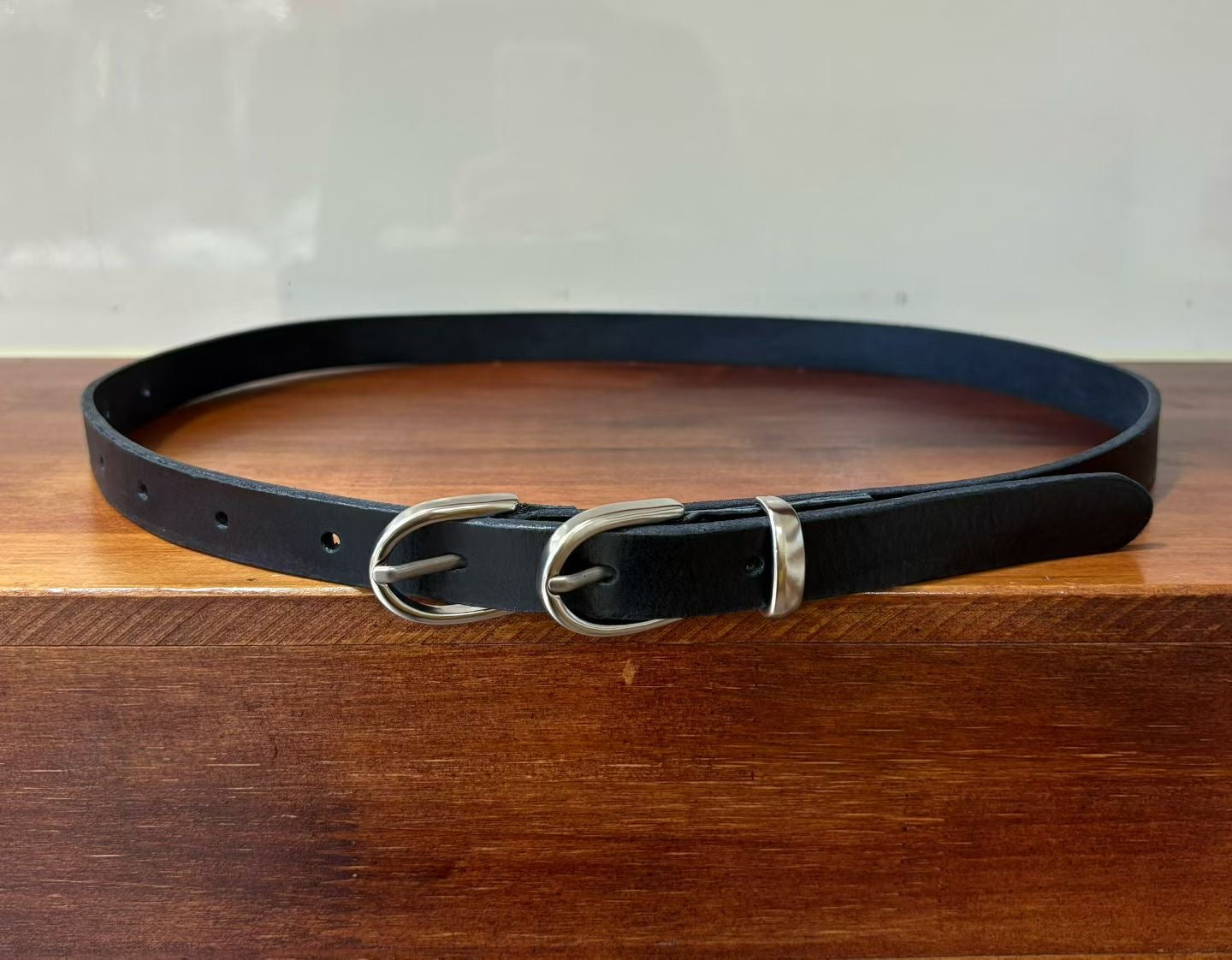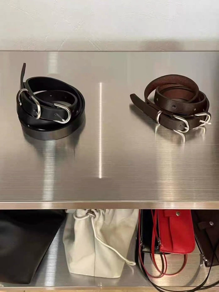 復古潮流:雙環頭真牛皮細版皮帶