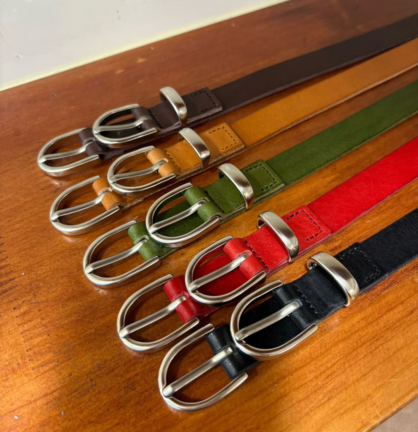 顏色與搭配: 提供經典黑、焦糖色、深棕色、亮紅色與復古卡其綠等多種豐富色彩選擇(長度約105cm),滿足你搭配不同季節與風格的需求。無論是搭配高腰牛仔褲、百褶裙,或是作為收束寬鬆外套的腰封,這條皮帶都是提升造型層次感的完美配件。