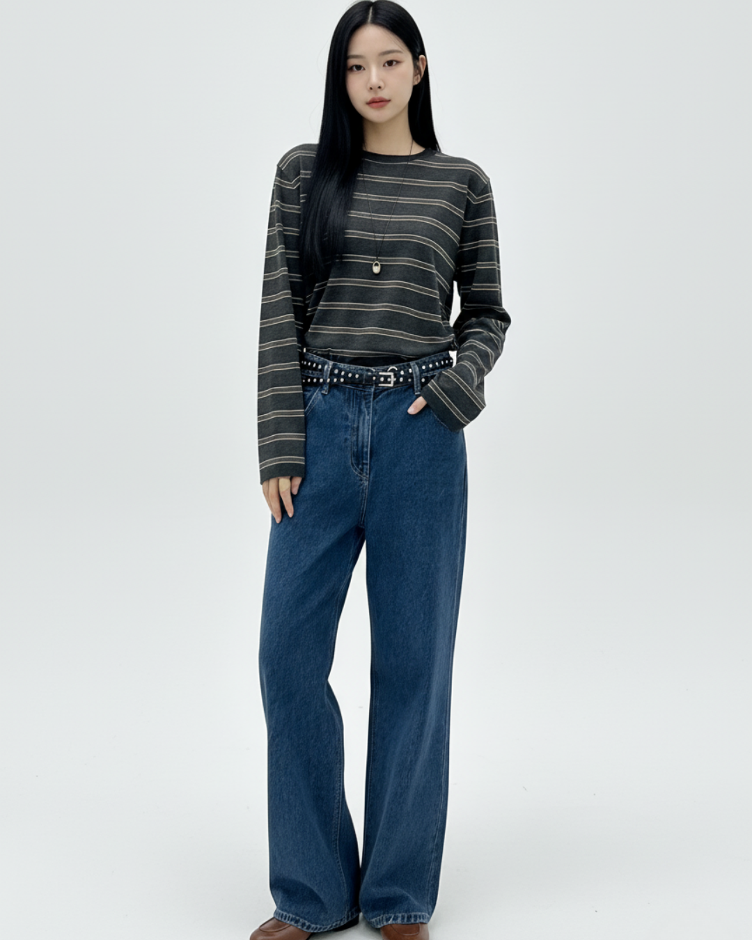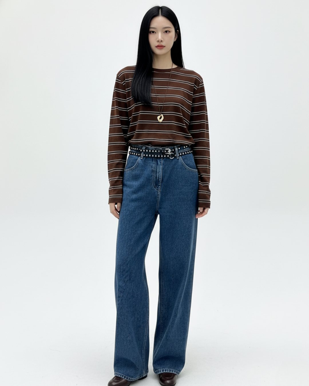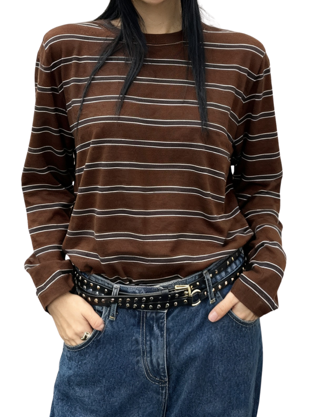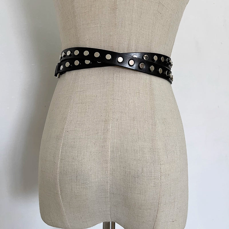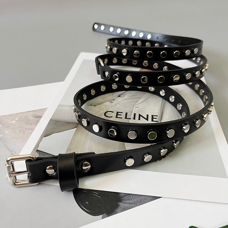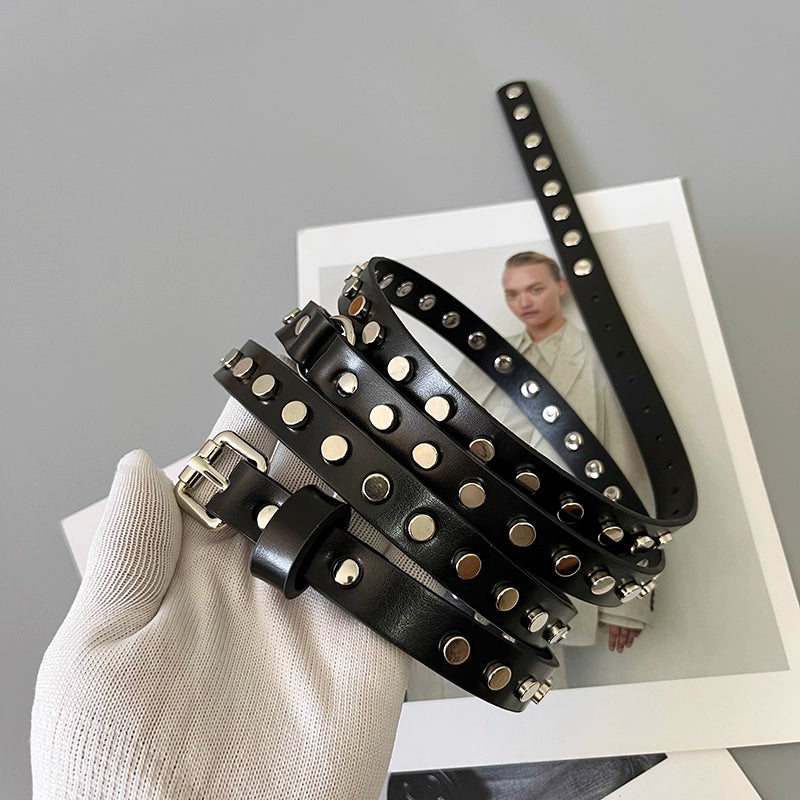 AC22062- 型格鉚釘真牛皮細版長腰帶