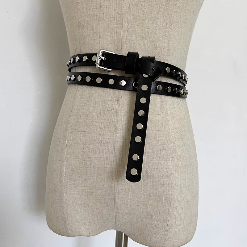 這款頂級真牛皮鉚釘細版長腰帶,專為追求前衛、個性風格的您而生。它以密集的銀色鉚釘和極致纖長的設計,完美詮釋了叛逆不羈的搖滾精神與頂尖街頭時尚,是您打造獨特造型、彰顯個人態度的必備單品!