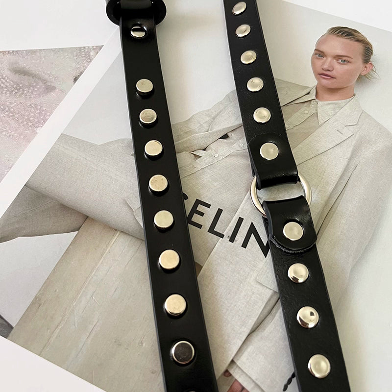 皮帶採用優質100%牛皮製作,皮質光滑、柔軟且堅韌,提供絕佳的質感保證。搭配閃耀的銀色鉚釘裝飾,質感與視覺衝擊力兼具。寬度僅1.7公分,極致纖細的設計更顯精緻,而長達180公分的超長尺寸,提供無限的創意繫法。無論是繞腰多圈、隨性垂墜,或是作為大衣或西裝外套的個性腰飾,都能瞬間提升造型的多層次感。經典黑色更是永恆不敗的選擇,輕鬆駕馭各種場合。立即擁有這條充滿態度的鉚釘長腰帶,以無懈可擊的細節,定義您的專屬風格與自信。