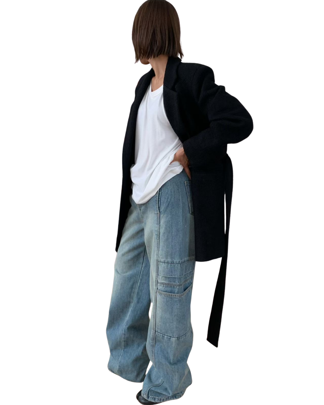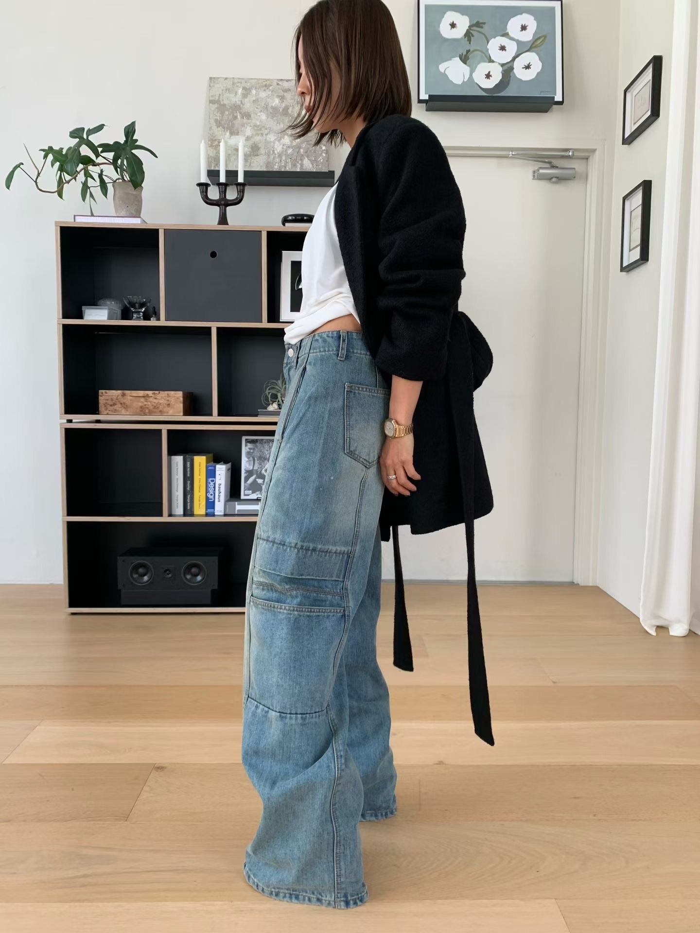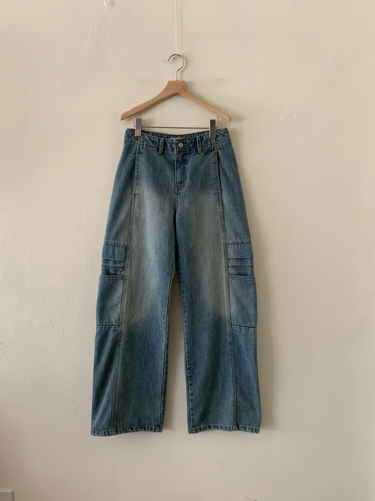 這款寬鬆工裝風牛仔闊腿褲,完美結合了復古丹寧的隨性與工裝機能的細節,是本季打造街頭潮流風格的絕佳單品。它專為追求舒適、個性與顯瘦效果的你而設計。