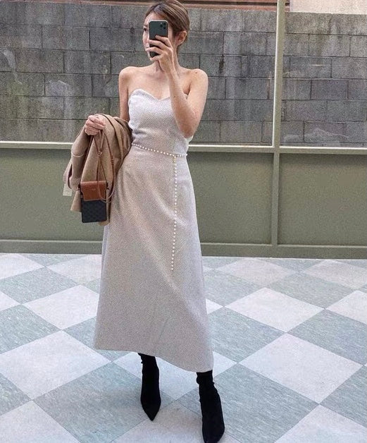 現在就擁有這款心形領抹胸長裙,以優雅的剪裁與質感,定義你的秋冬風格。