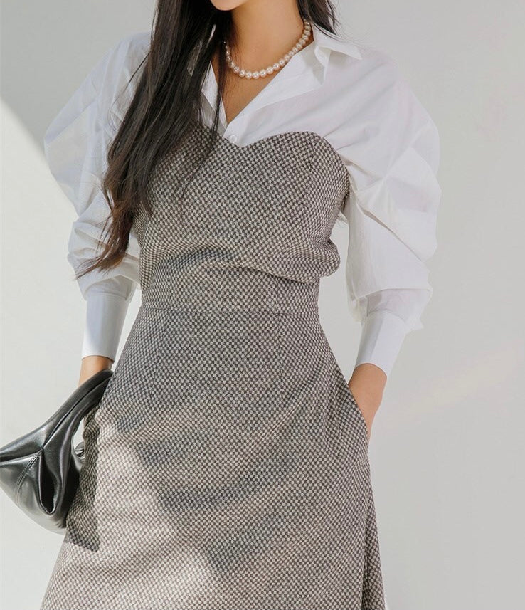 這款復古心形領抹胸連衣裙,專為追求極致女性氣質與優雅身形的你而設計。它將經典的格紋(或千鳥格紋)圖案與浪漫的心形領口完美結合,輕鬆穿出秋冬的知性高級感。