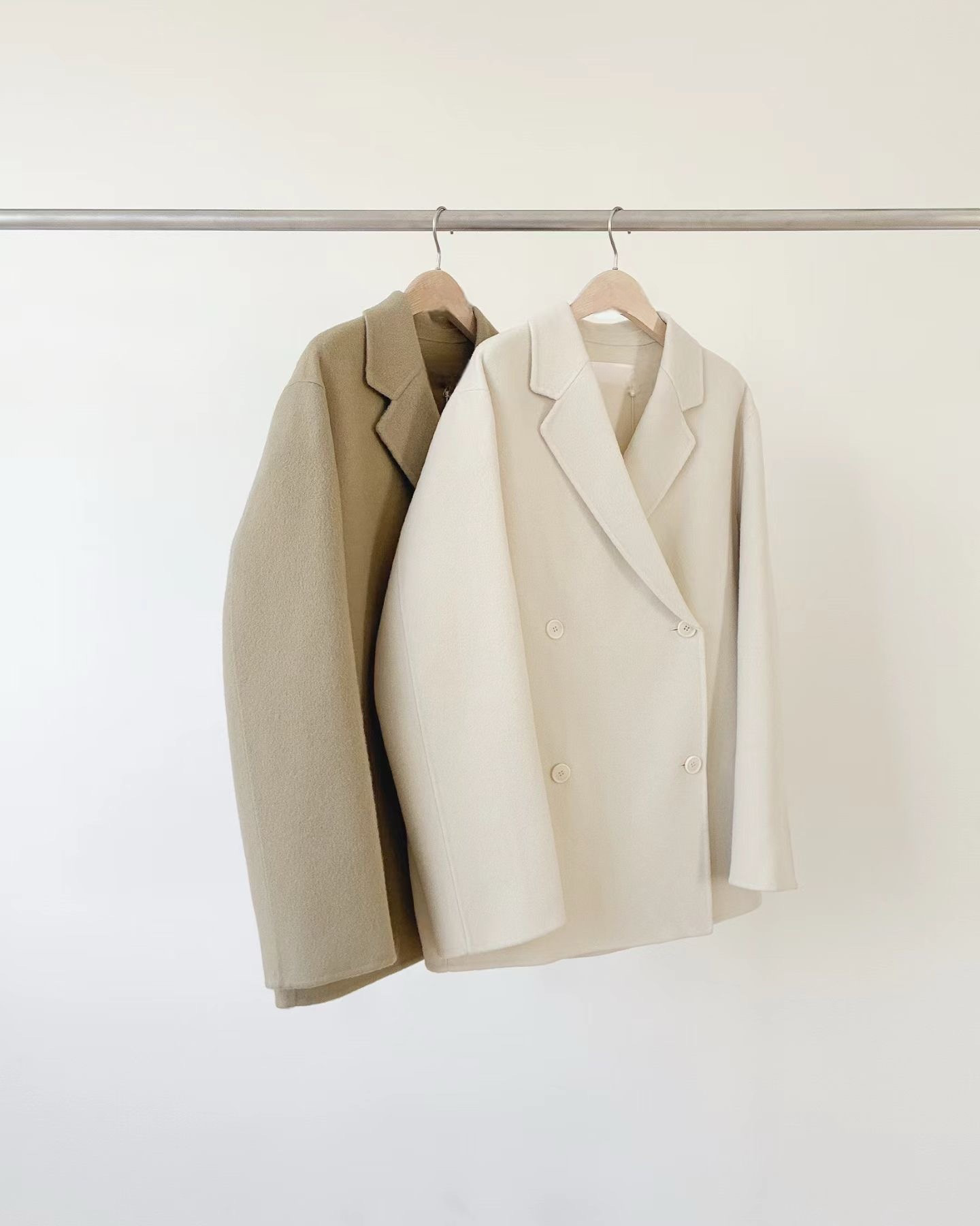 外套採用經典的雙排釦設計寬鬆俐落的版型,無論是敞開穿搭或繫釦,都能營造出隨性又充滿氣場的氛圍。溫柔的奶白與百搭的燕麥卡其兩色,自帶輕奢的高級氛圍。