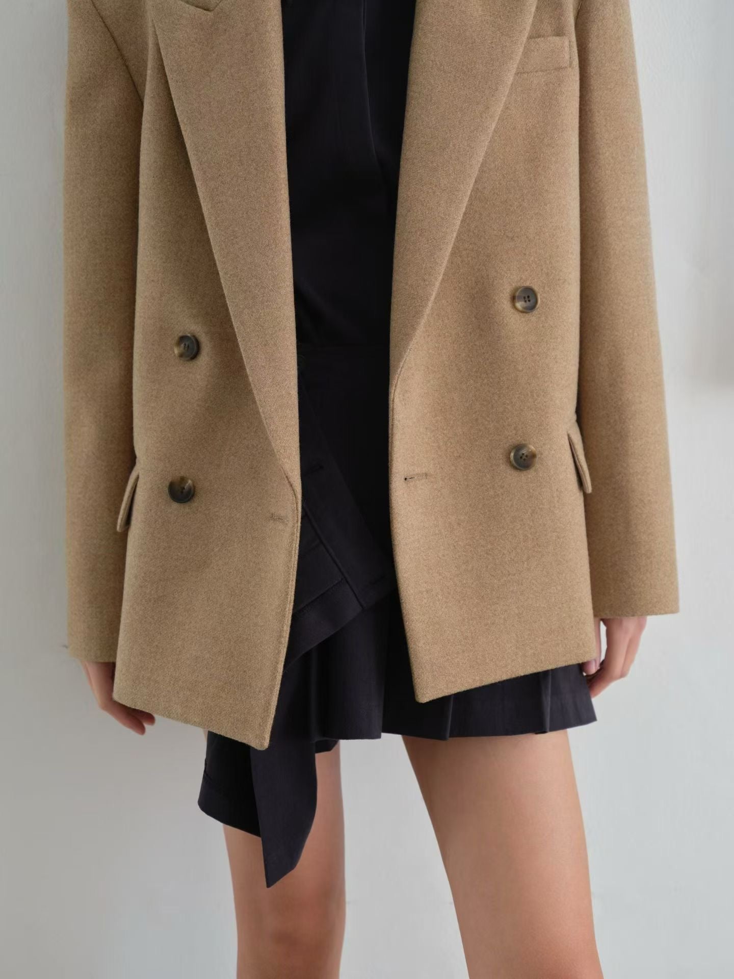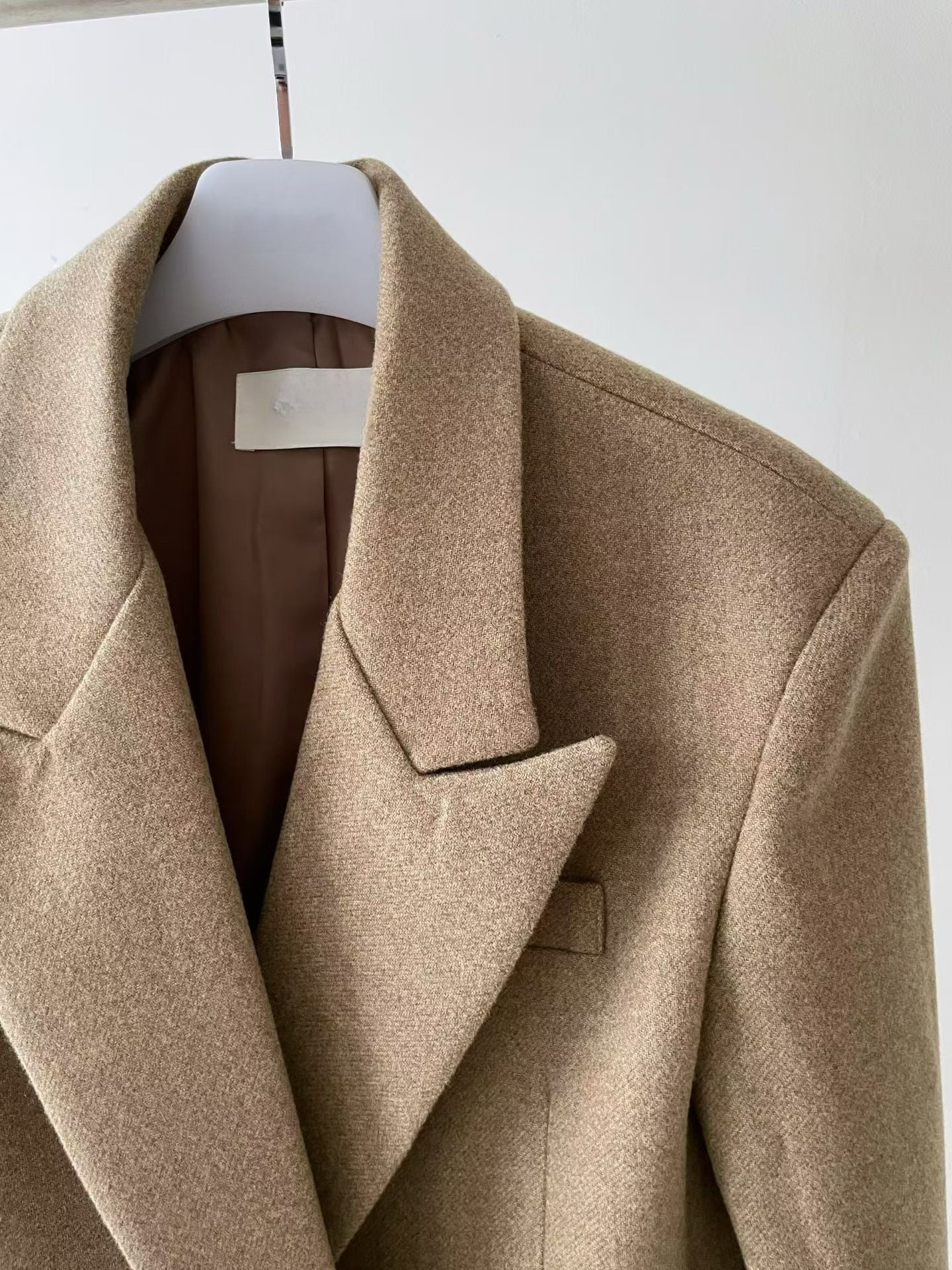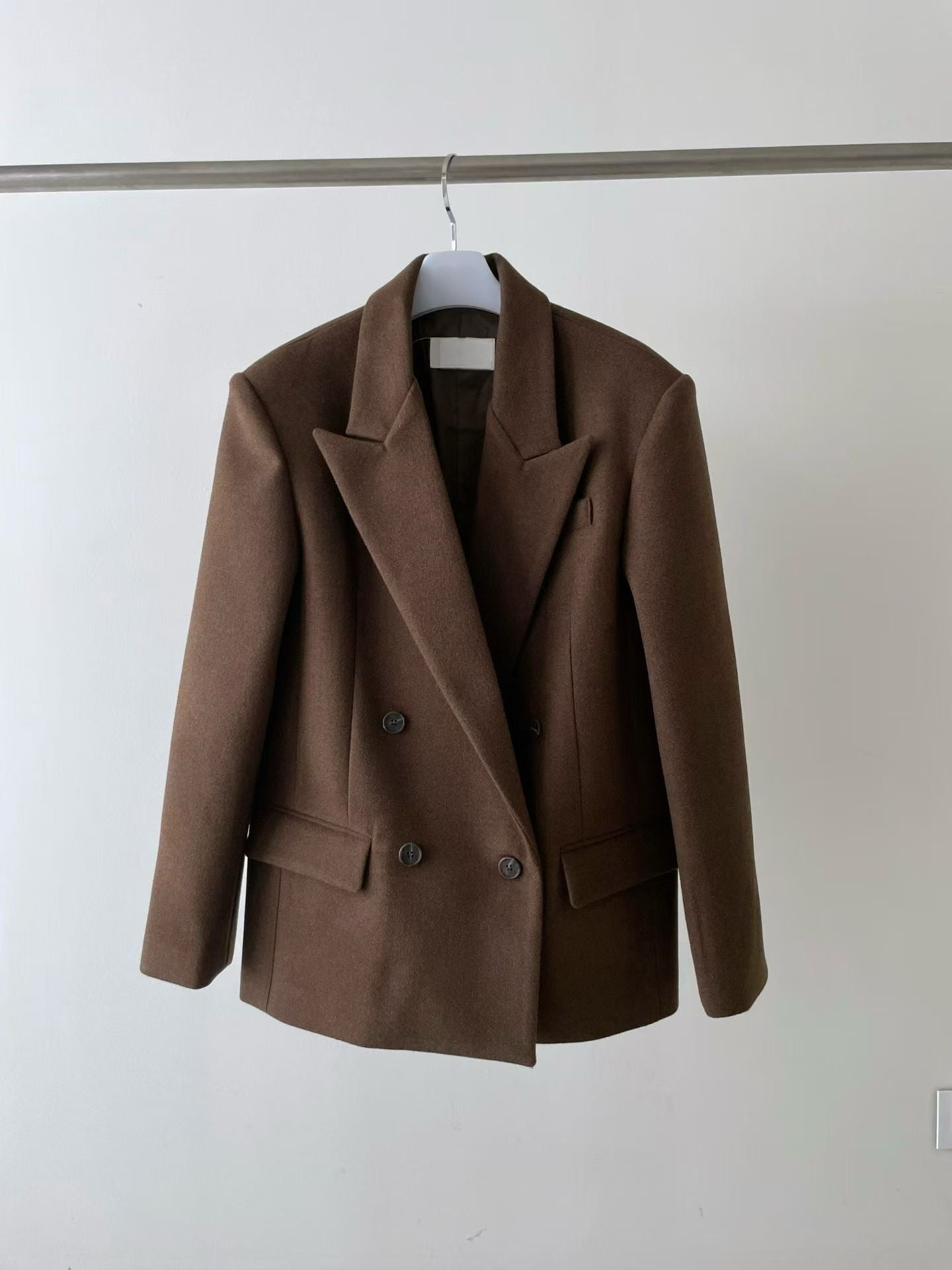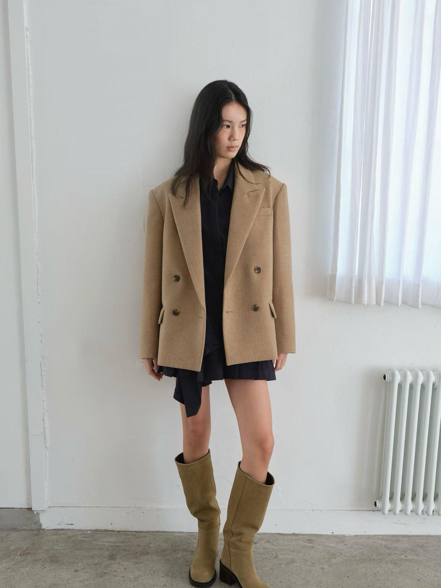 秋冬經典:寬肩雙排釦毛呢西裝外套
