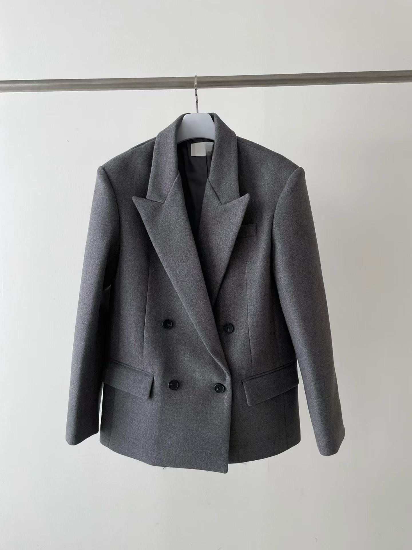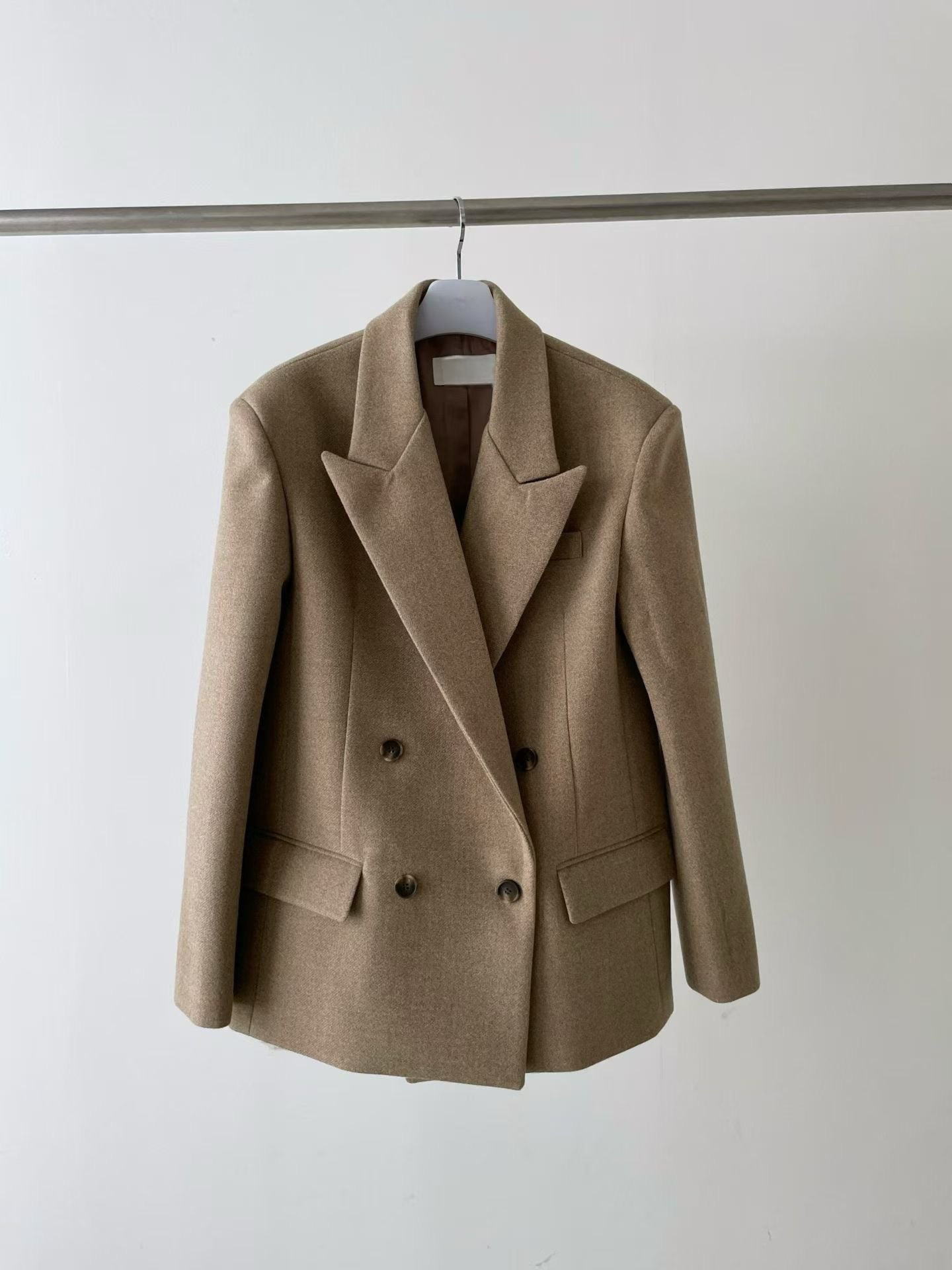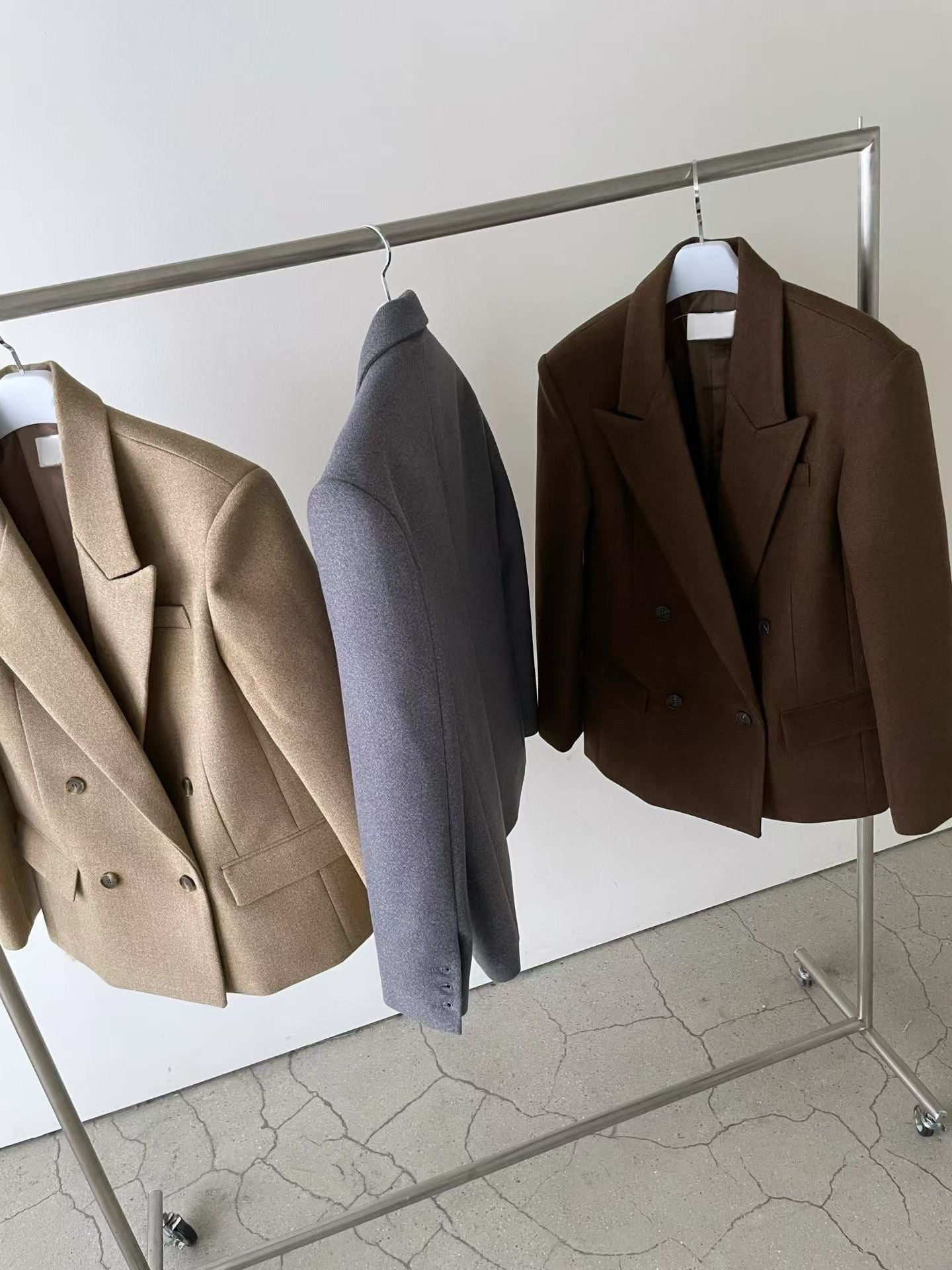 OT22026- 韓國設計師款經典寛鬆百搭毛呢雙排扣西裝