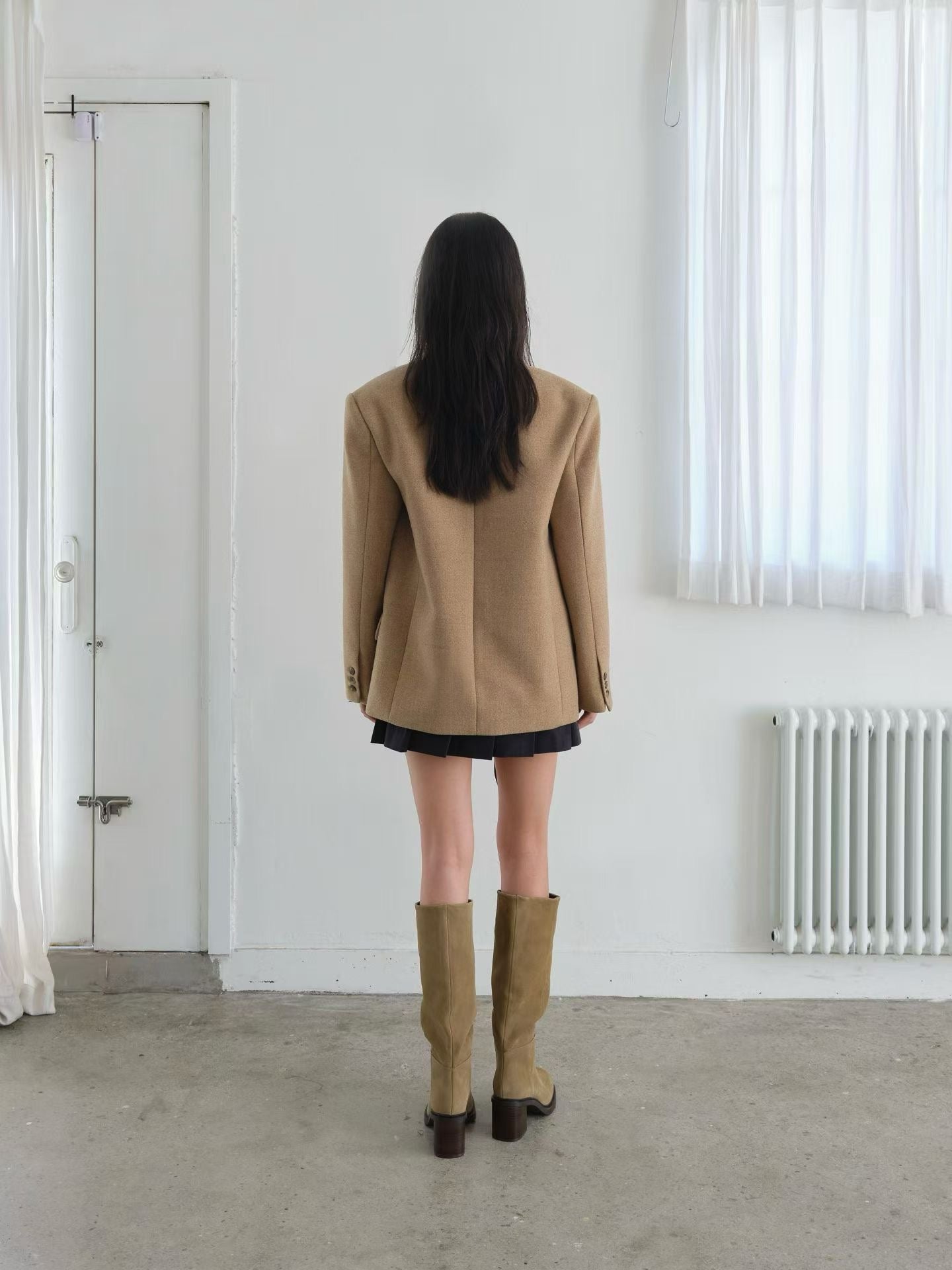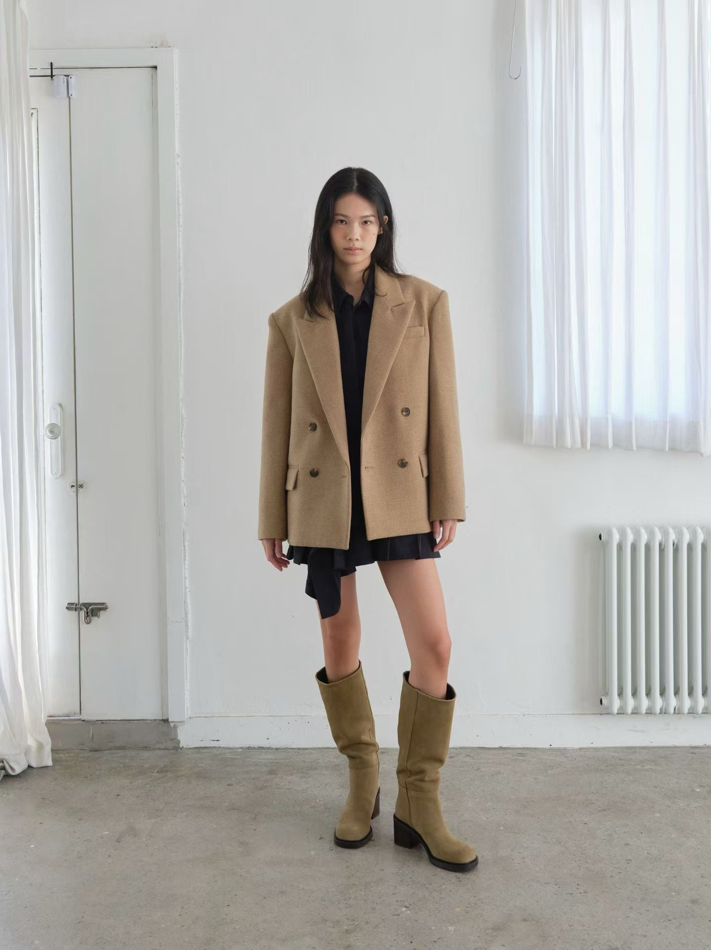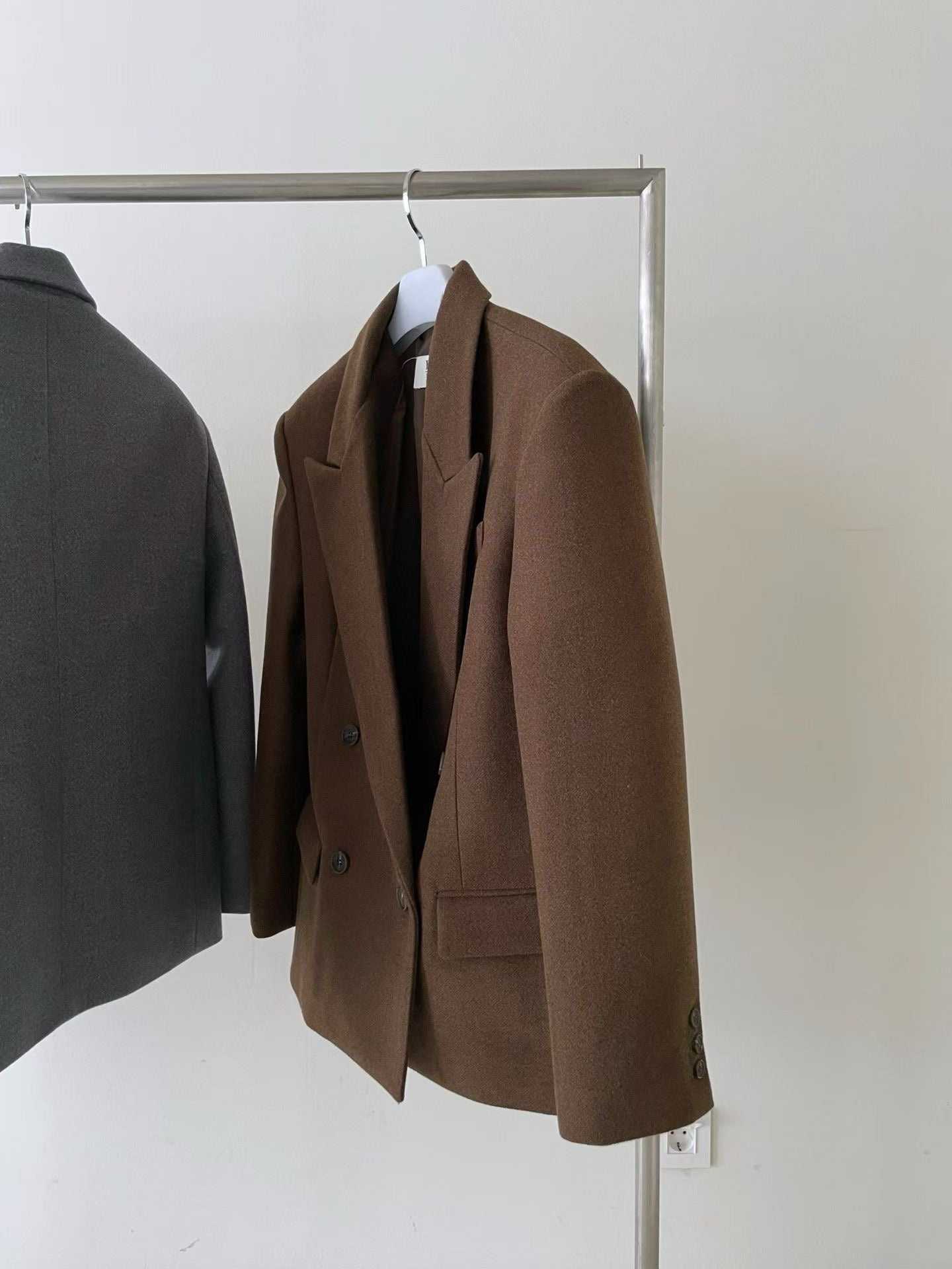 OT22026- 韓國設計師款經典寛鬆百搭毛呢雙排扣西裝