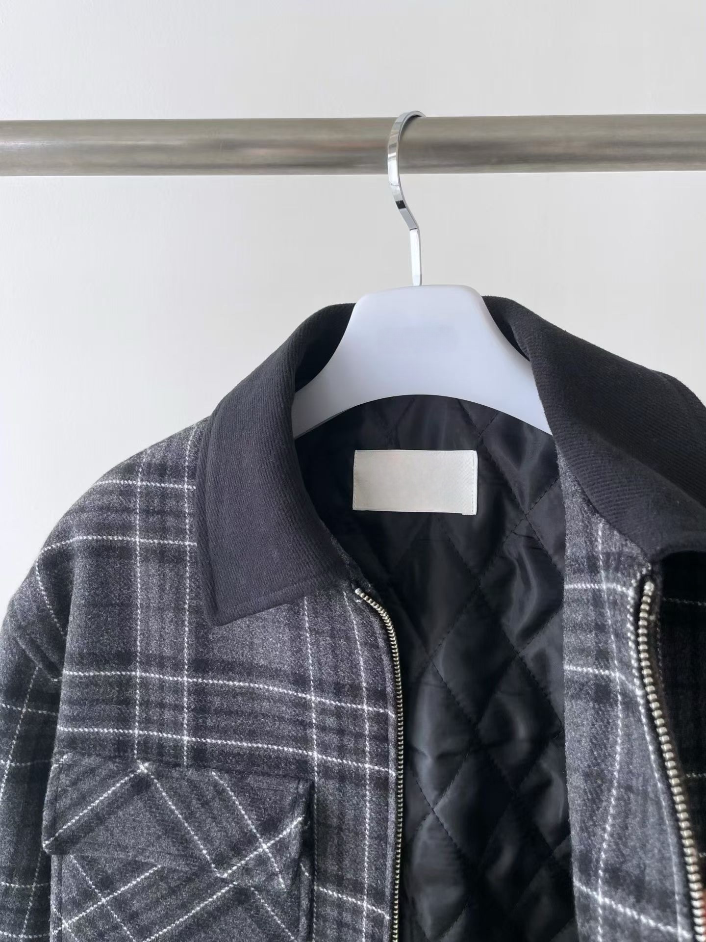 現在就擁有這款格紋夾克,以經典的格紋和溫暖的質感,定義你的秋冬風格。