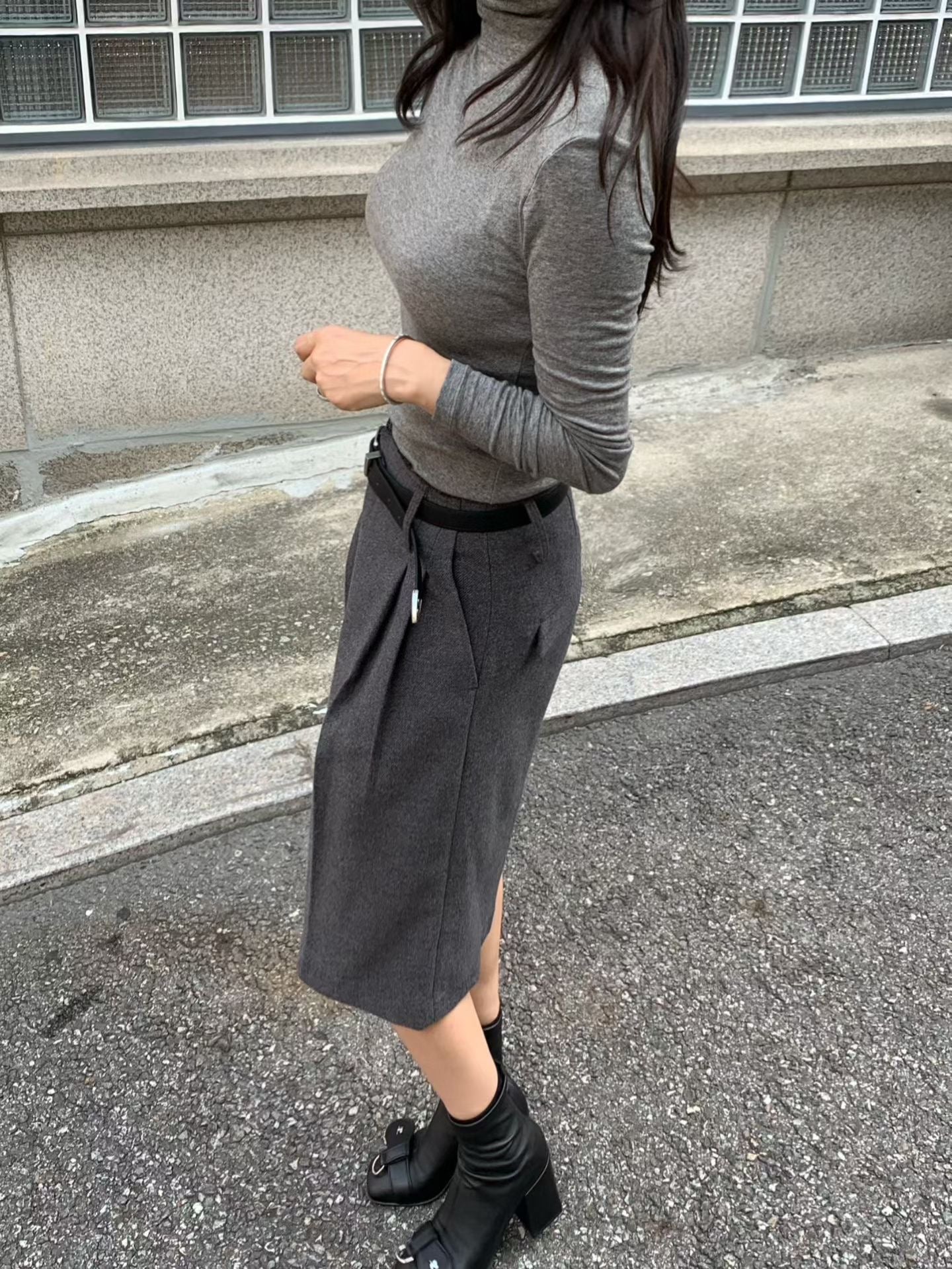 設計與剪裁: 經典的高領設計不僅有效鎖住溫暖,更能優雅地修飾頸部線條。修身剪裁完美勾勒出迷人的身形曲線,無論是作為內搭,搭配西裝、毛衣,或是單穿,都能展現俐落有型的穿搭效果。