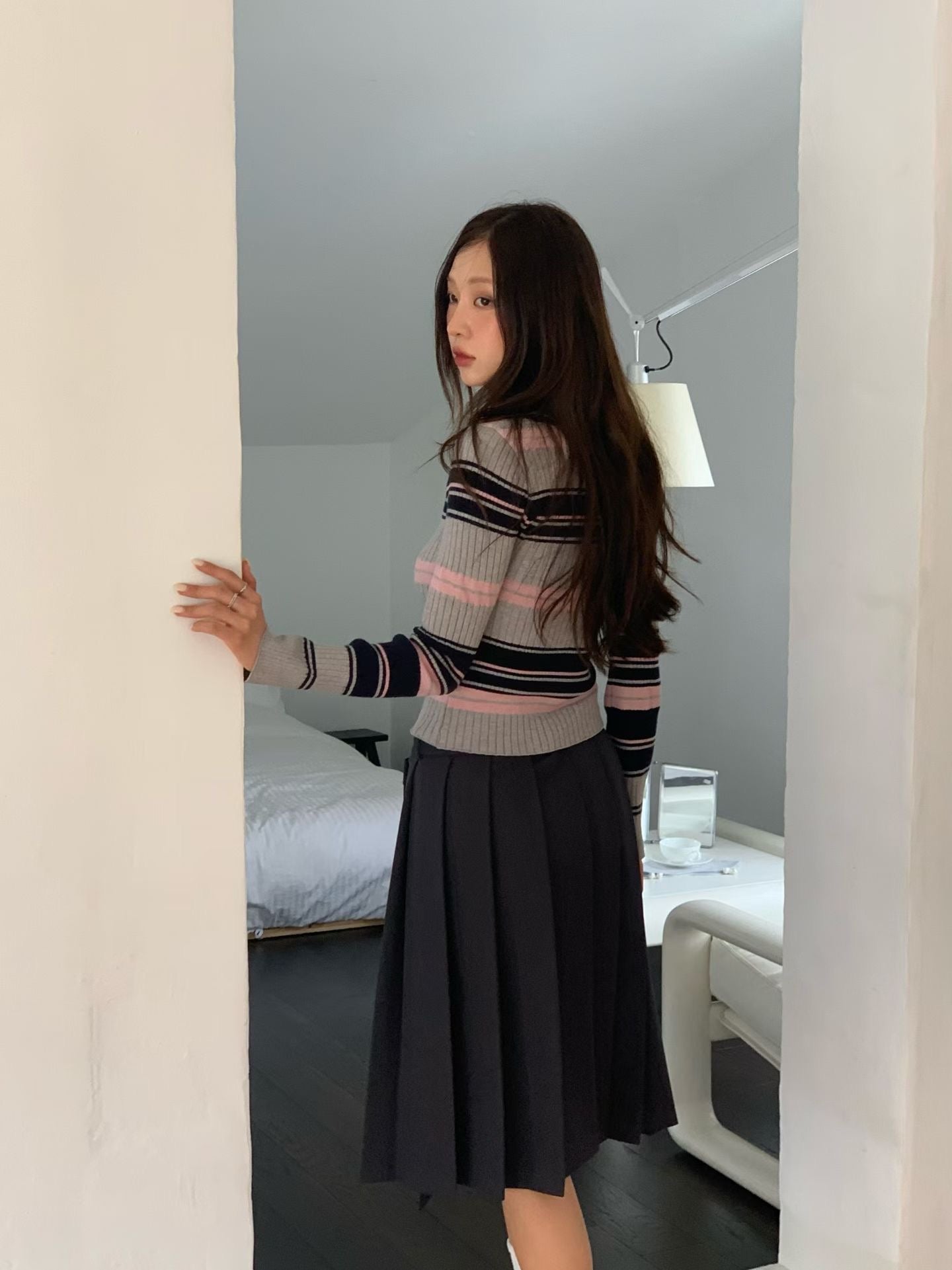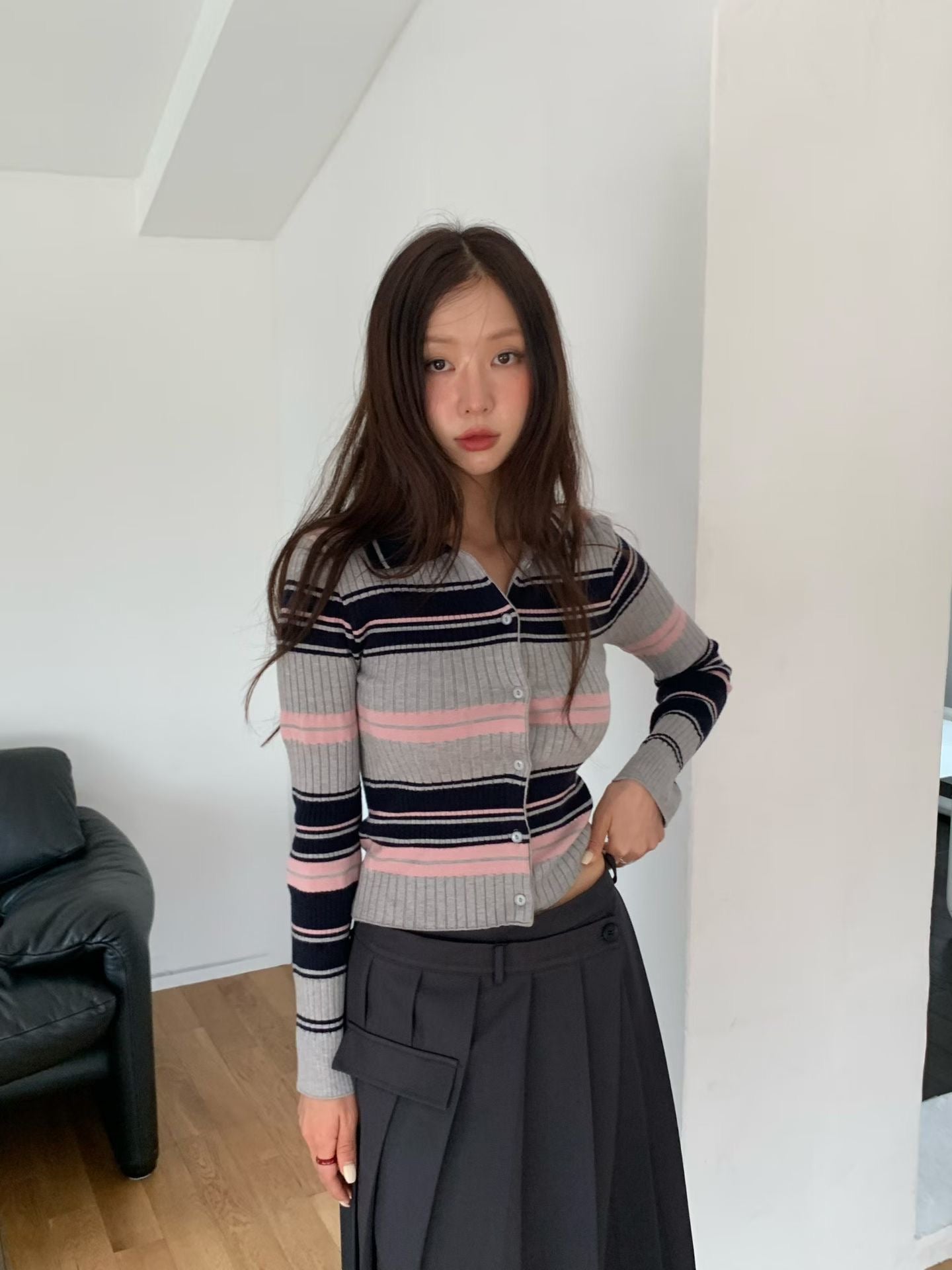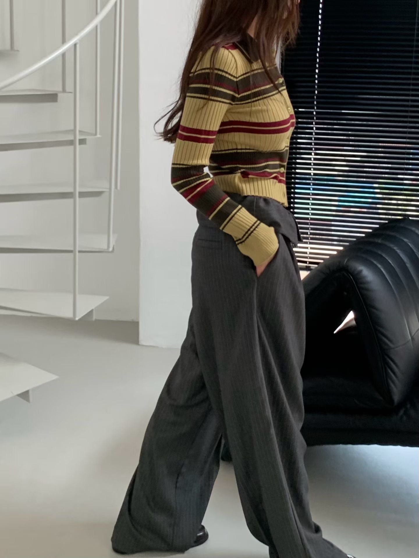 TP22006- 韓國短身復古修身撞色條紋毛衣針織開襟衫