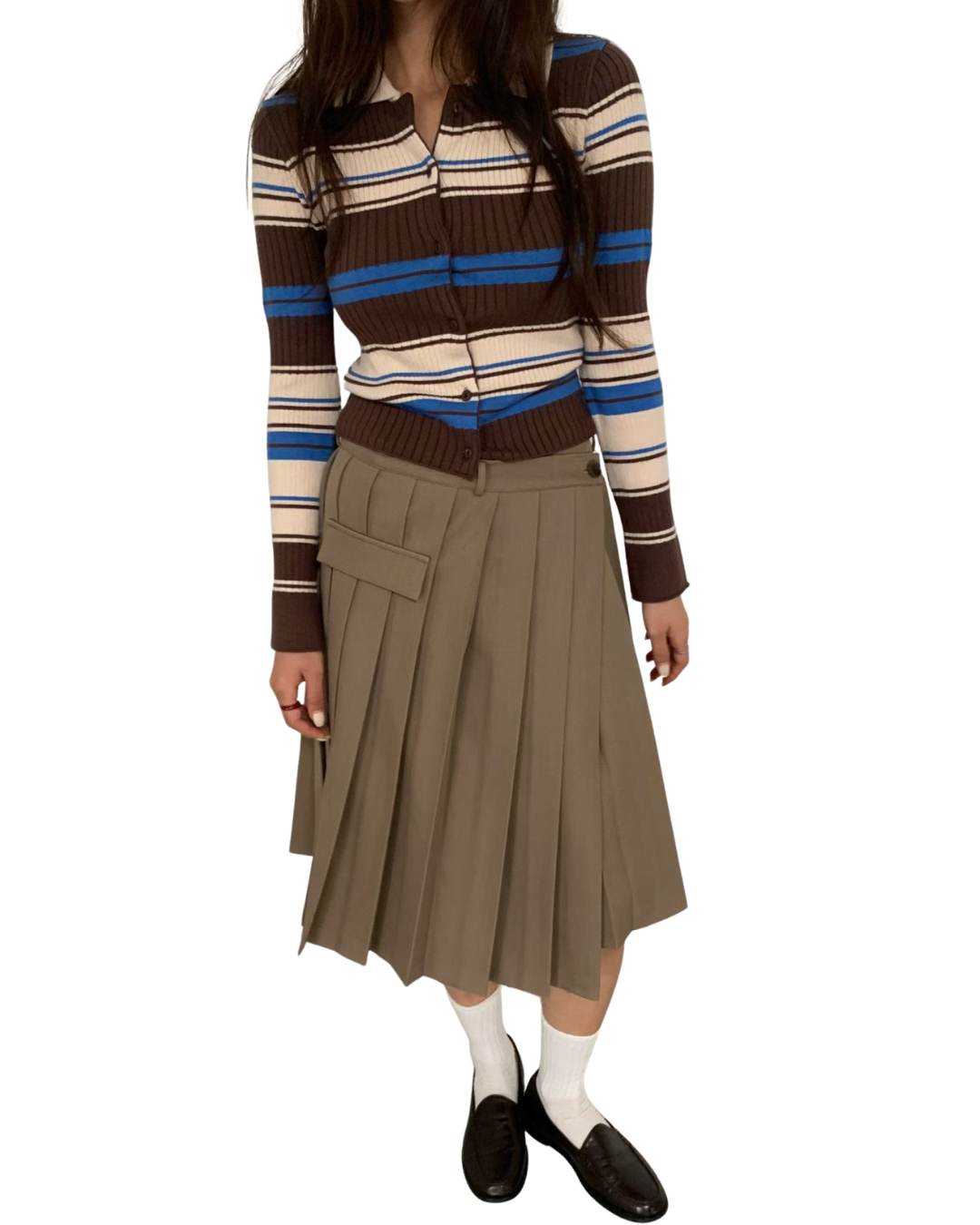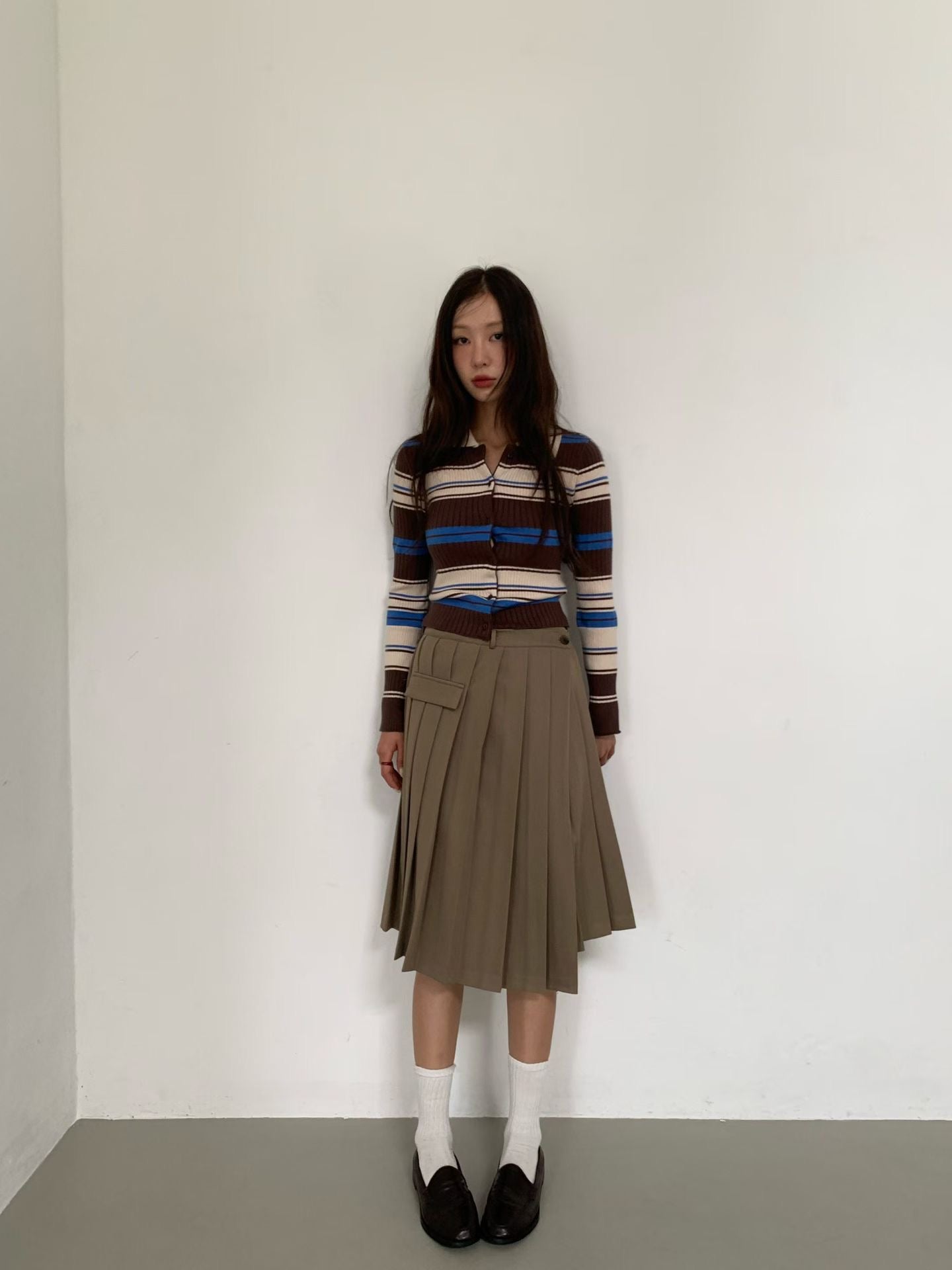 穿搭風格: 這款針織開衫多功能性極高。你可以將鈕釦繫上作為修身針織衫單穿, 搭配高腰百褶裙、牛仔褲,或是西裝短褲,都能輕鬆轉換風格。
