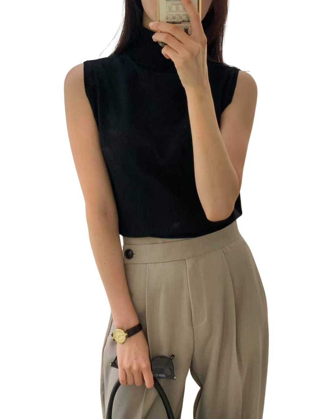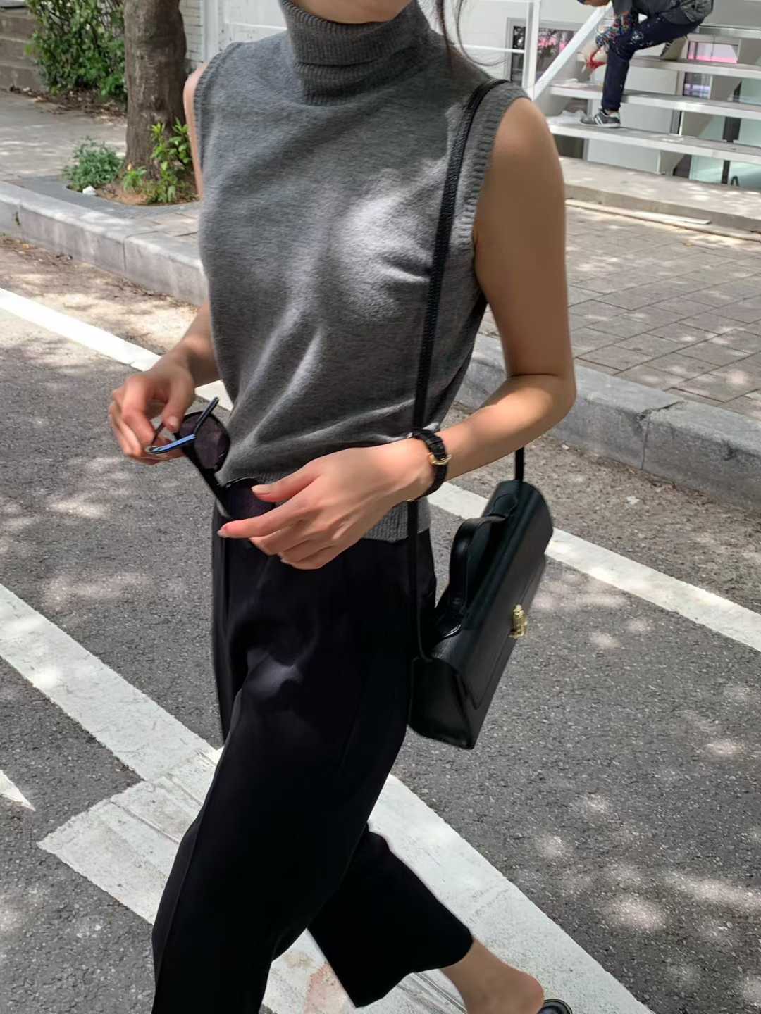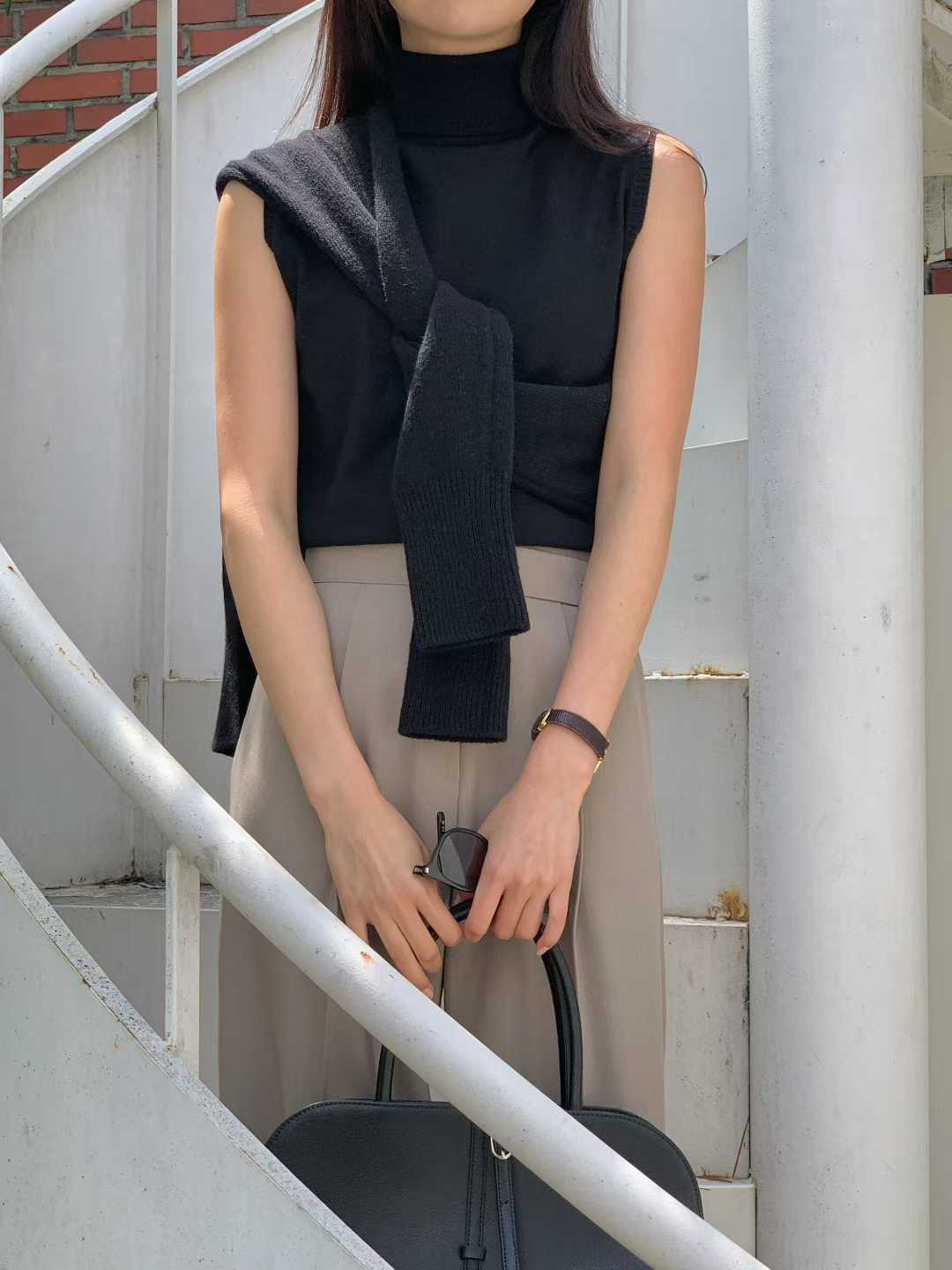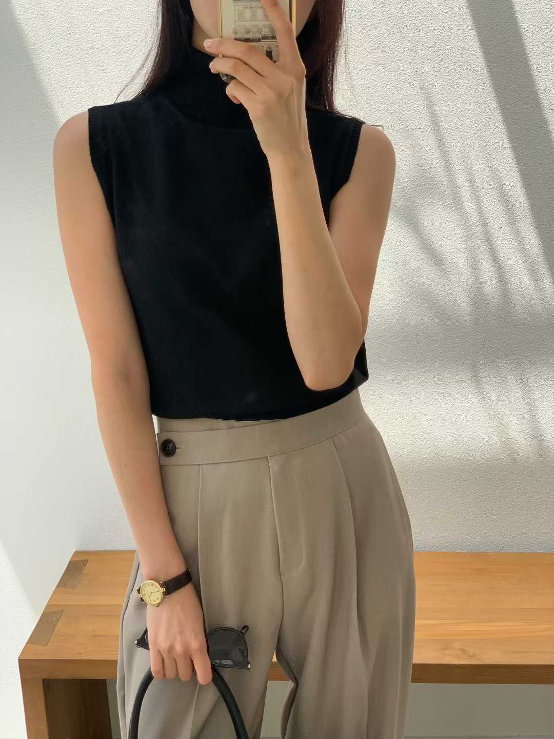 極簡主義:高領無袖針織背心