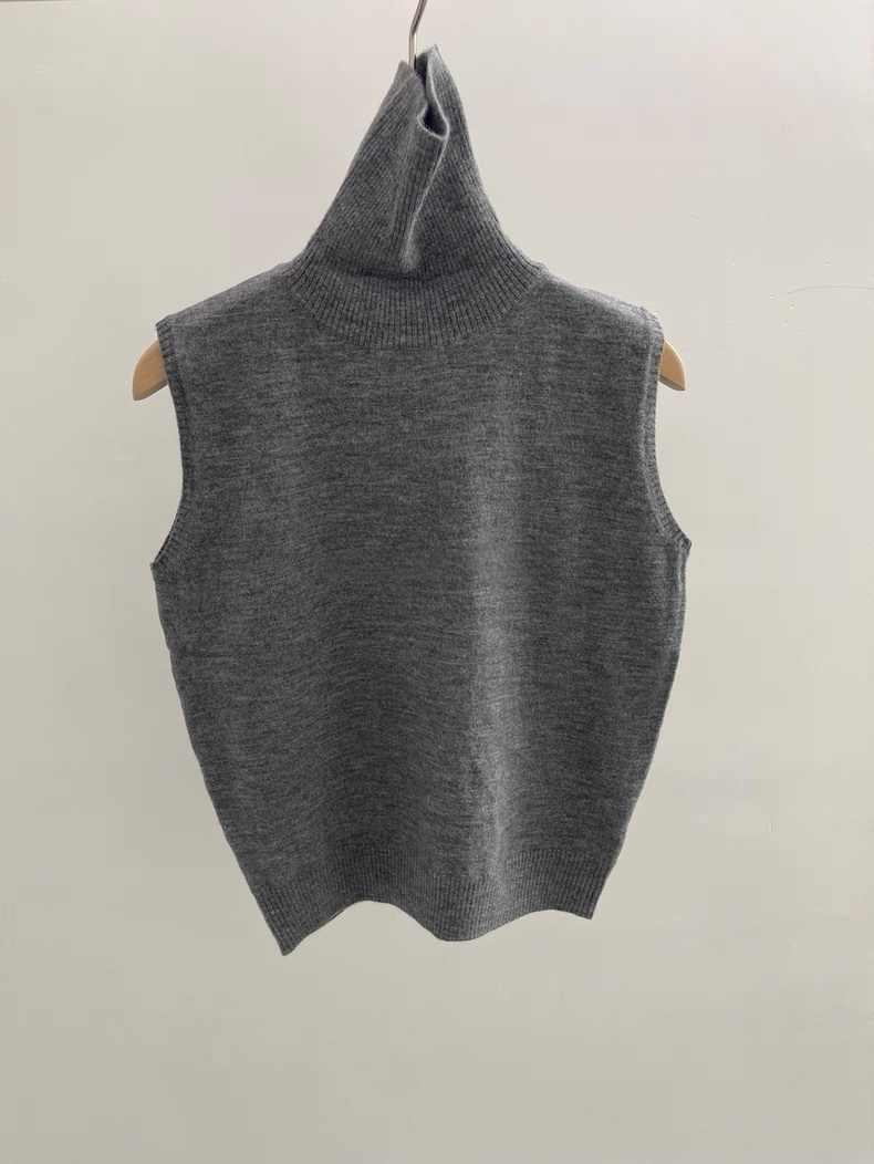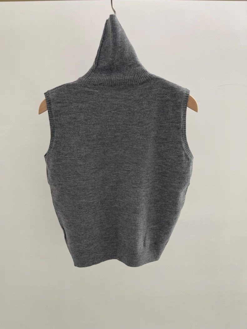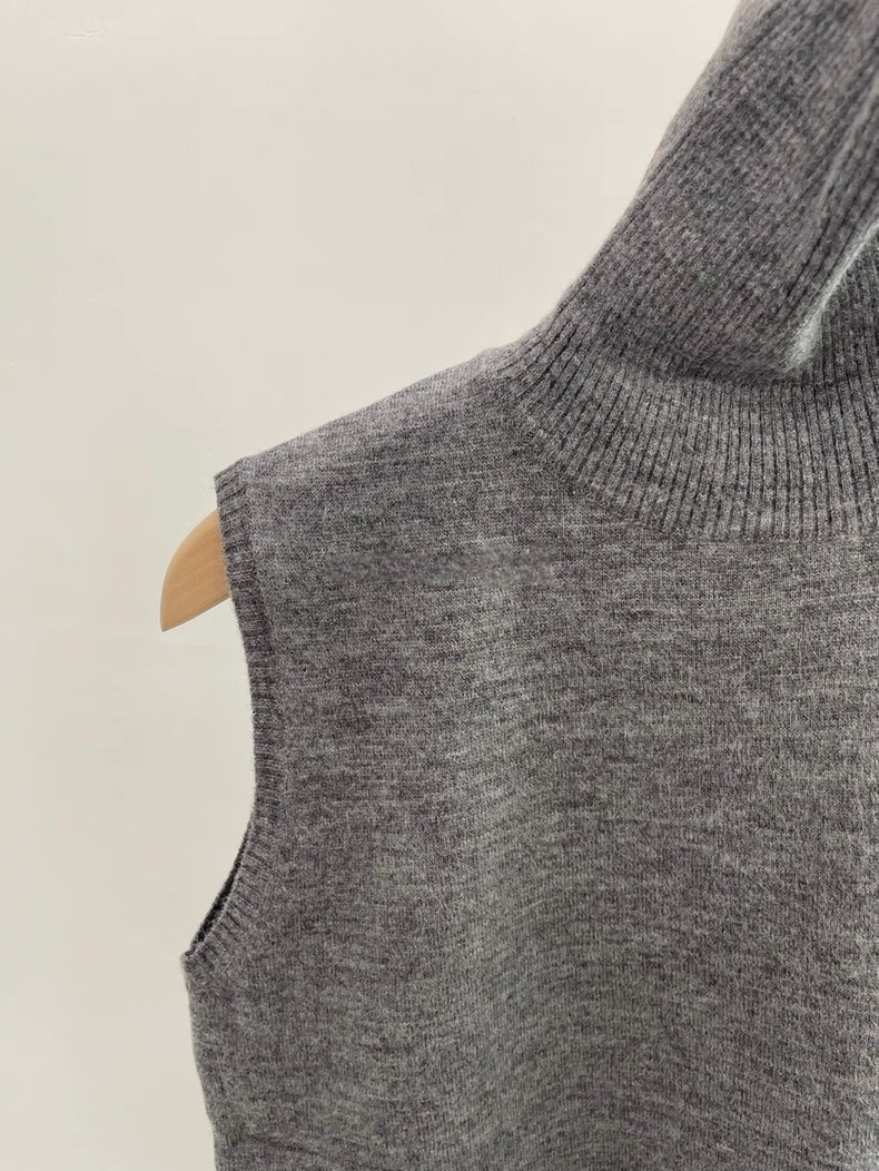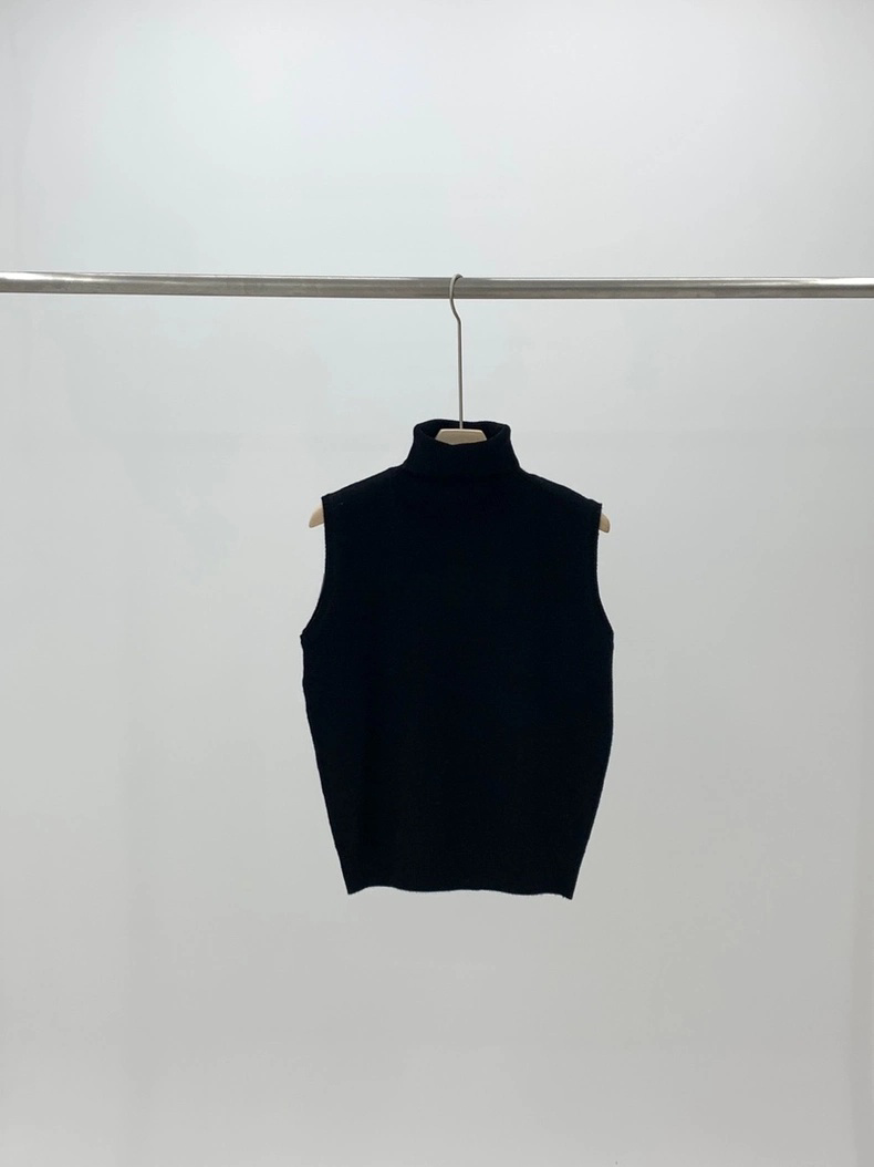 選用柔軟親膚的細膩針織面料,質感溫潤,貼身舒適。經典的高領設計不僅能有效防風保暖,更能優雅地修飾頸部線條。修身的無袖剪裁與精緻的羅紋下襬,使其完美貼合身形,無論是作為單穿或內搭,都能保持俐落有型。